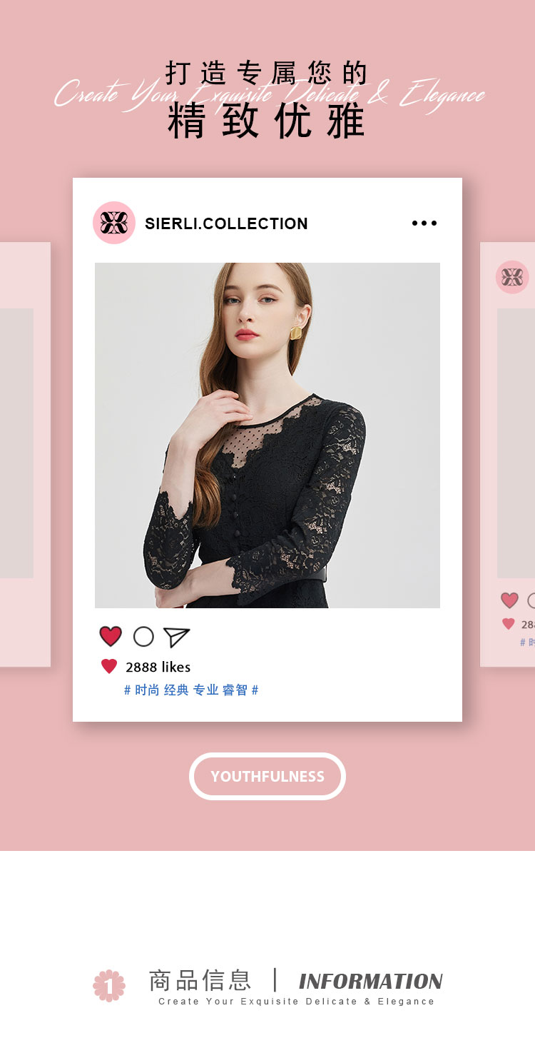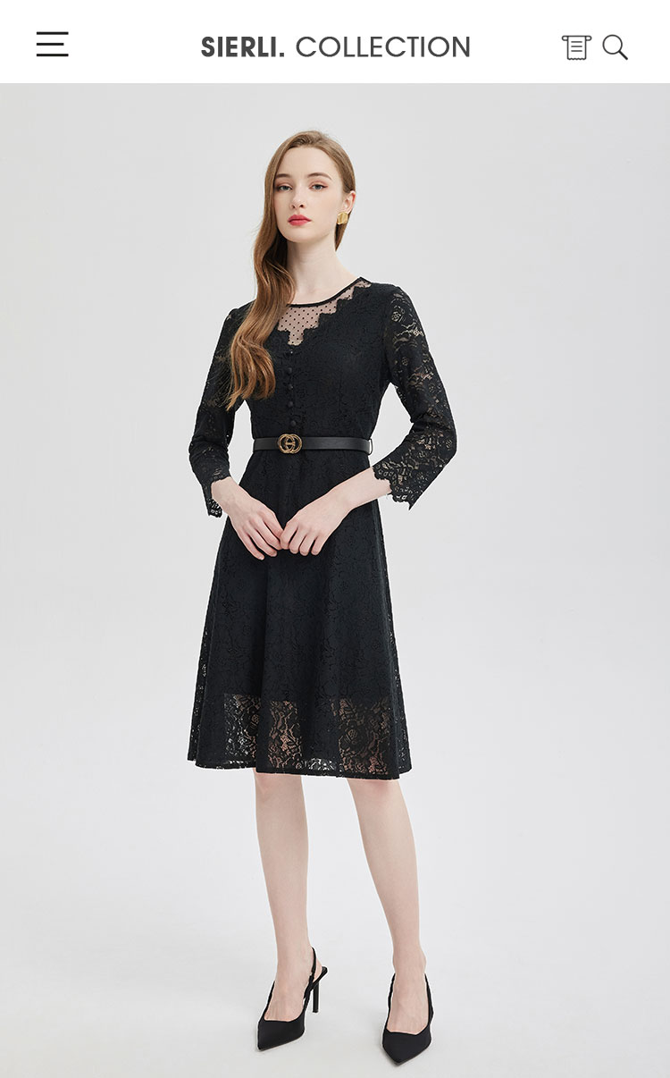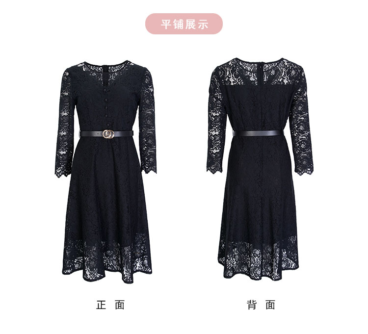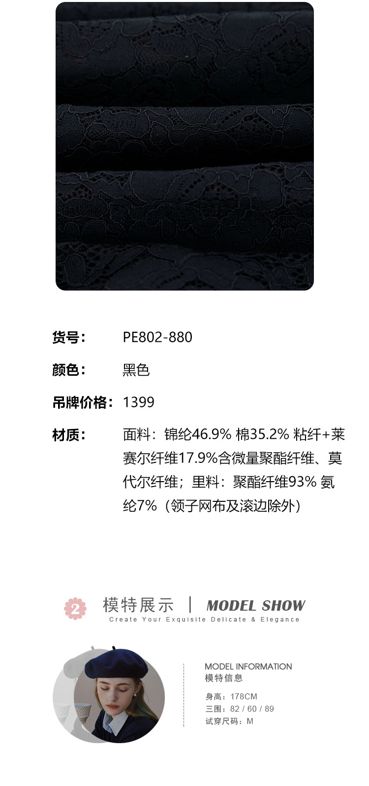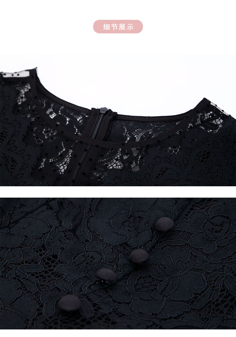PE802斯尔丽2024新款法式浪漫蕾丝通透领口收腰连衣裙