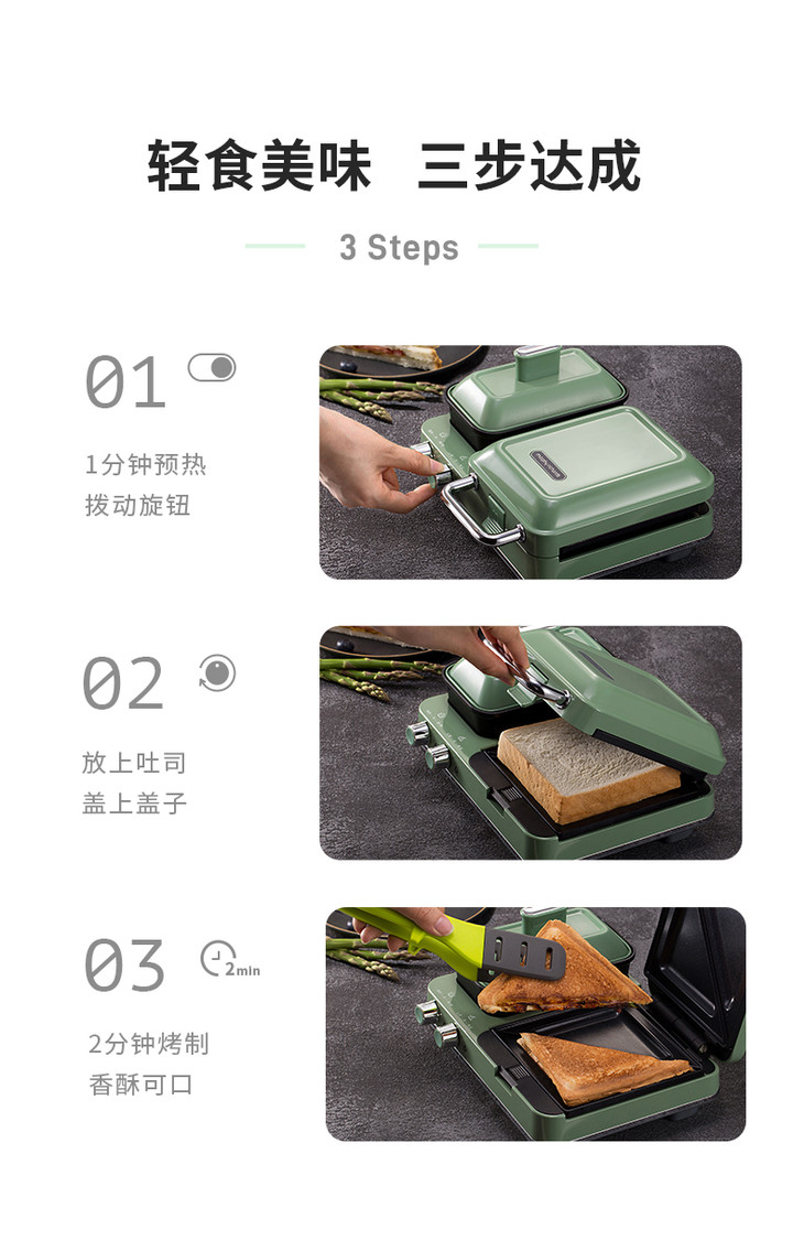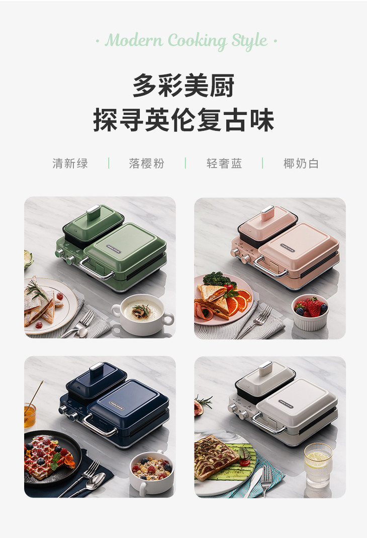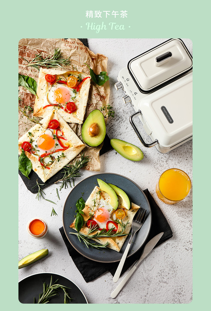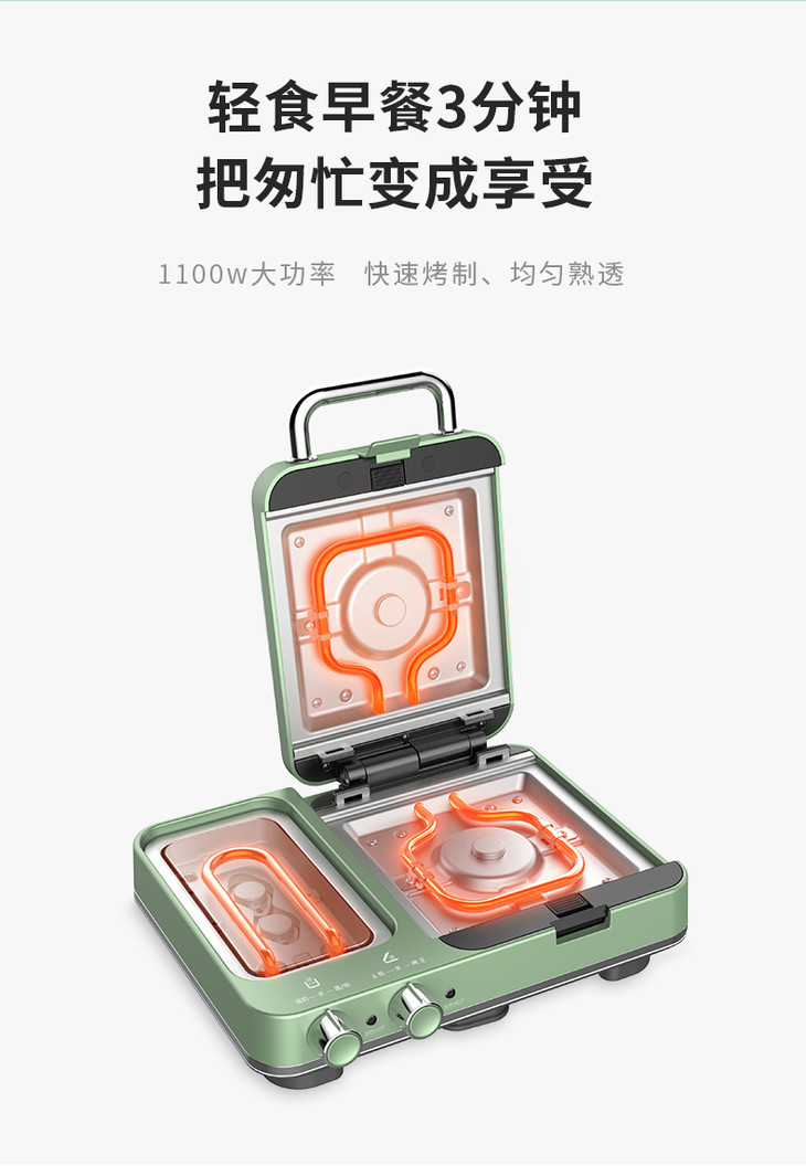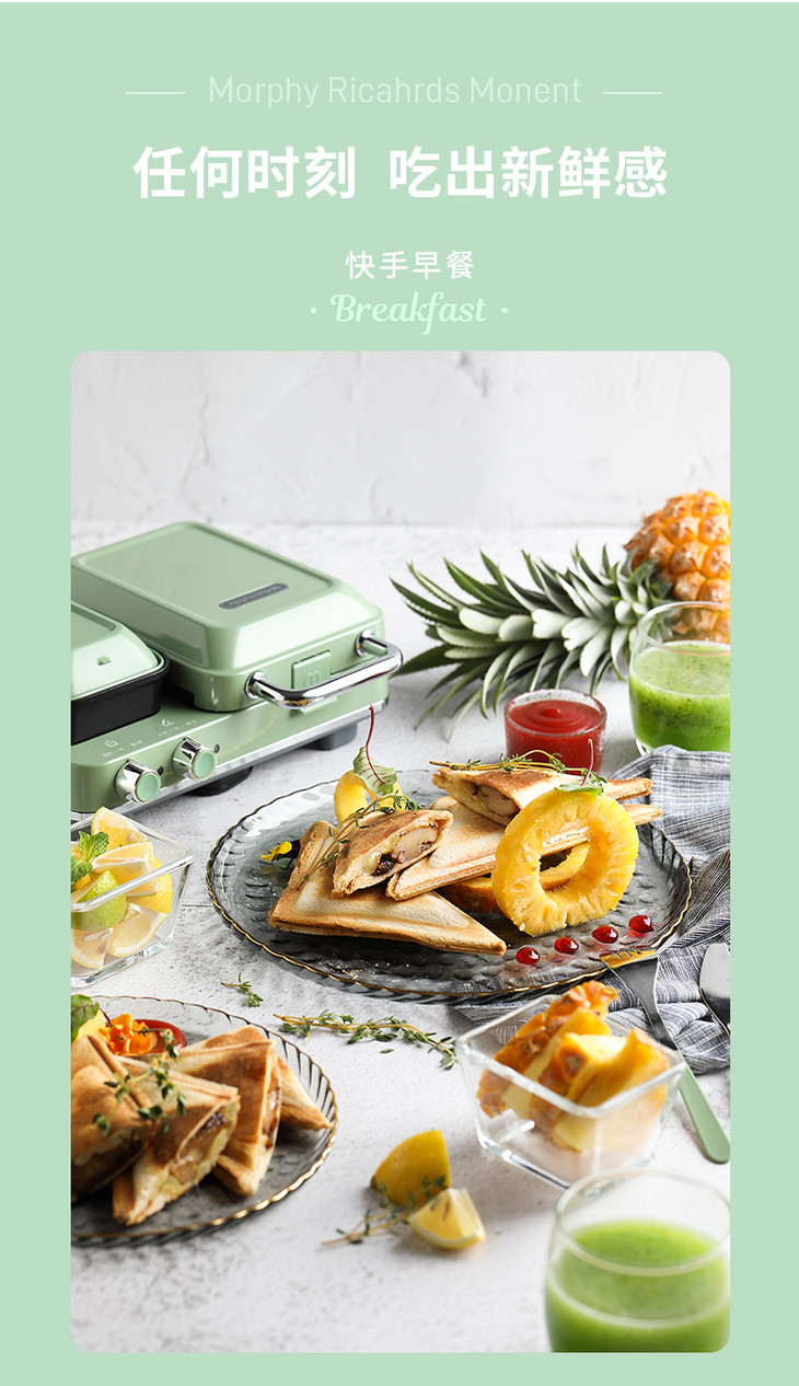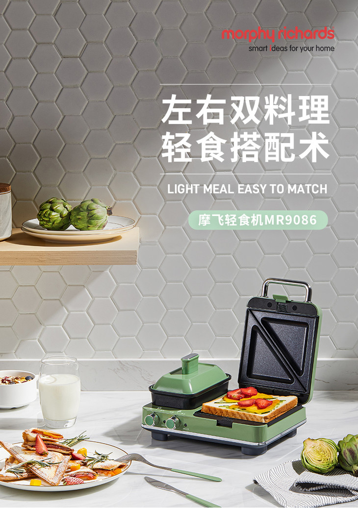 【做出网红花样早餐】英国摩飞轻食MR9086多功能早餐三明治分区双旋钮一全能可煎烤蒸温【摩飞系列】