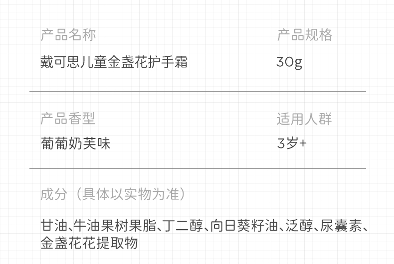 戴可思儿童金盏花护手霜滋润保湿补水婴儿宝宝防干裂不油腻♥