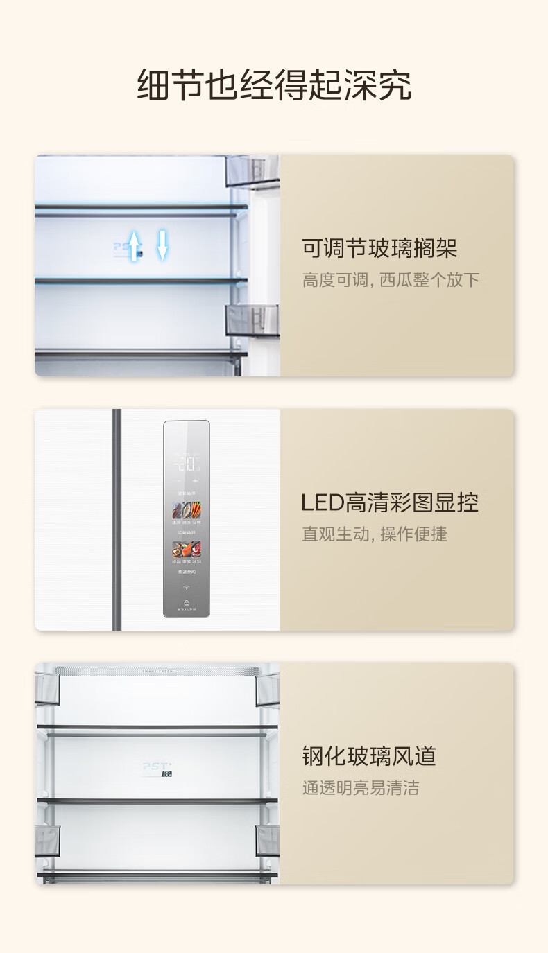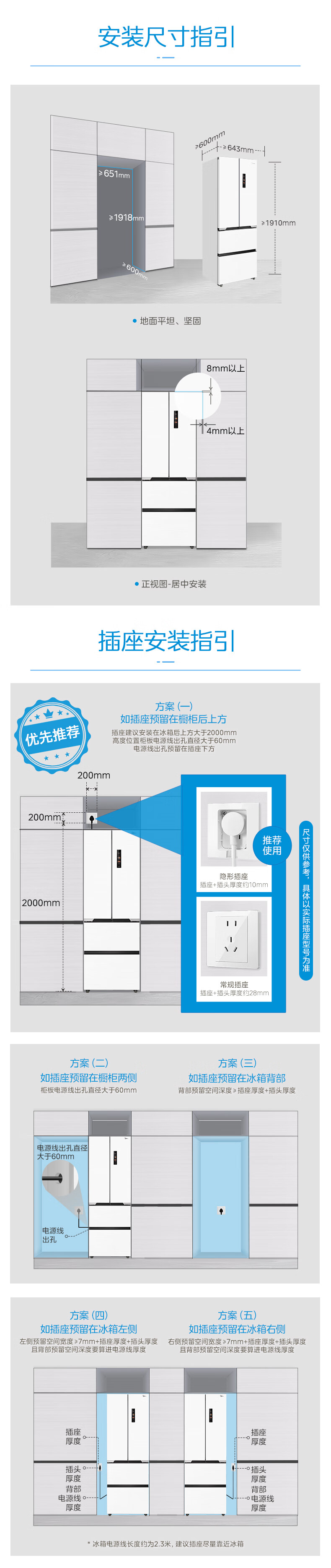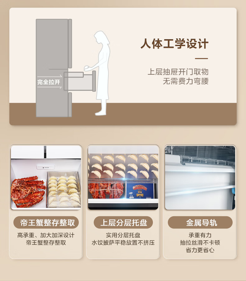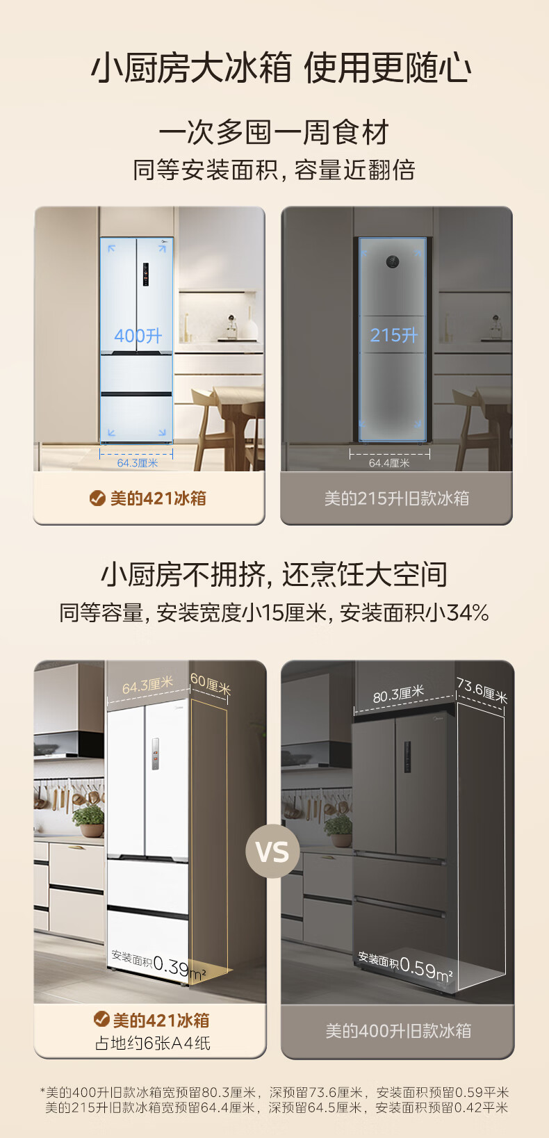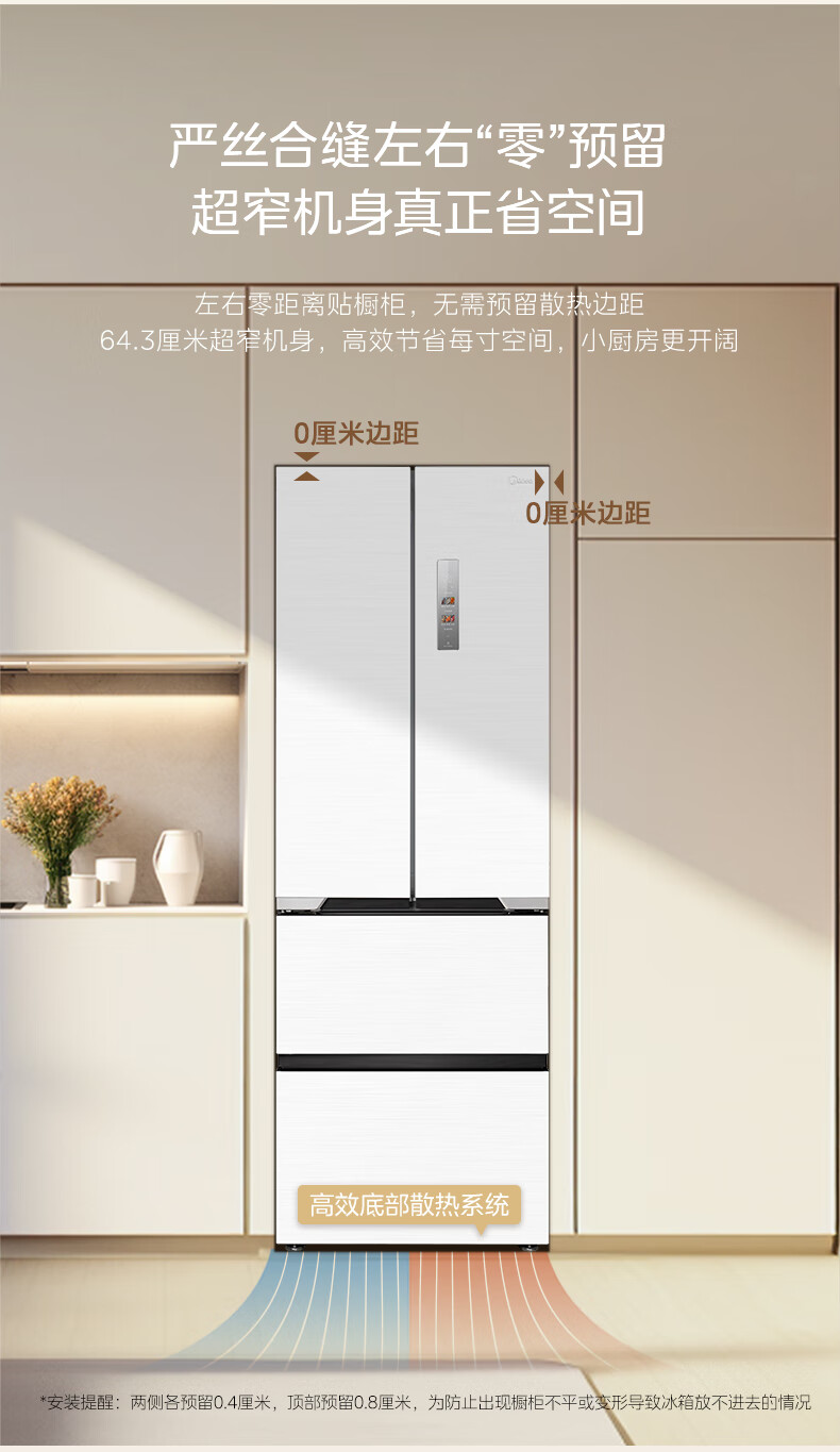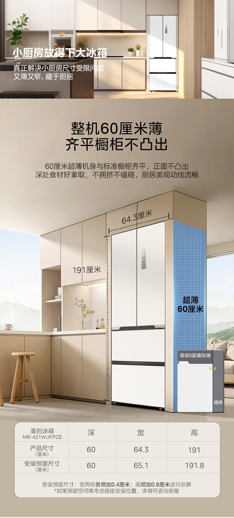 美的 MR-421WUFPZE 421升超薄可嵌入式一级变频除菌法式多门四开门家用无霜白色大容量智能电冰箱 极地白-锦缎