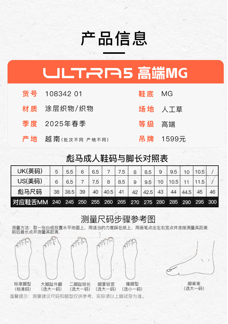 小李子正品PUMA彪马ULTRA 5高端 MG短钉足球鞋成人男108342 01