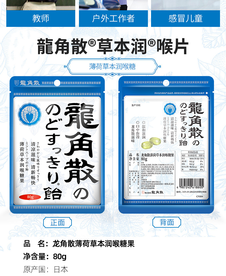 龙角散薄荷草本润喉糖80g