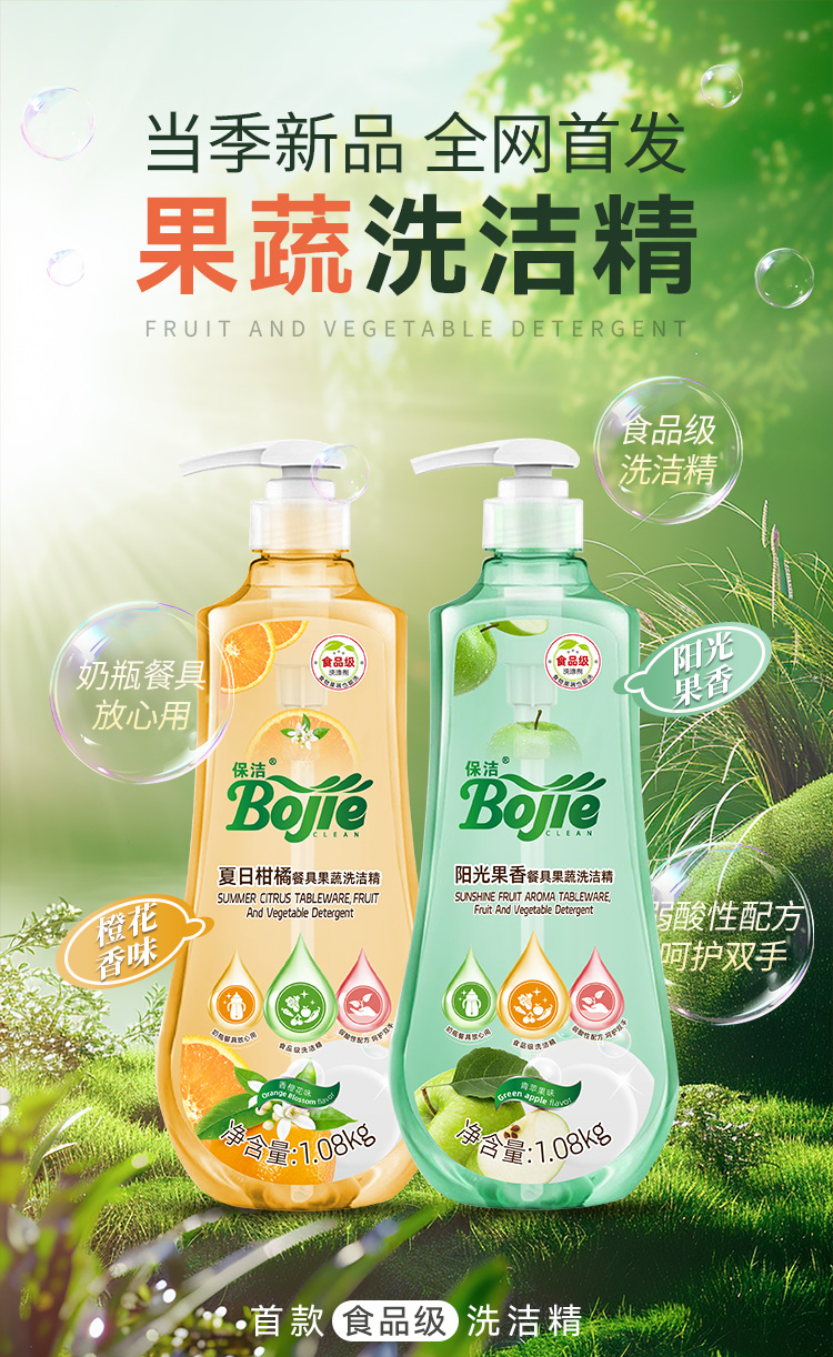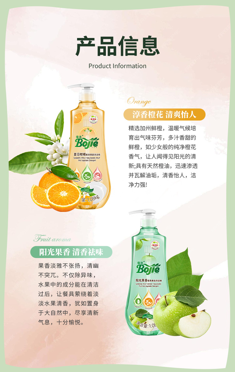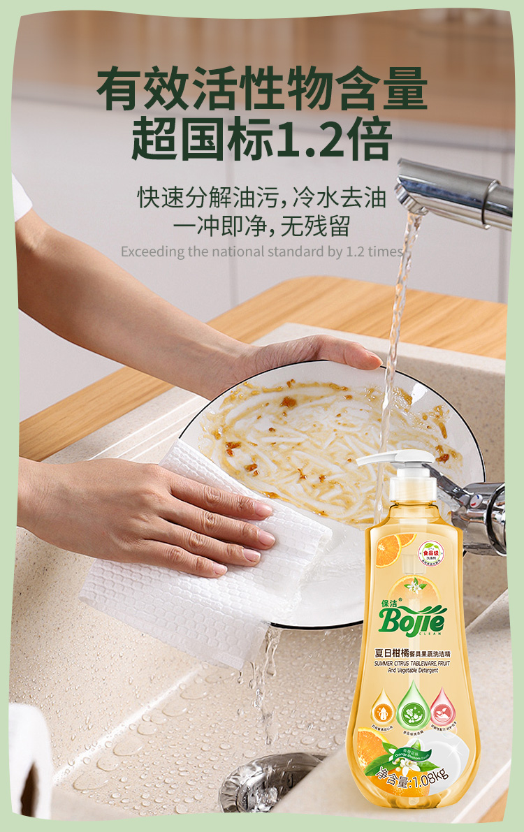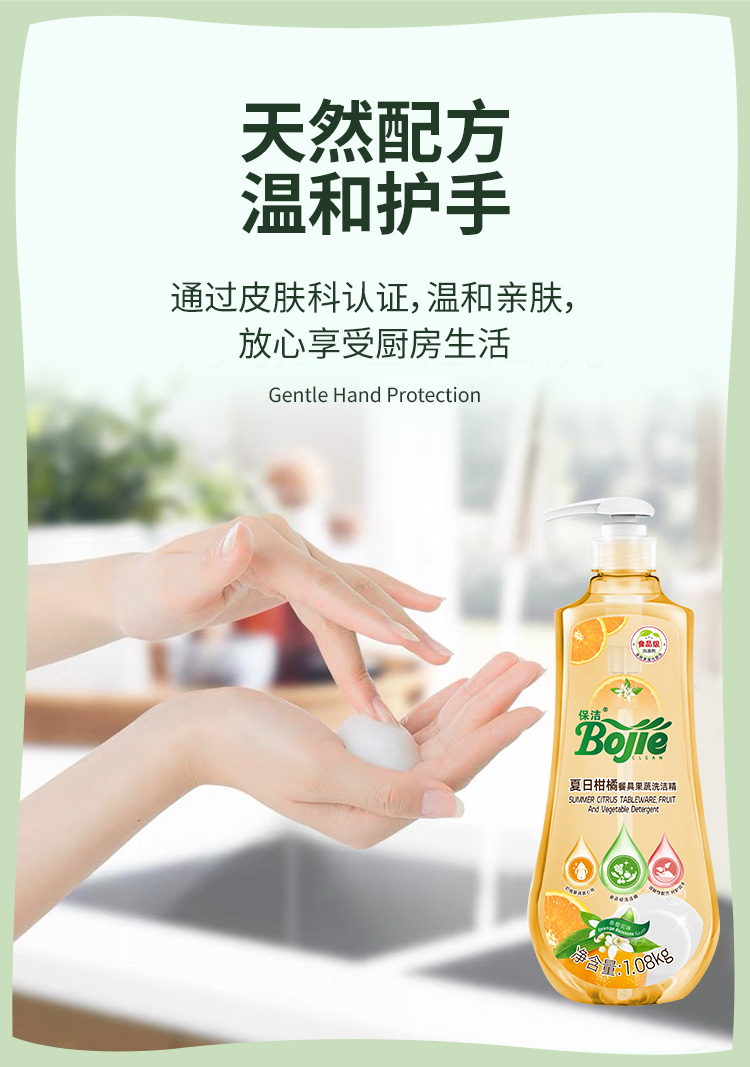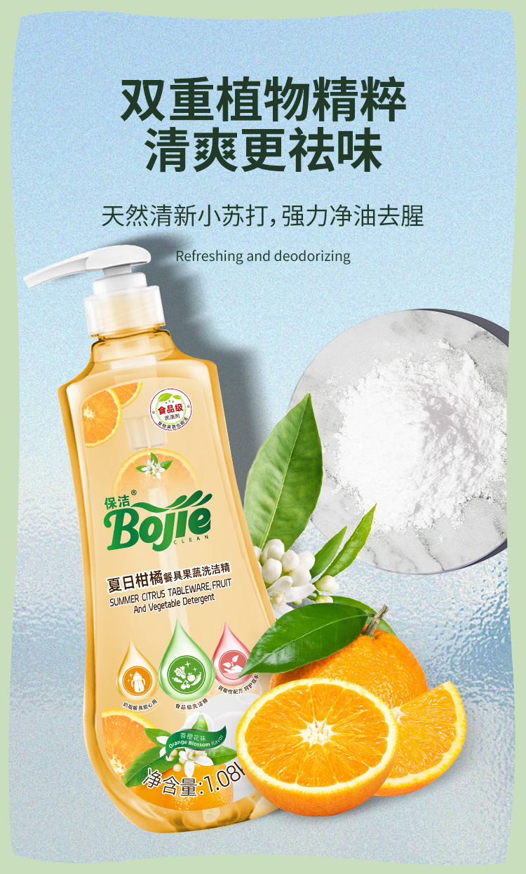 严选 | 保洁Bojie夏日柑橘/阳光果香 果蔬餐具洗洁精 1.08kg/瓶 天然配方 温和护手