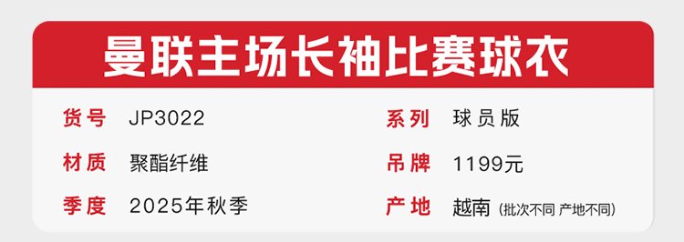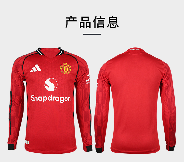 小李子ADIDAS阿迪达斯25/26赛季曼联球员版主场长袖球衣JP3022