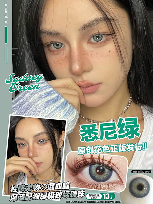 Li chee chee 悉尼绿 年抛 2片 14.5mm 参考着色13.7mm 基弧8.6 含水38% 韩国进口