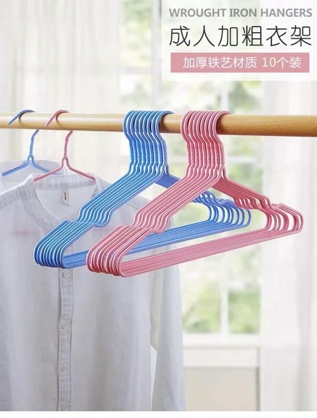 成人衣架浸塑铁丝加粗干湿两用无痕衣撑家用阳台晒晾衣挂衣服架子10个/扎