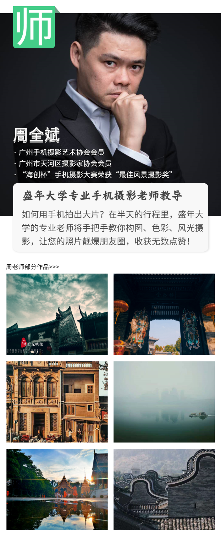 【10月25日起】299元12节“行摄广州”户外大班课(梁旭辉老师)2节课/次,共12节课