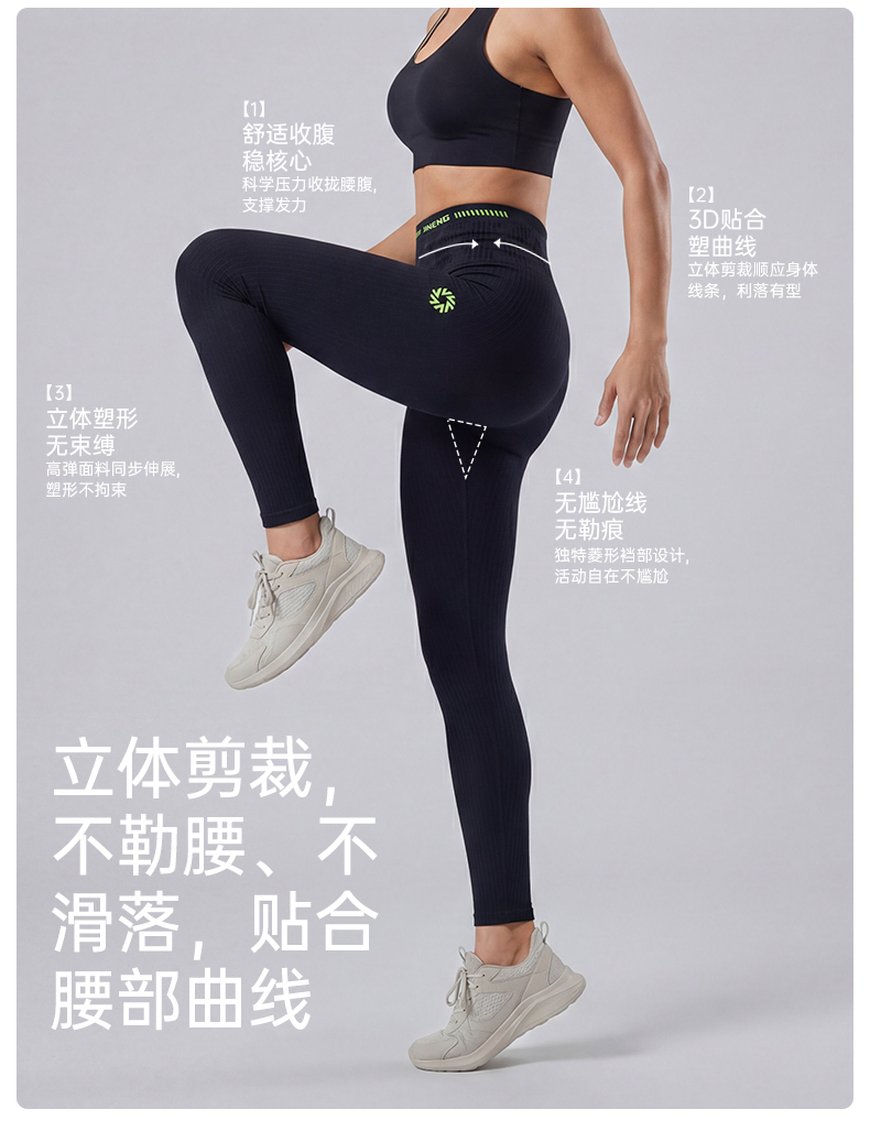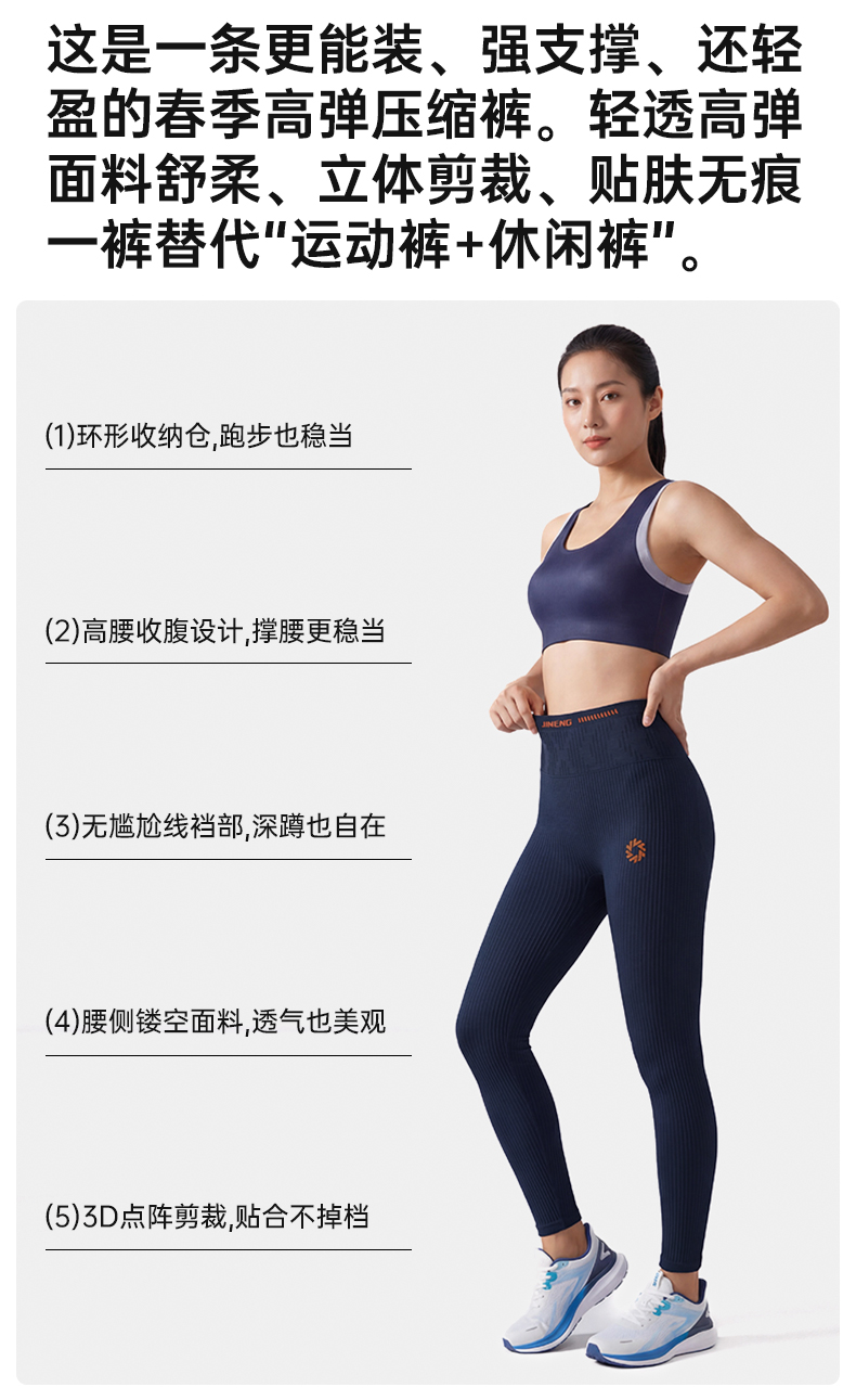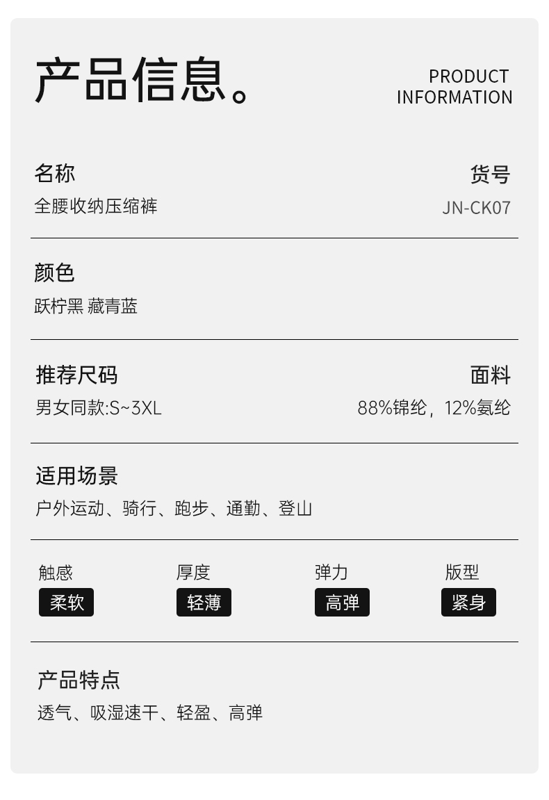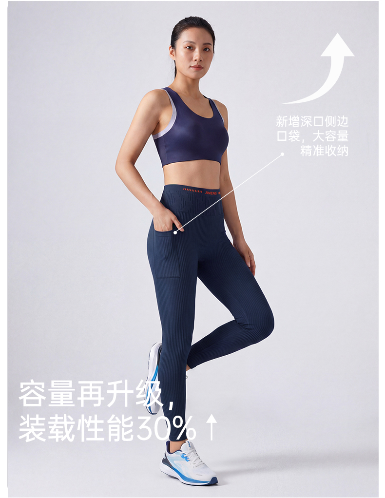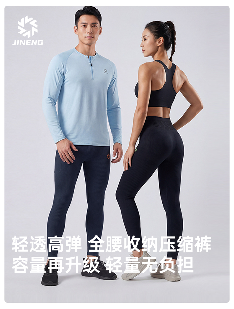 积能春季新款男女同款跑步运动提臀收腹高弹腰包式压缩裤