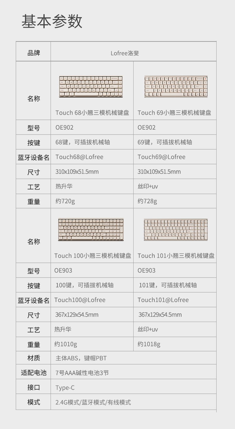 洛斐LOFREE OE902小翘68三模机械键盘-豆腐