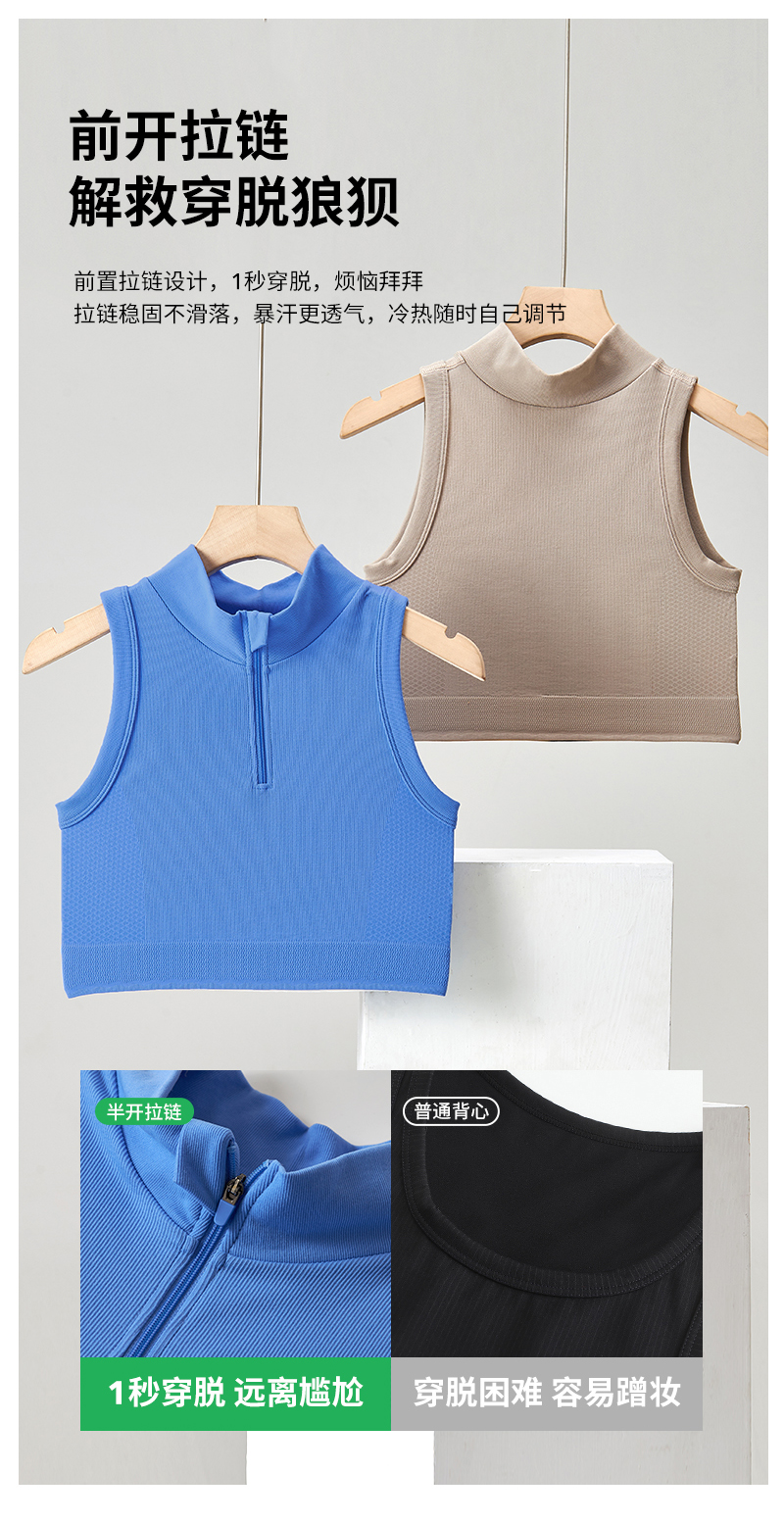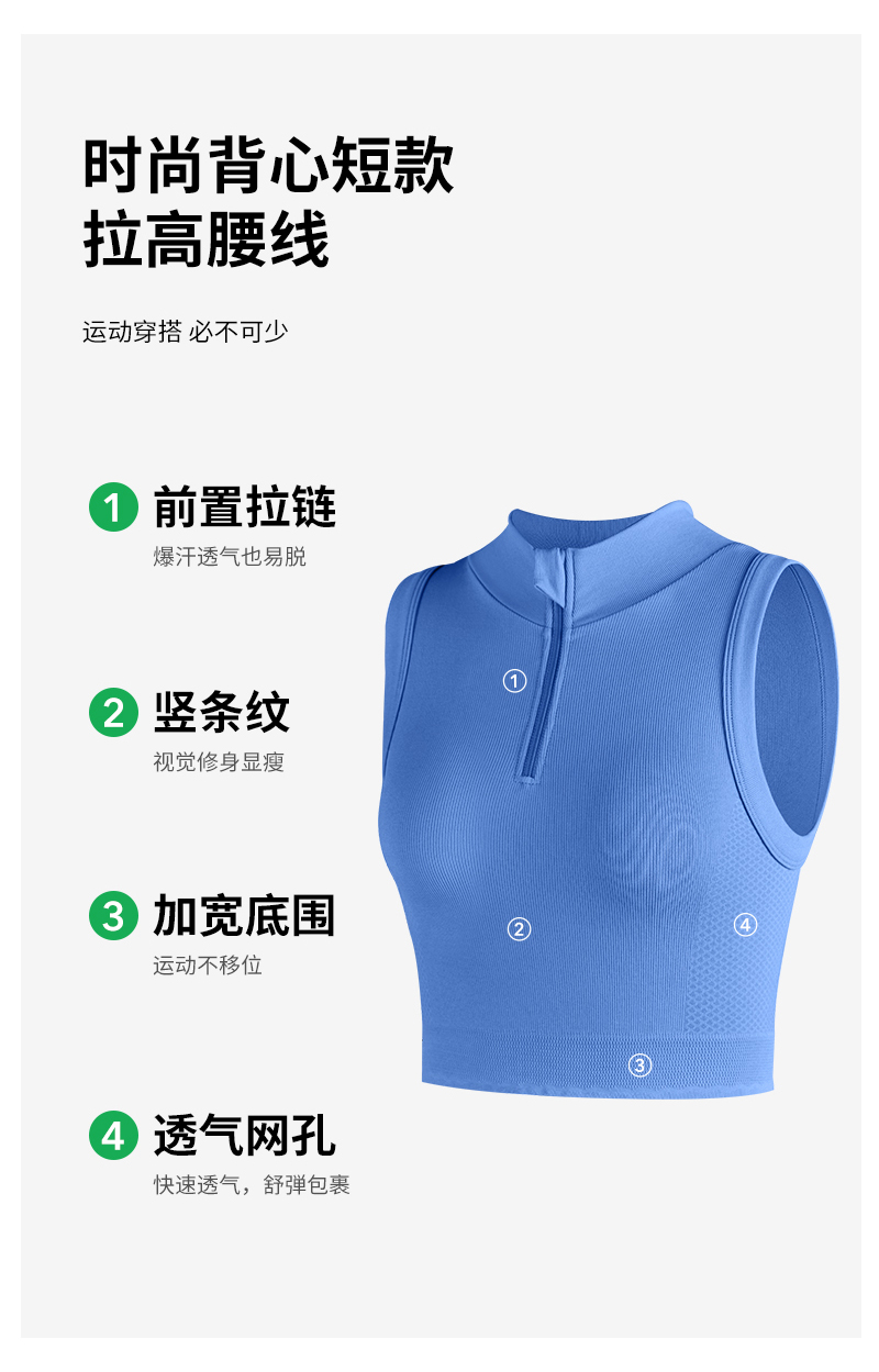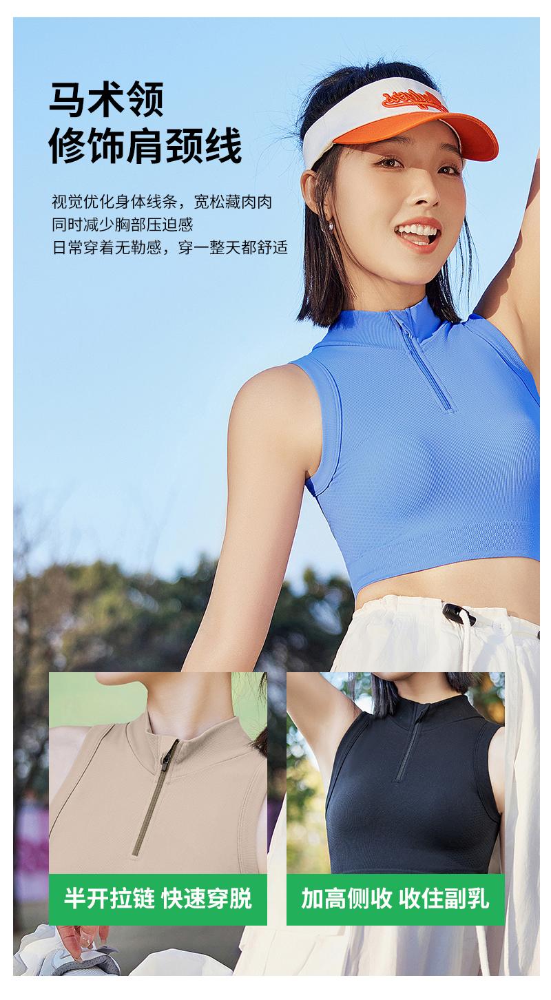 完型翻领拉链背心夏季户外吸湿透气运动背心女款