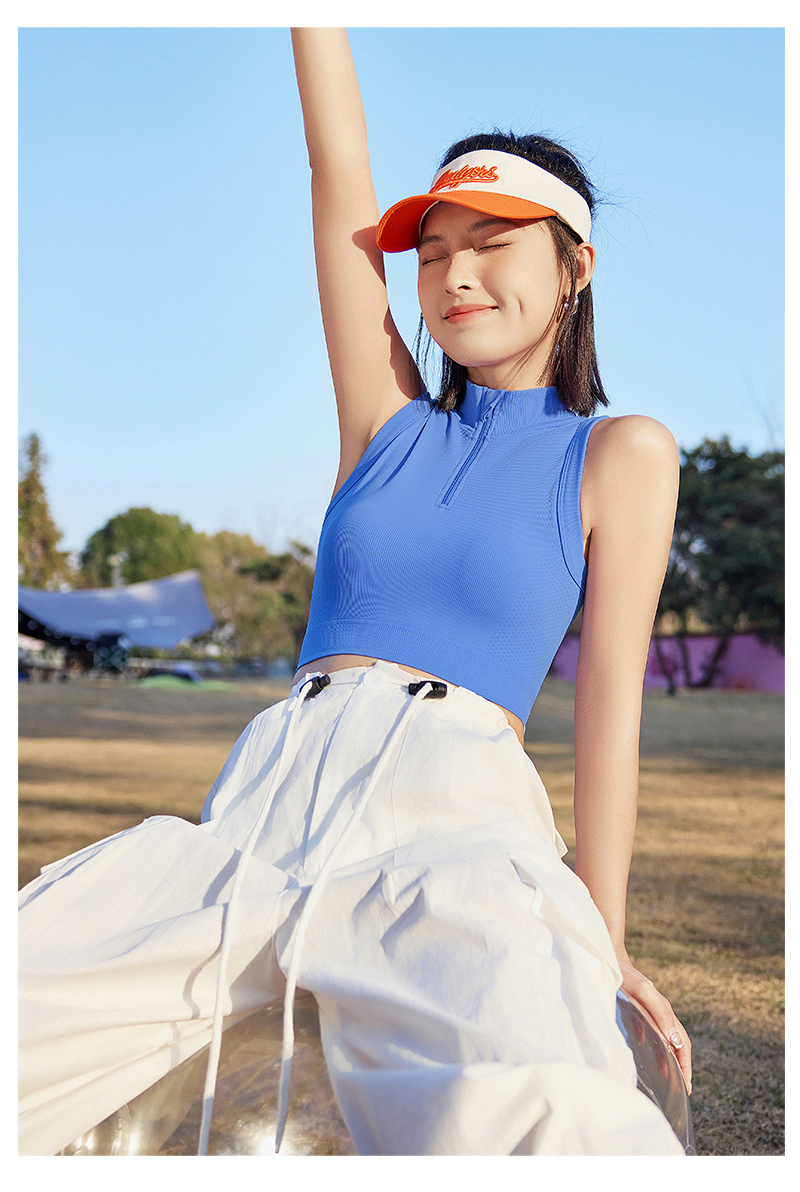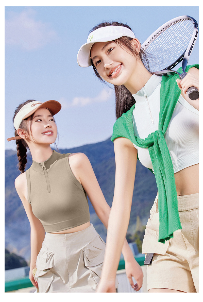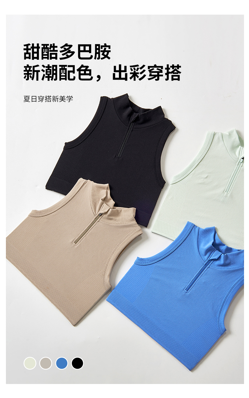 完型翻领拉链背心夏季户外吸湿透气运动背心女款