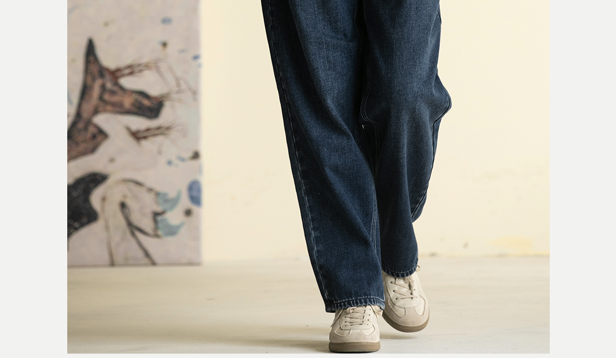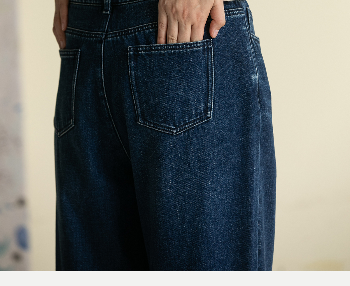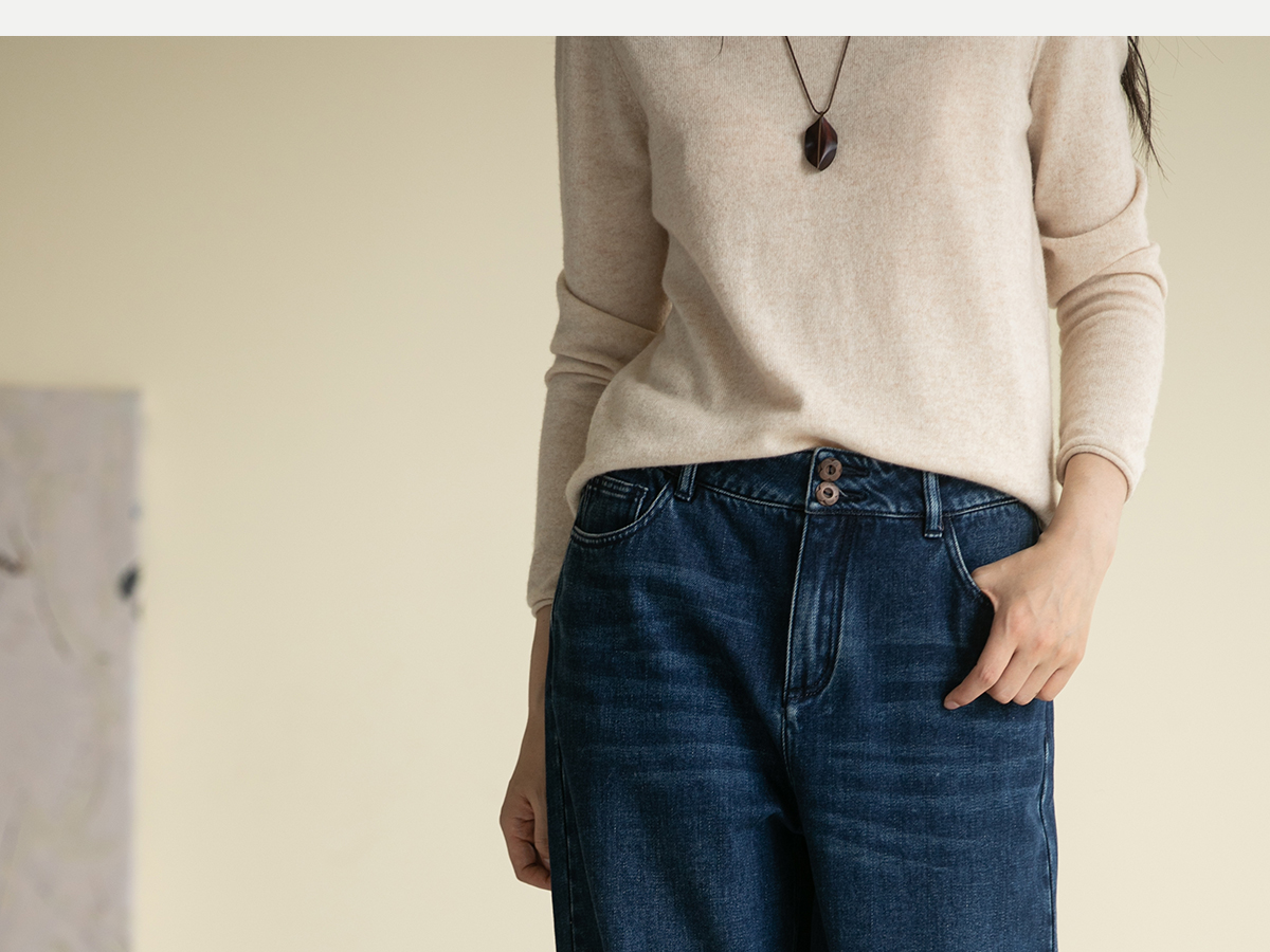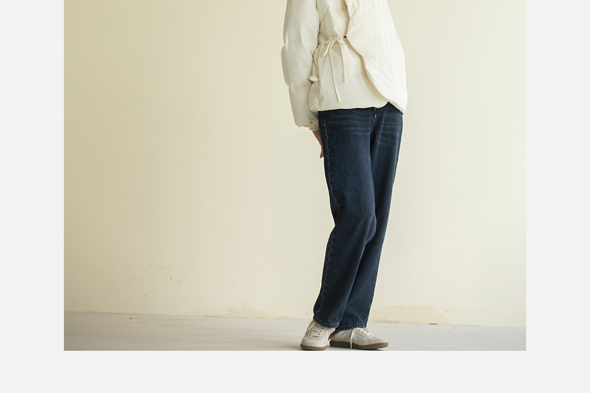 牧衣游原创 牛仔蓝棉质长裤*复古休闲纯棉丹宁裤女新款 汀雨