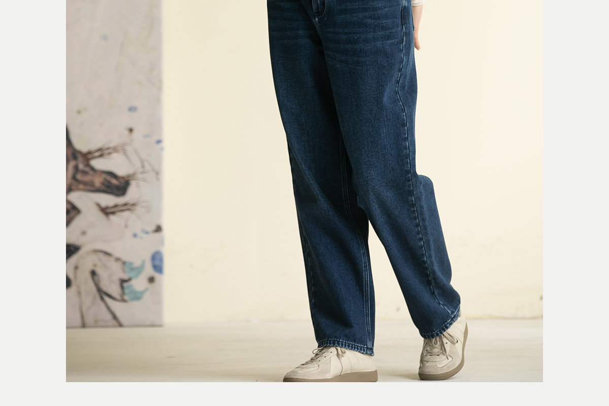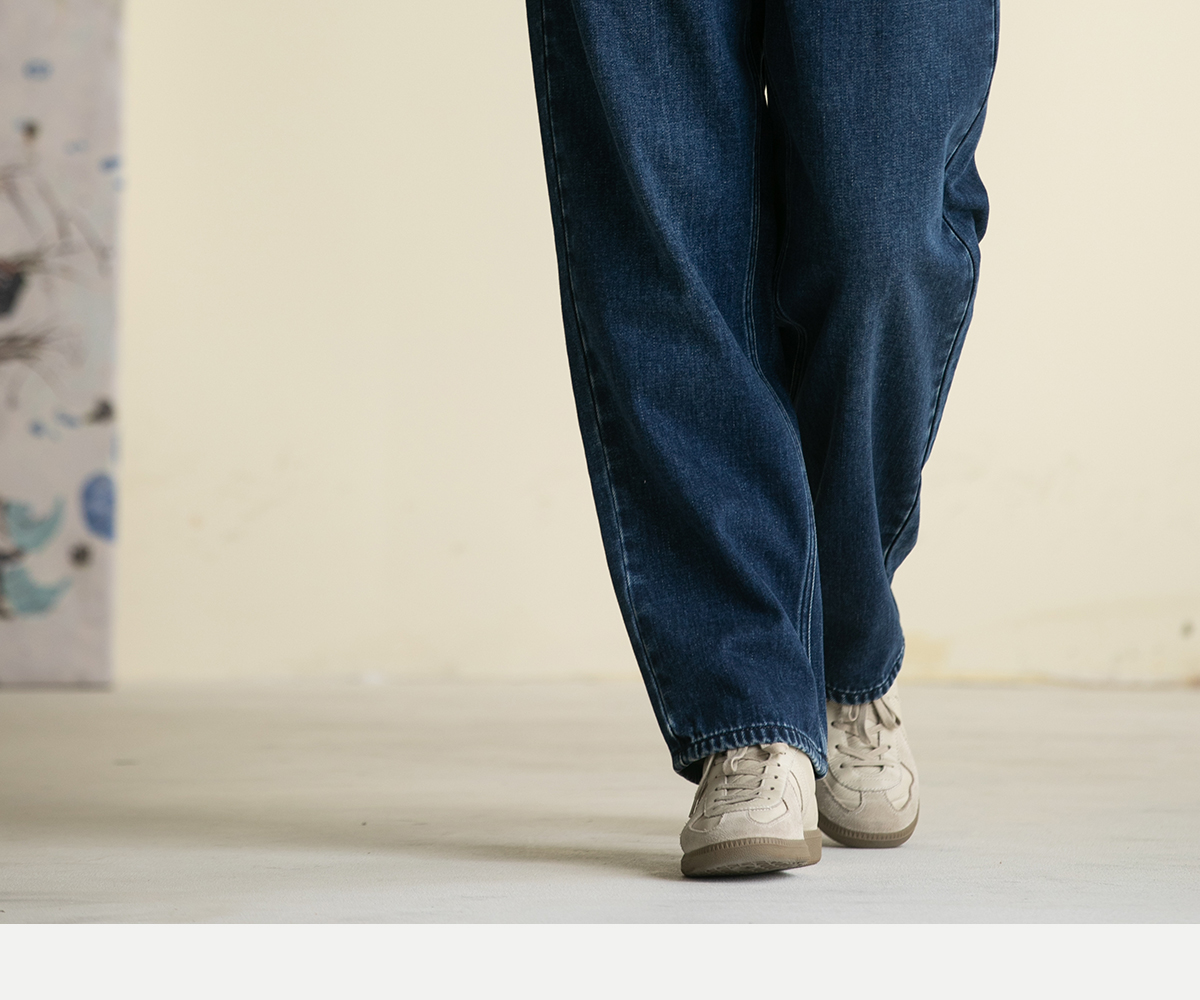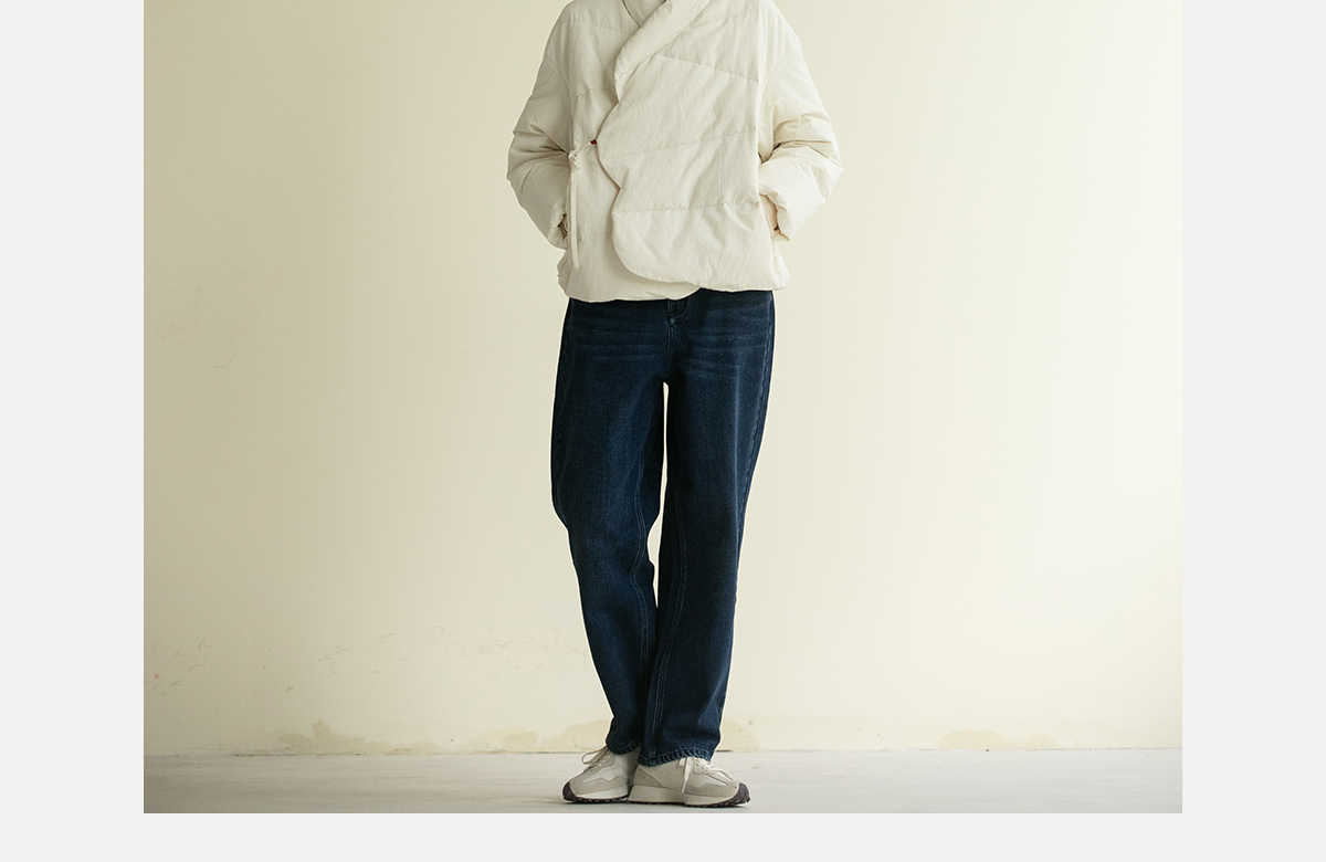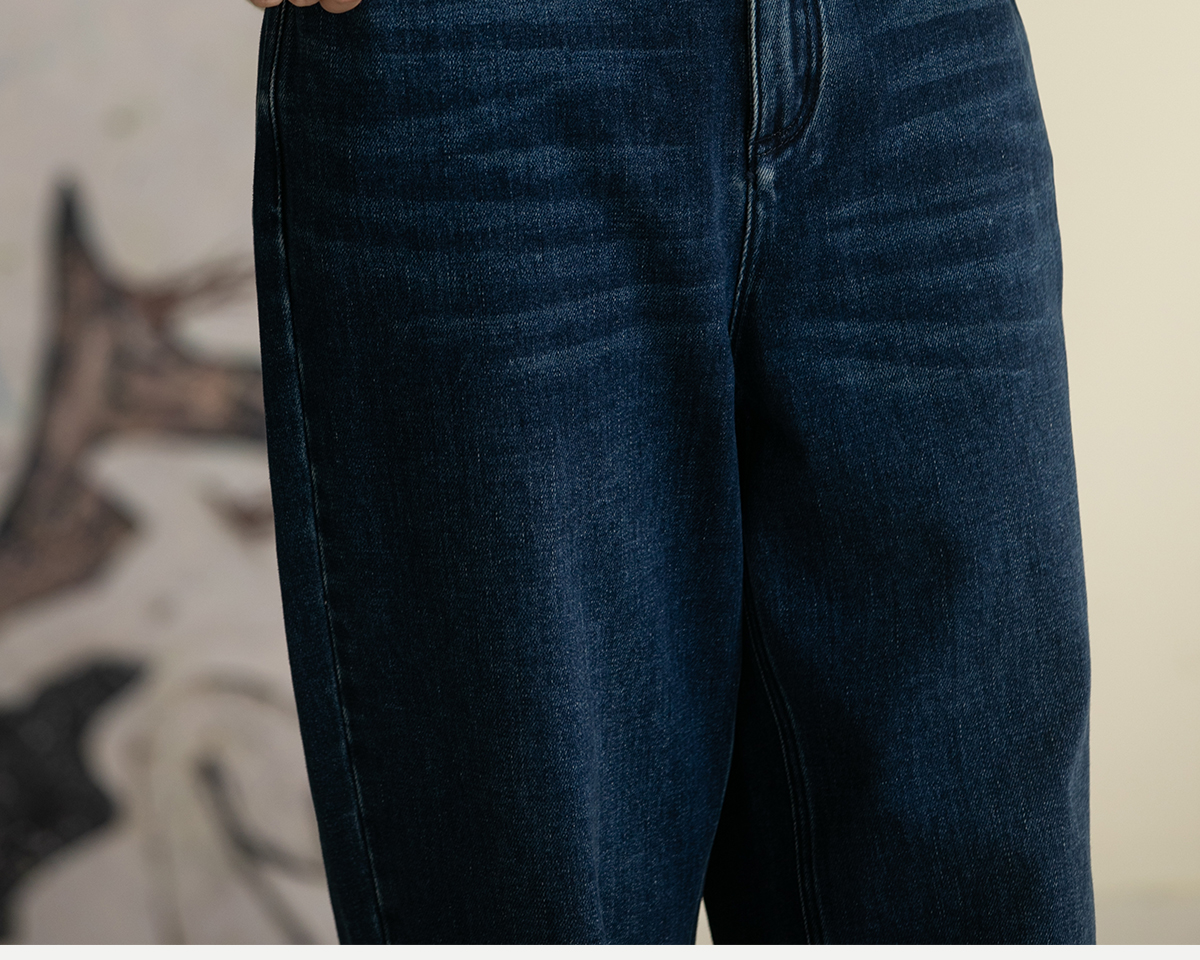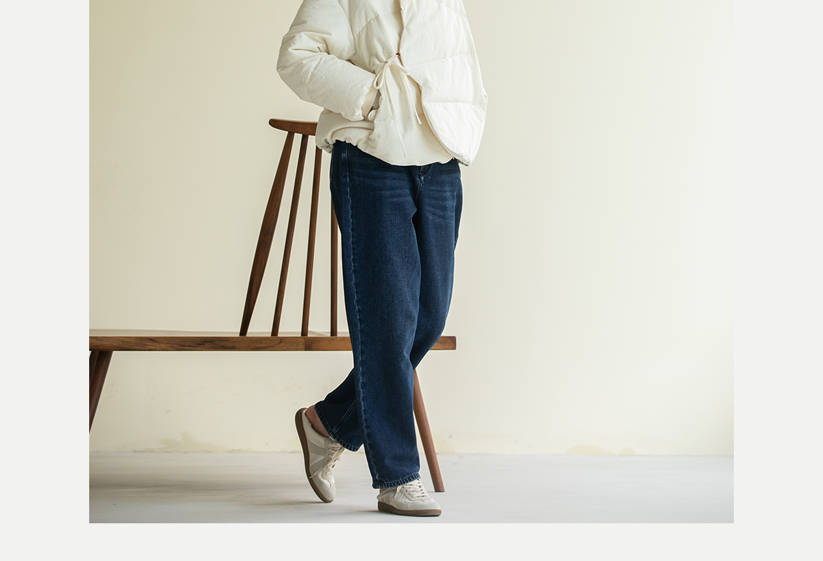 牧衣游原创 牛仔蓝棉质长裤*复古休闲纯棉丹宁裤女新款 汀雨
