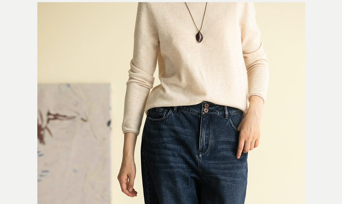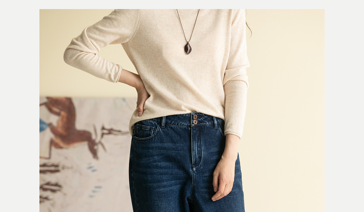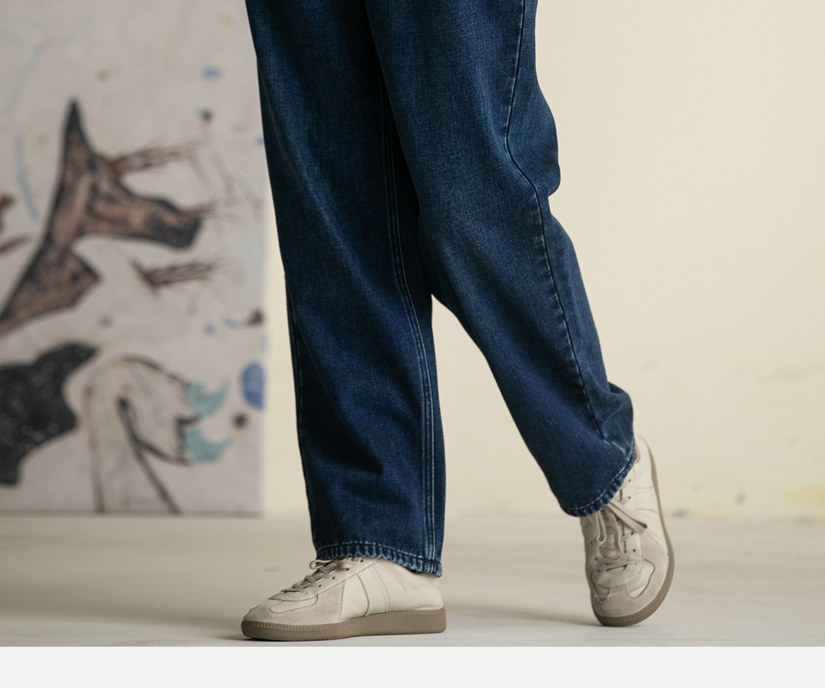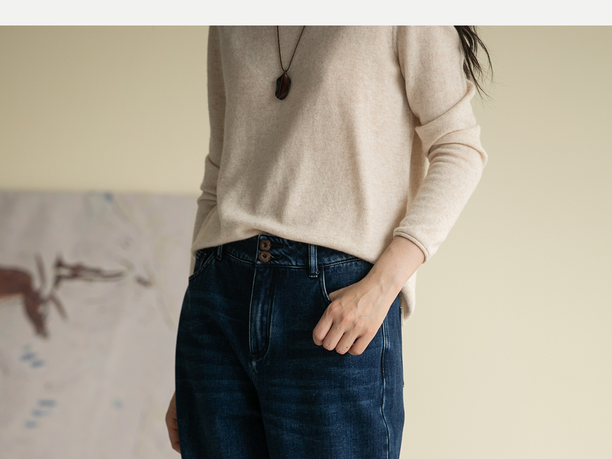牧衣游原创 牛仔蓝棉质长裤*复古休闲纯棉丹宁裤女新款 汀雨