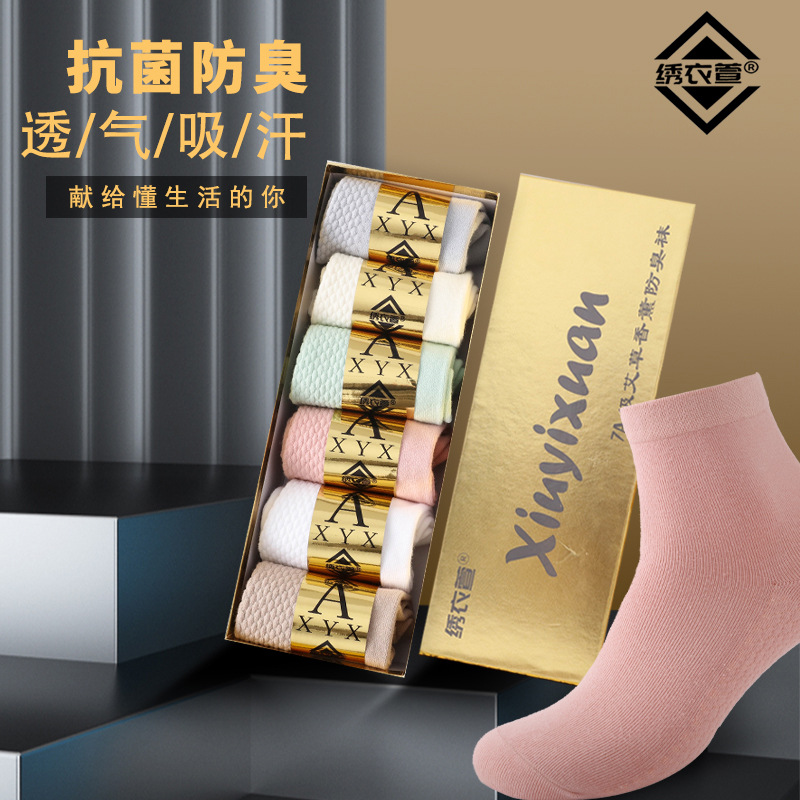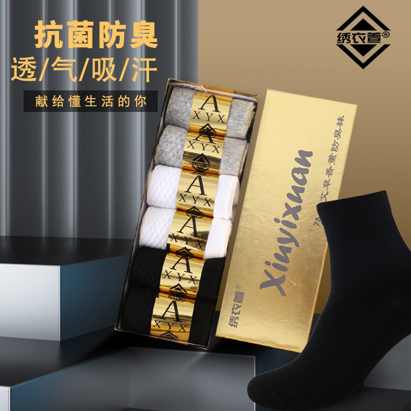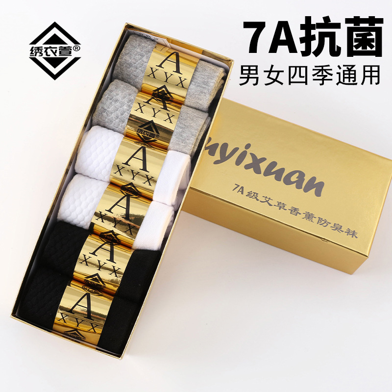 7A抗菌防臭袜艾草香薰银离子抗菌防臭袜男四季防臭棉按摩底