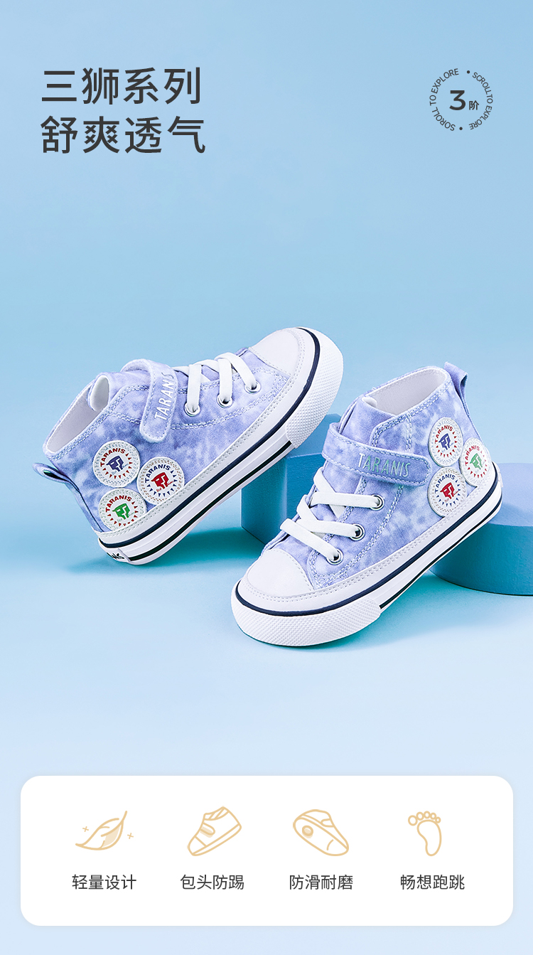 特价[99元/双] 泰兰尼斯春款小童段时尚透气三狮系列板鞋T02X2A1888