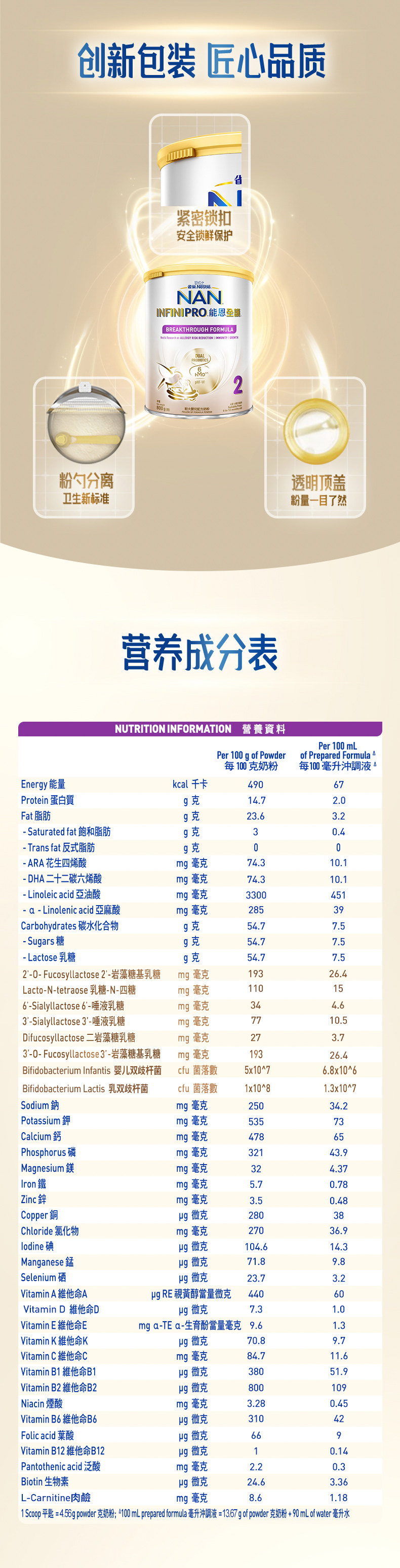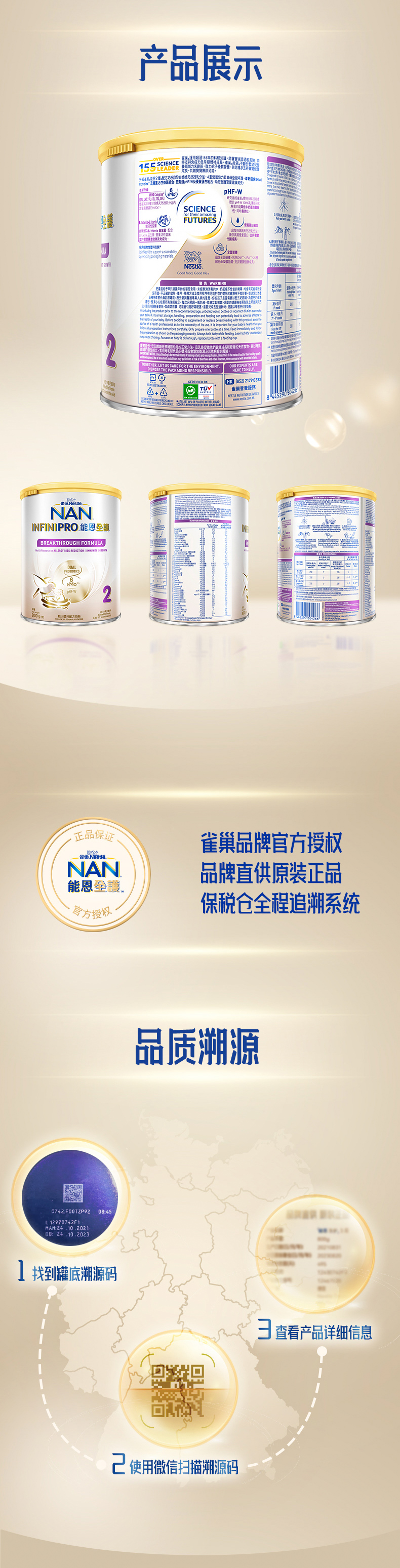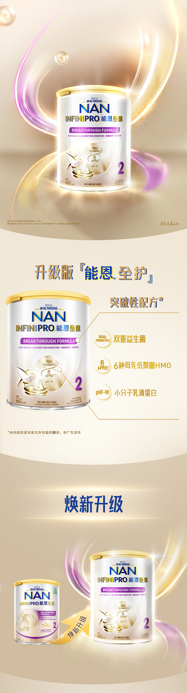 [大罐2段]港版雀巢Nestle 能恩全护6HMO适度水解益生菌较大婴儿配方奶粉2段(6-12个月)800g