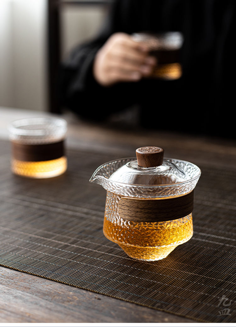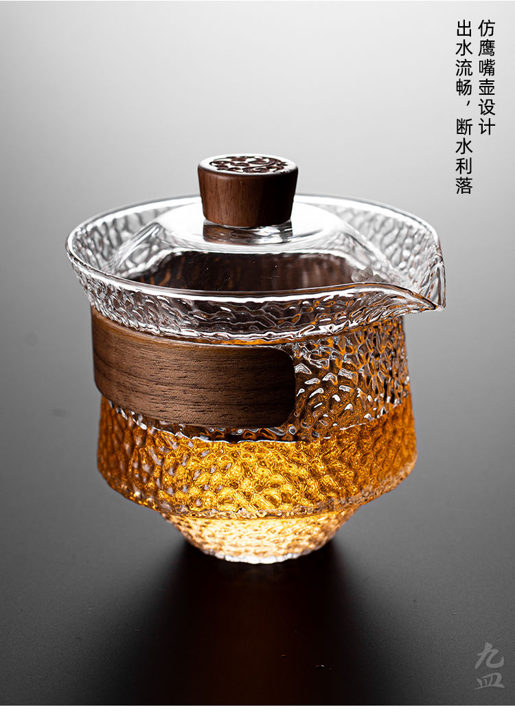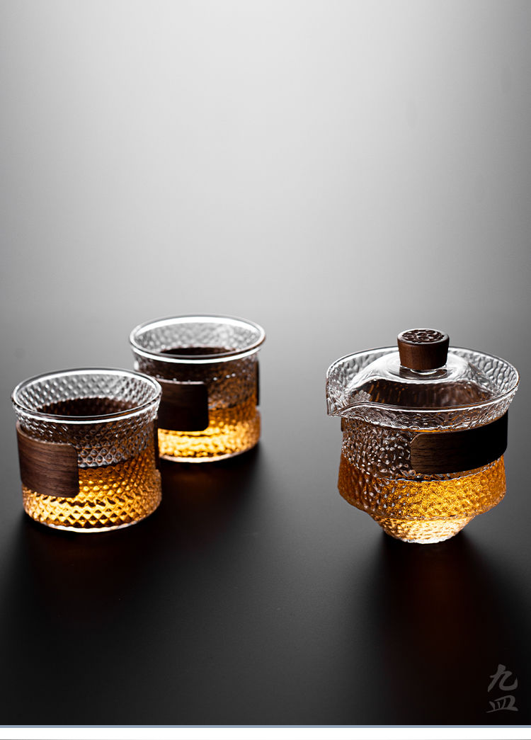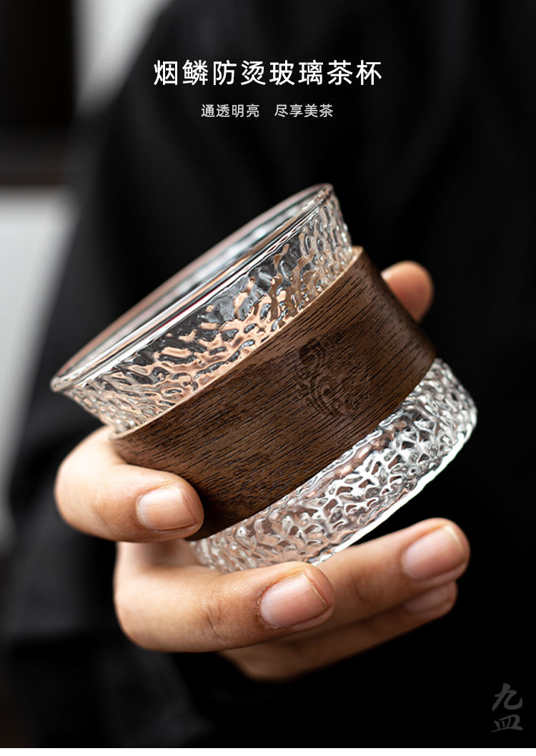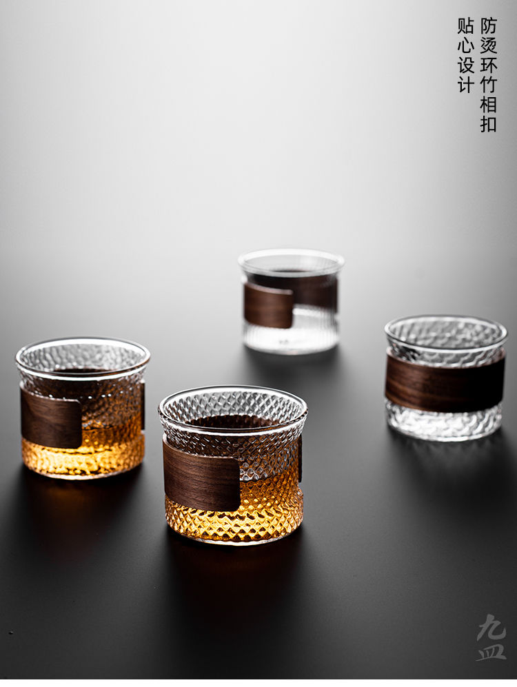 九皿耐热玻璃主人杯防烫加厚品茗杯个人杯家用功夫茶杯锤纹小单杯