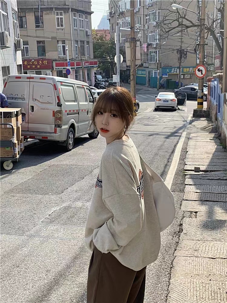 新款宽松情侣学生长袖百搭卫衣女秋冬加绒大码印花打底衫休闲时尚上衣外套女