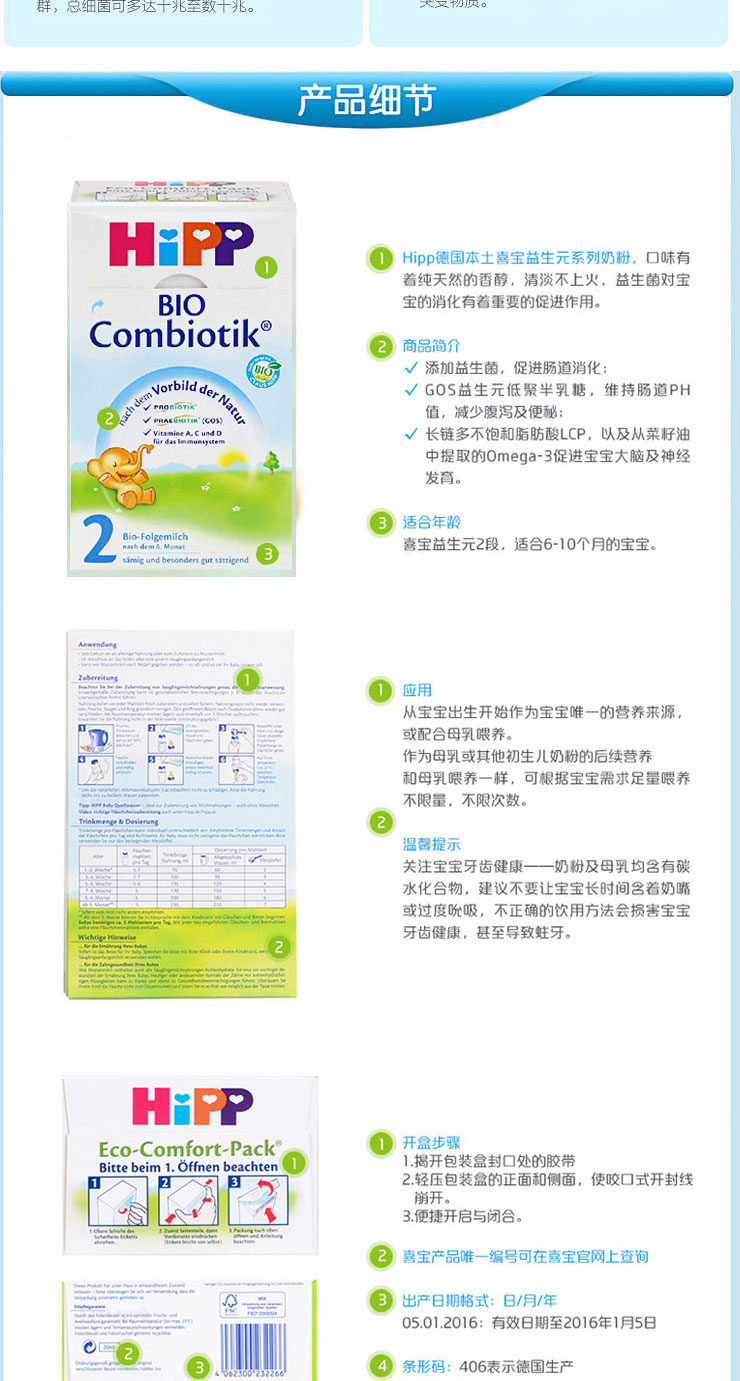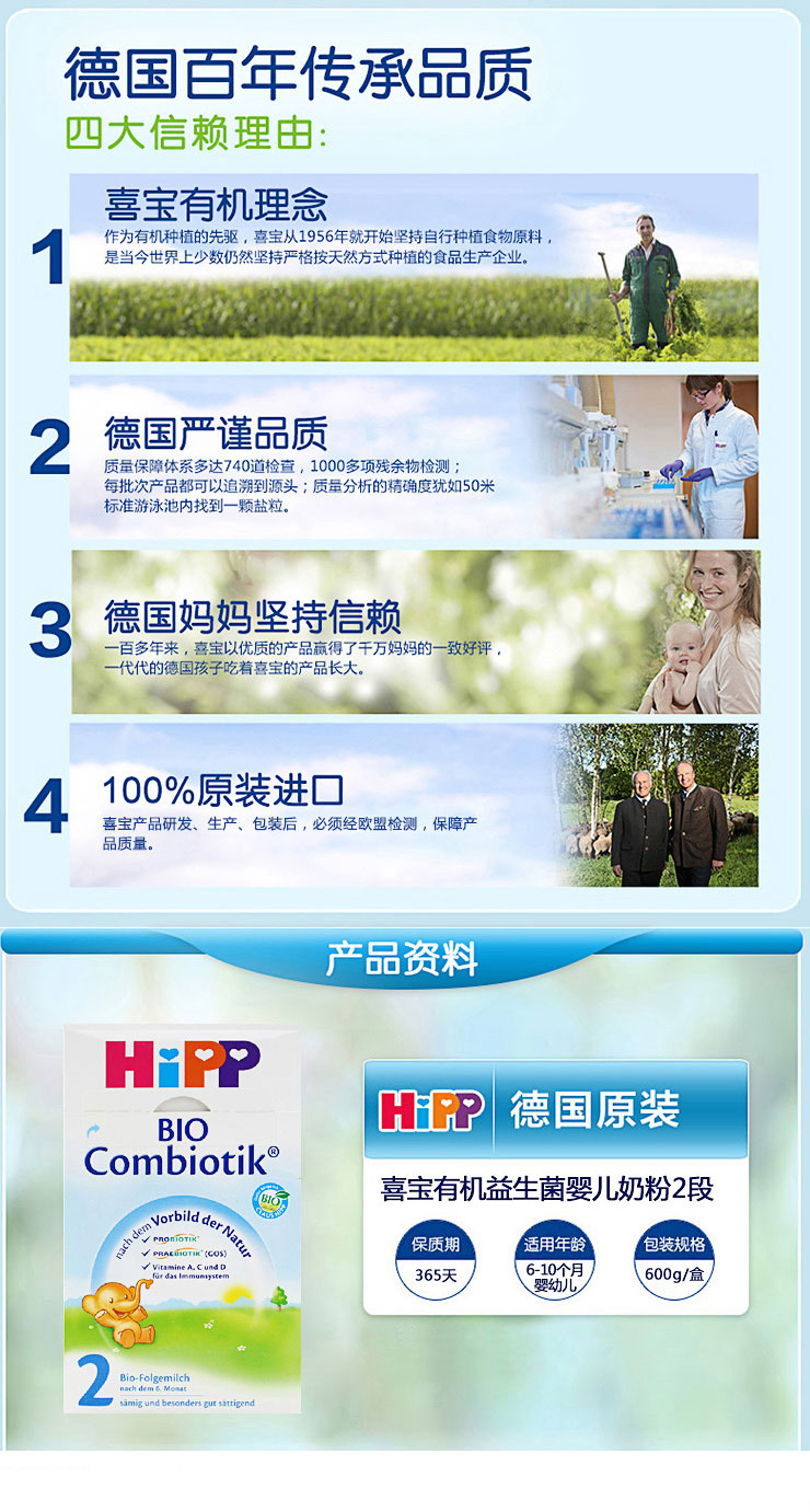 Hipp喜宝 婴幼儿奶粉 益生菌2段 600g 两盒装 德国