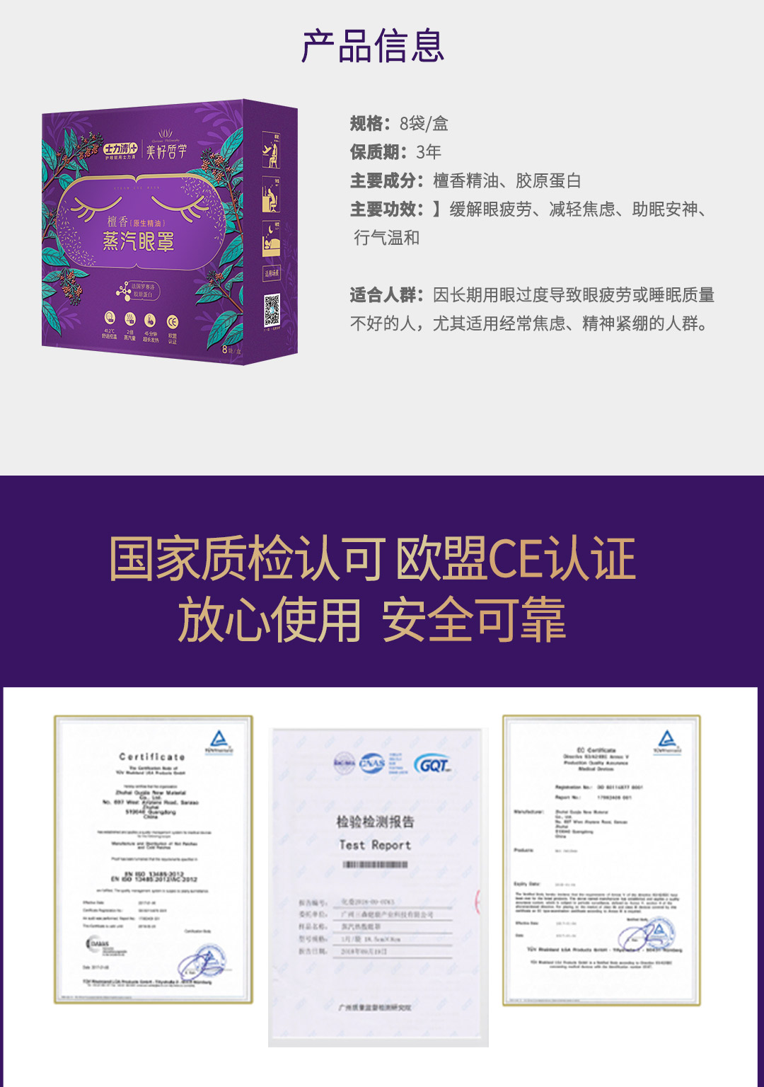 士力清蒸汽眼罩檀香、艾草、藏红花洋甘菊(1盒8袋)5盒/10盒套装