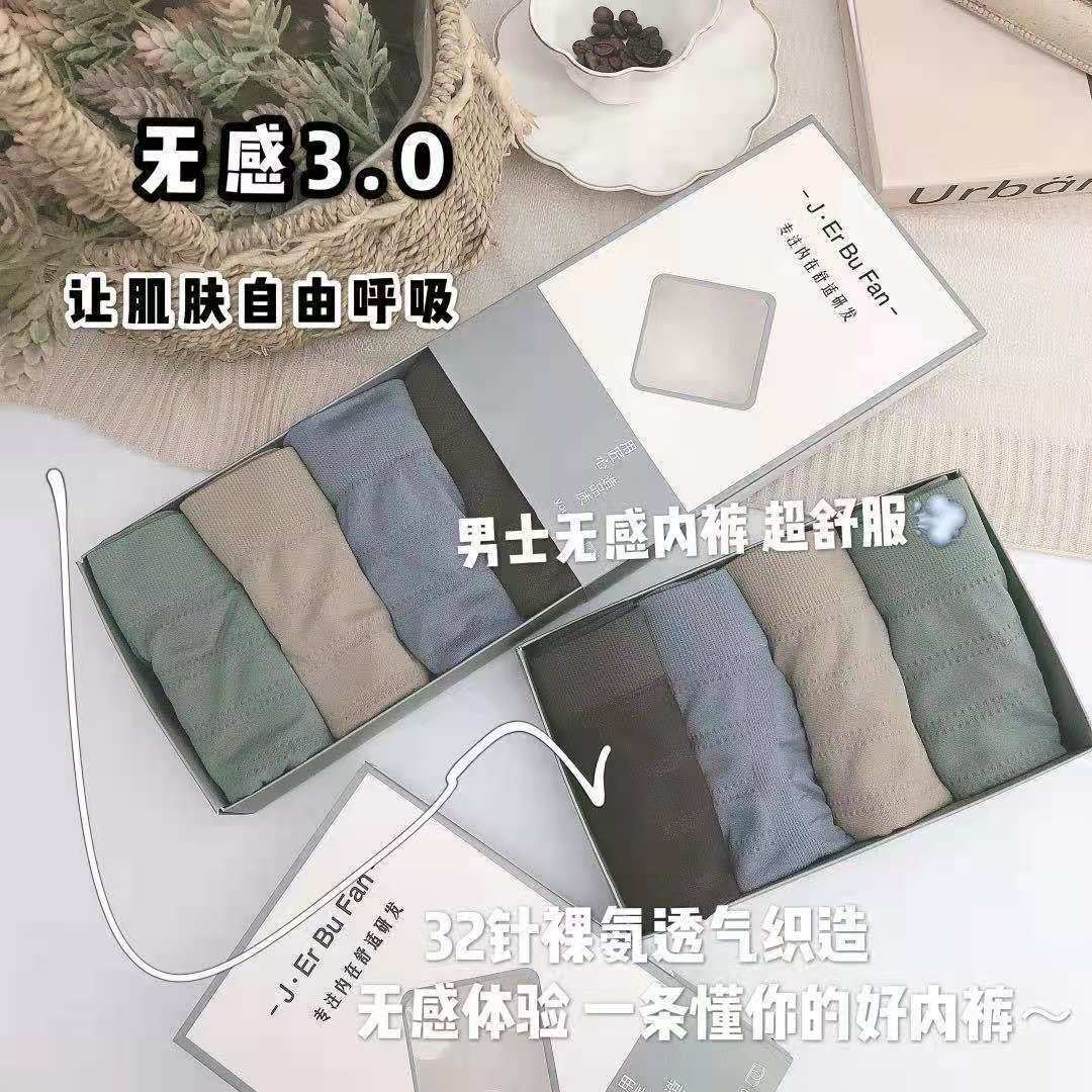 Jie Er Bu Fan无感男士内裤3.0简约轻盈柔软无痕无缝棉男士盒装