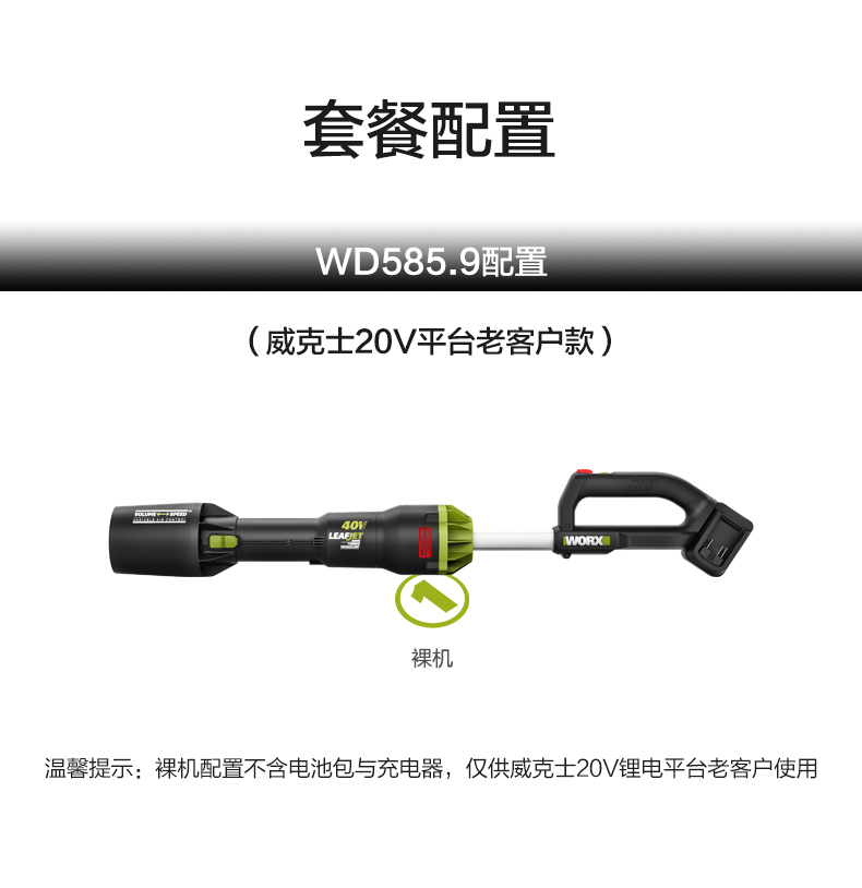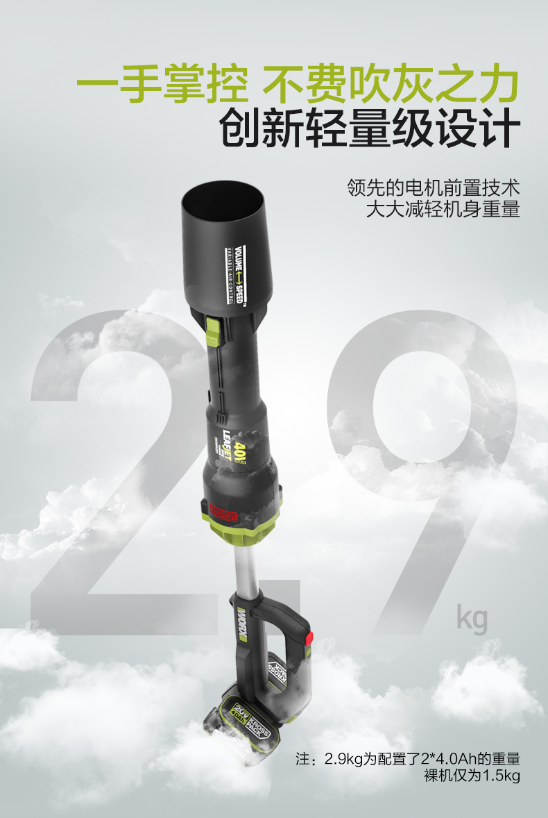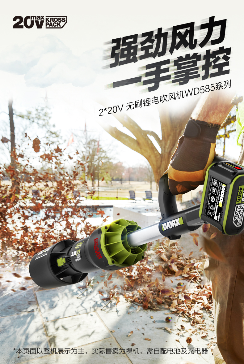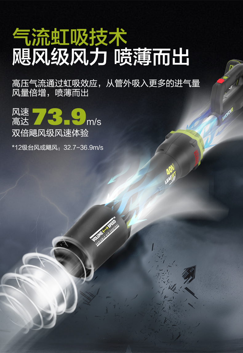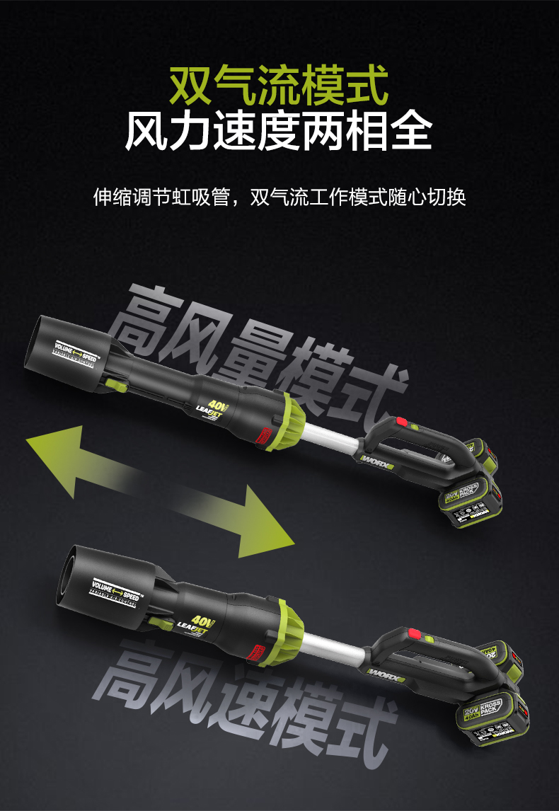 威克士2*20V无刷锂电吹风机WD585大功率工业用鼓风机吹雪机除尘器