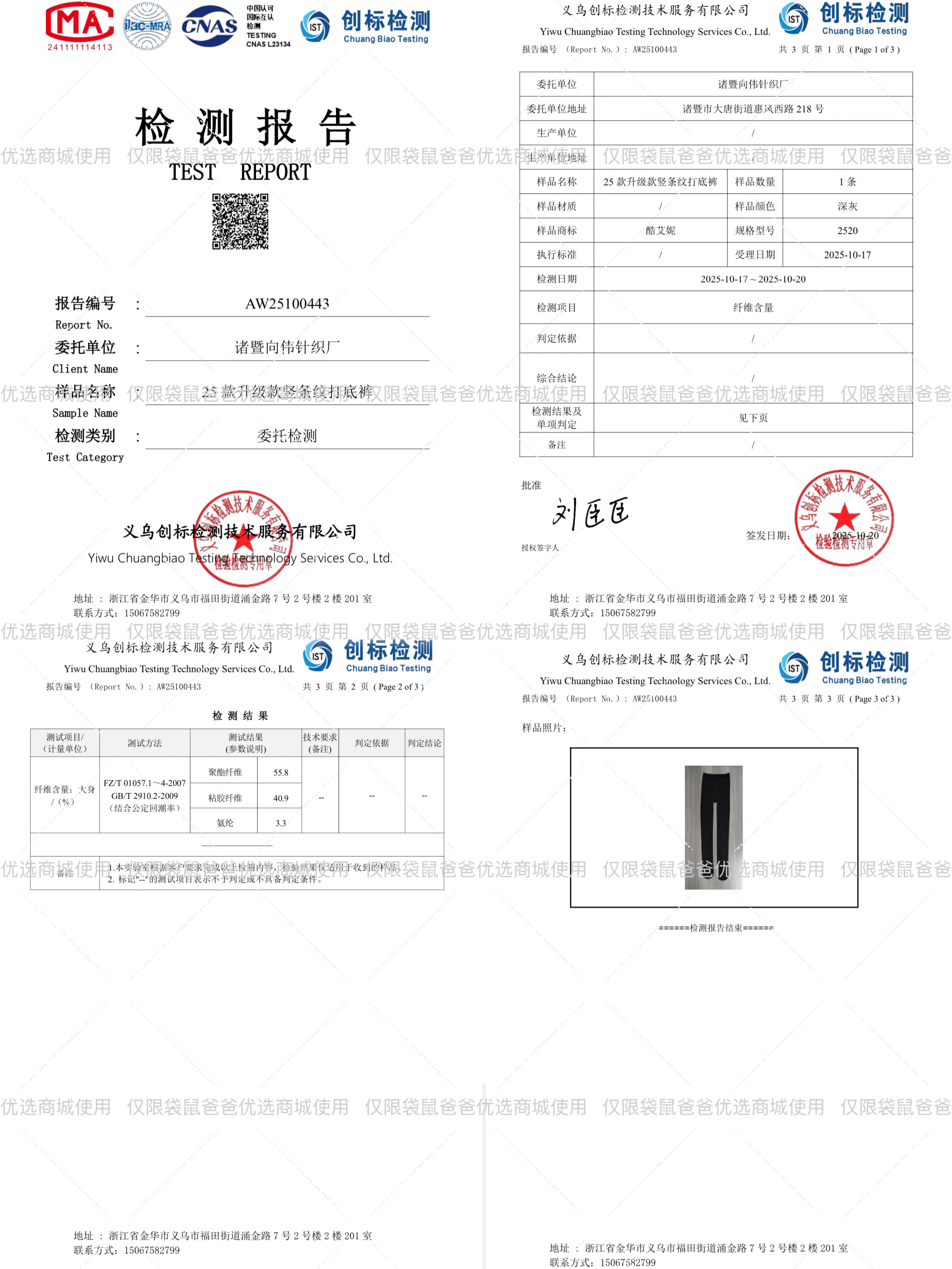 材质:粘纤40.9% 氨纶3.3% 聚酯纤维55.8%