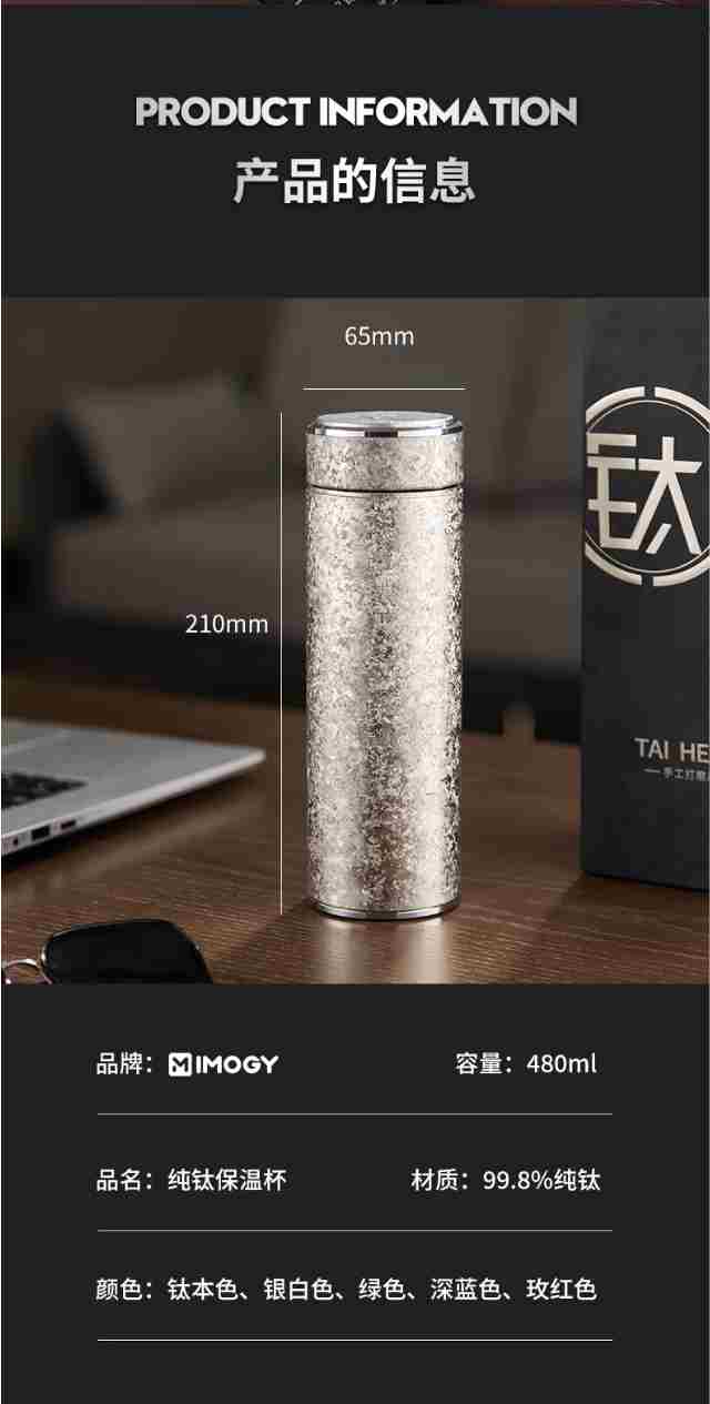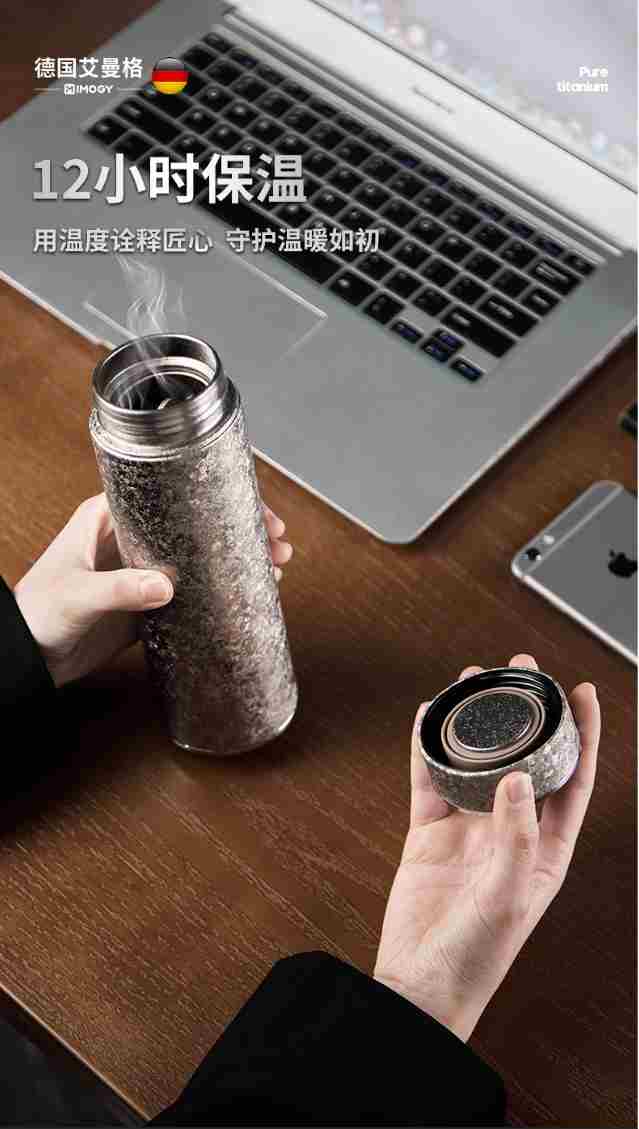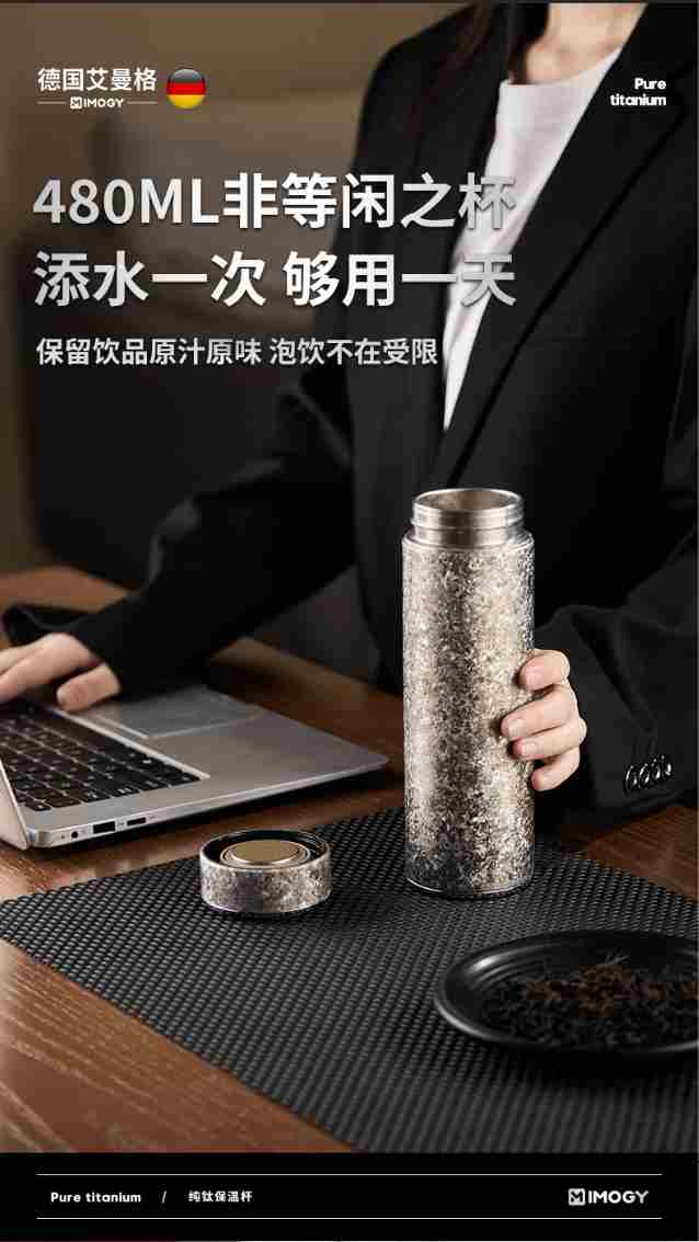 艾曼格(IMOGY)保温杯纯钛水杯男士高端咖啡杯泡茶杯年会礼品大容量焖泡茶钛杯