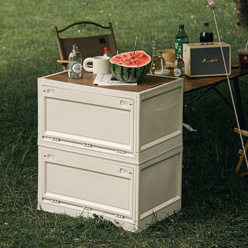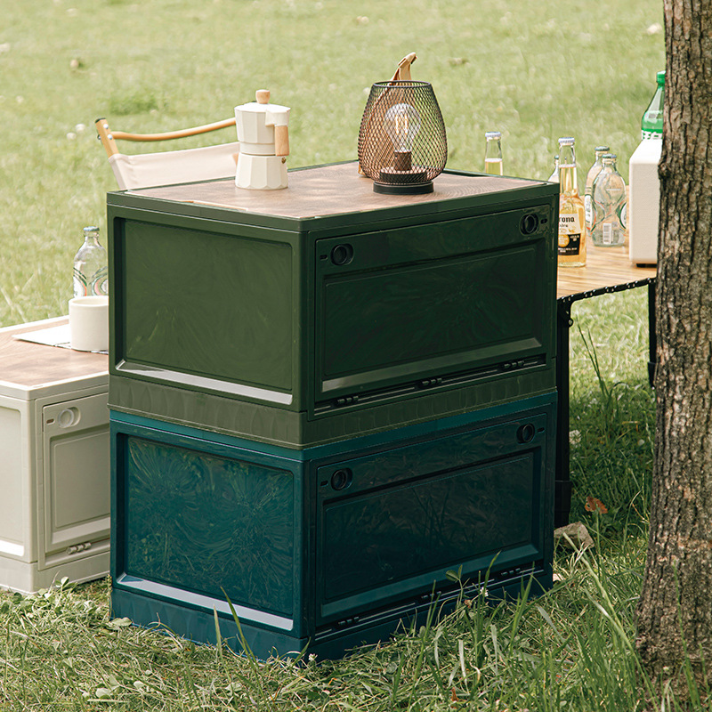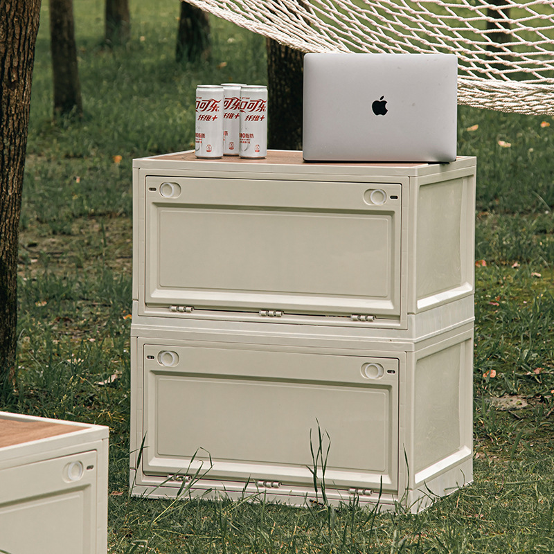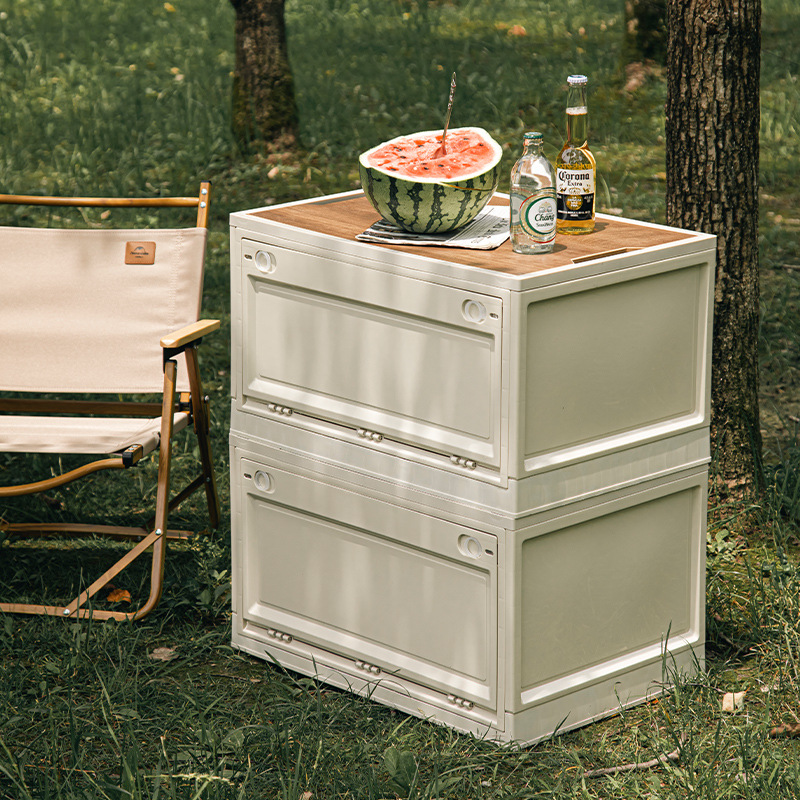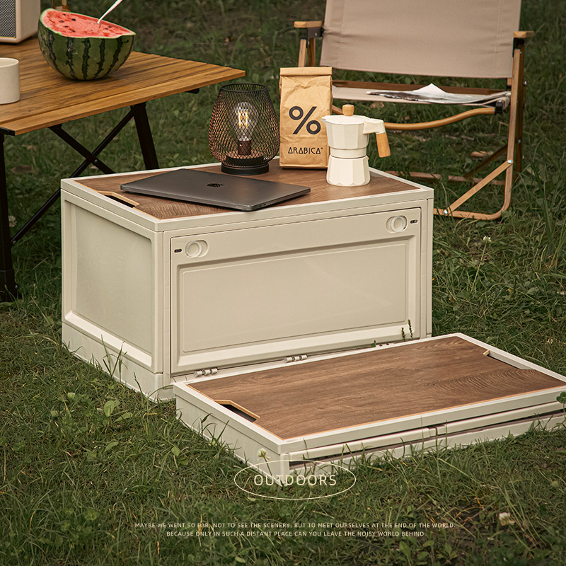 户外野营便携式储物盒子折叠收纳箱露营车载木盖置物箱野餐整理箱