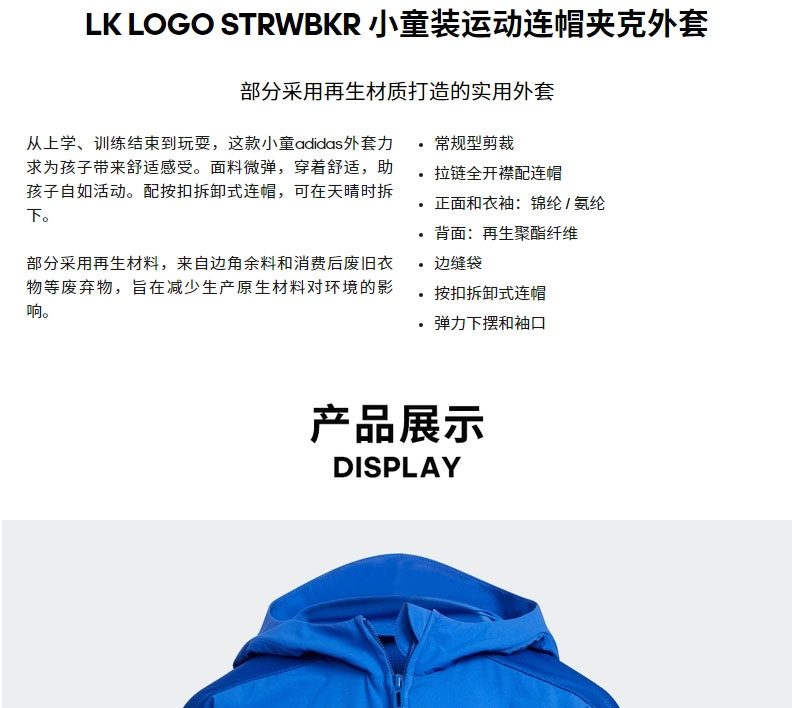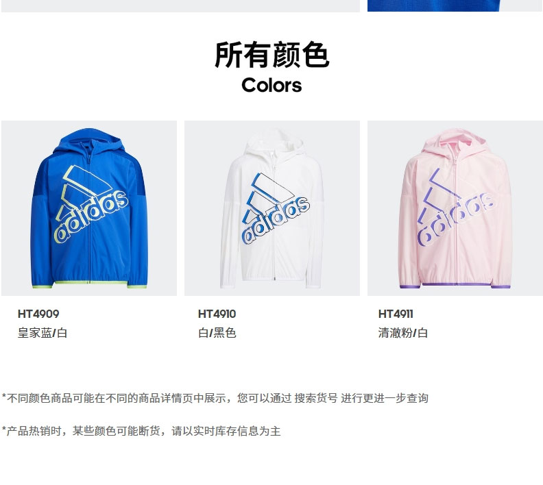 小阿迪小童装春夏新款运动连帽夹克外套HT4909