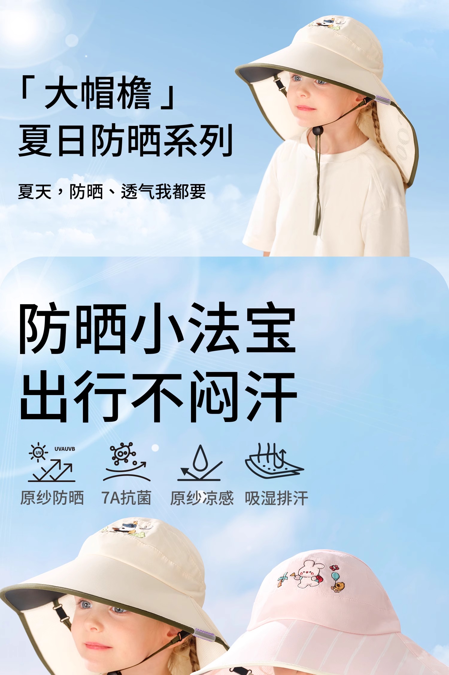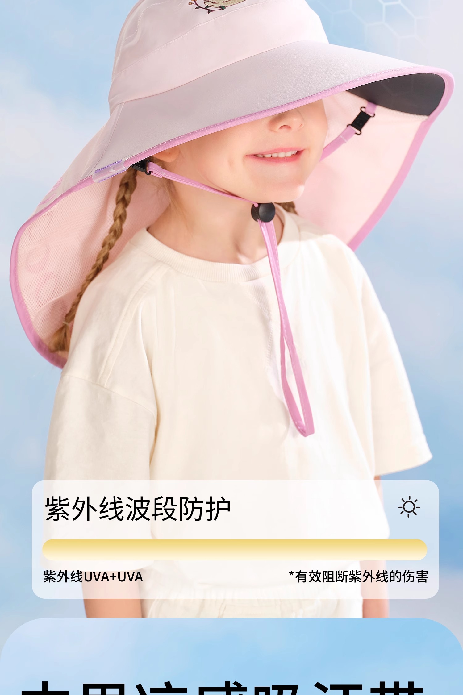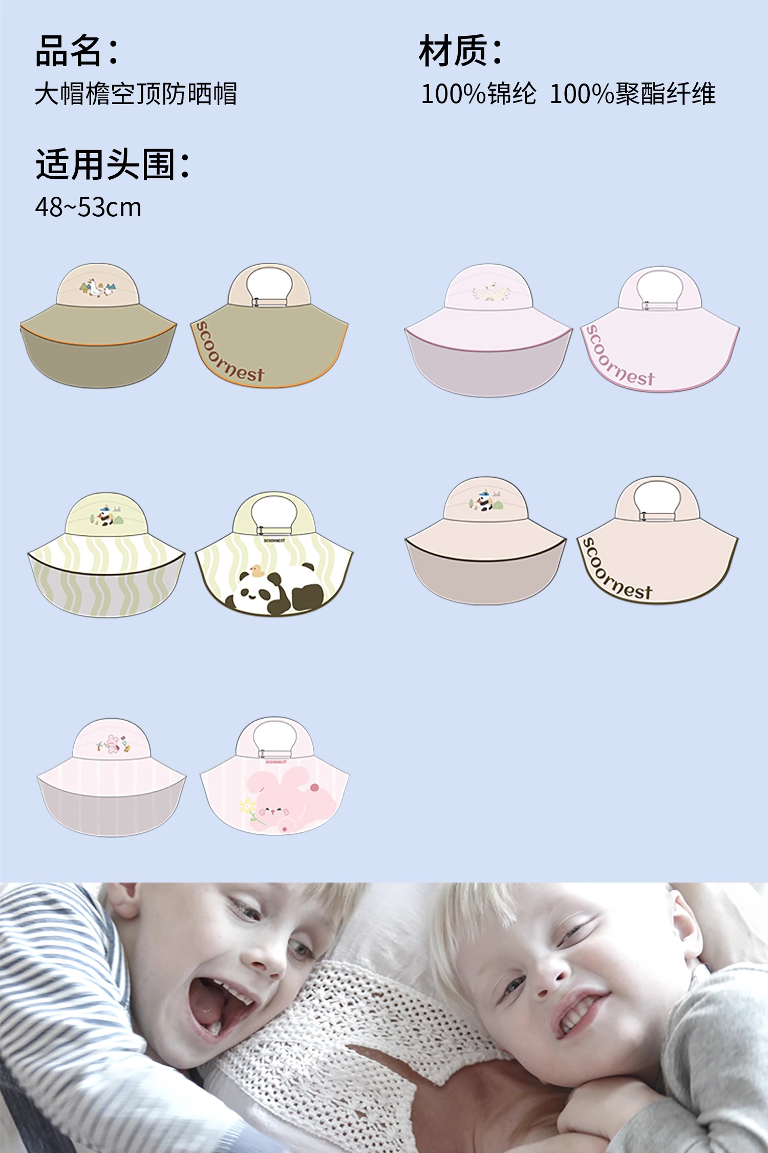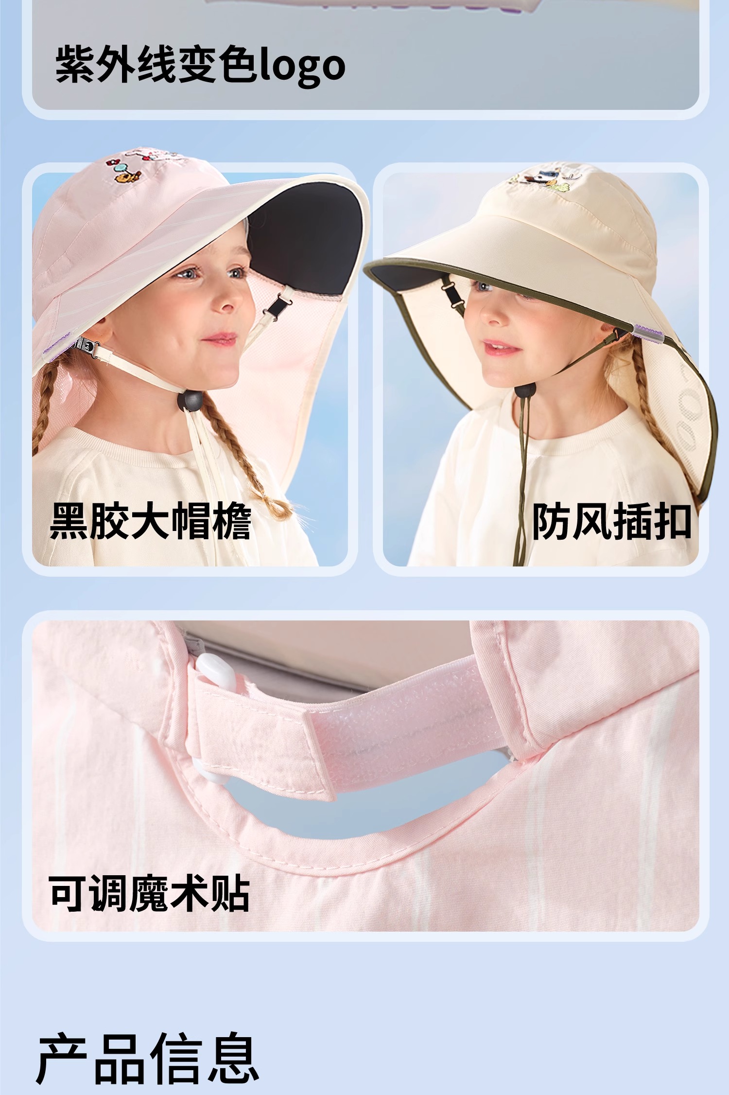 科巢儿童防晒帽黑胶宝宝遮阳帽防紫外线男孩女童太阳帽夏季空顶大帽檐