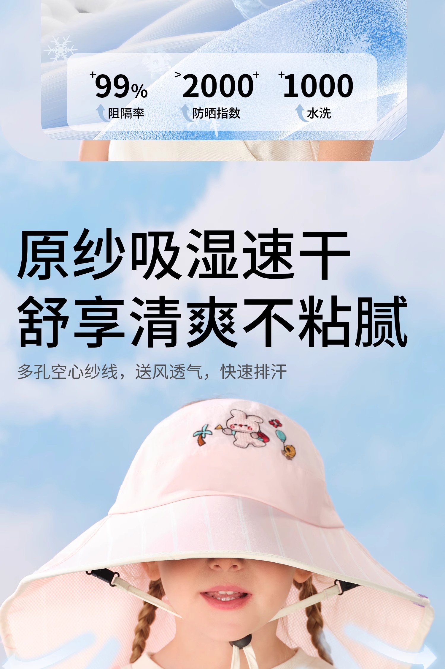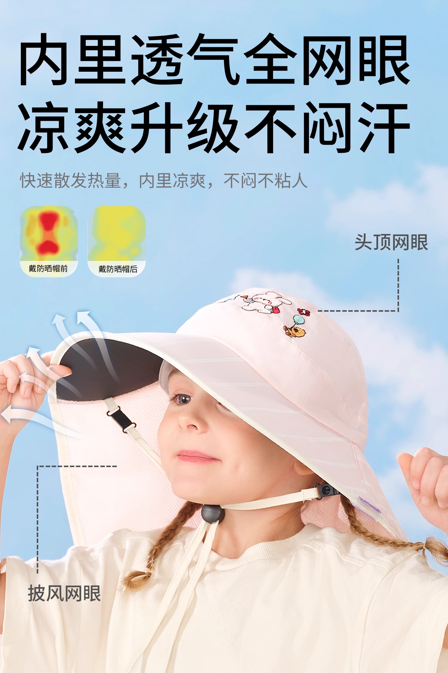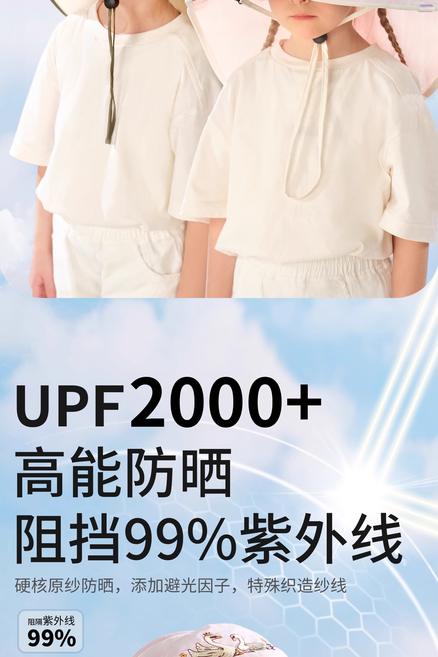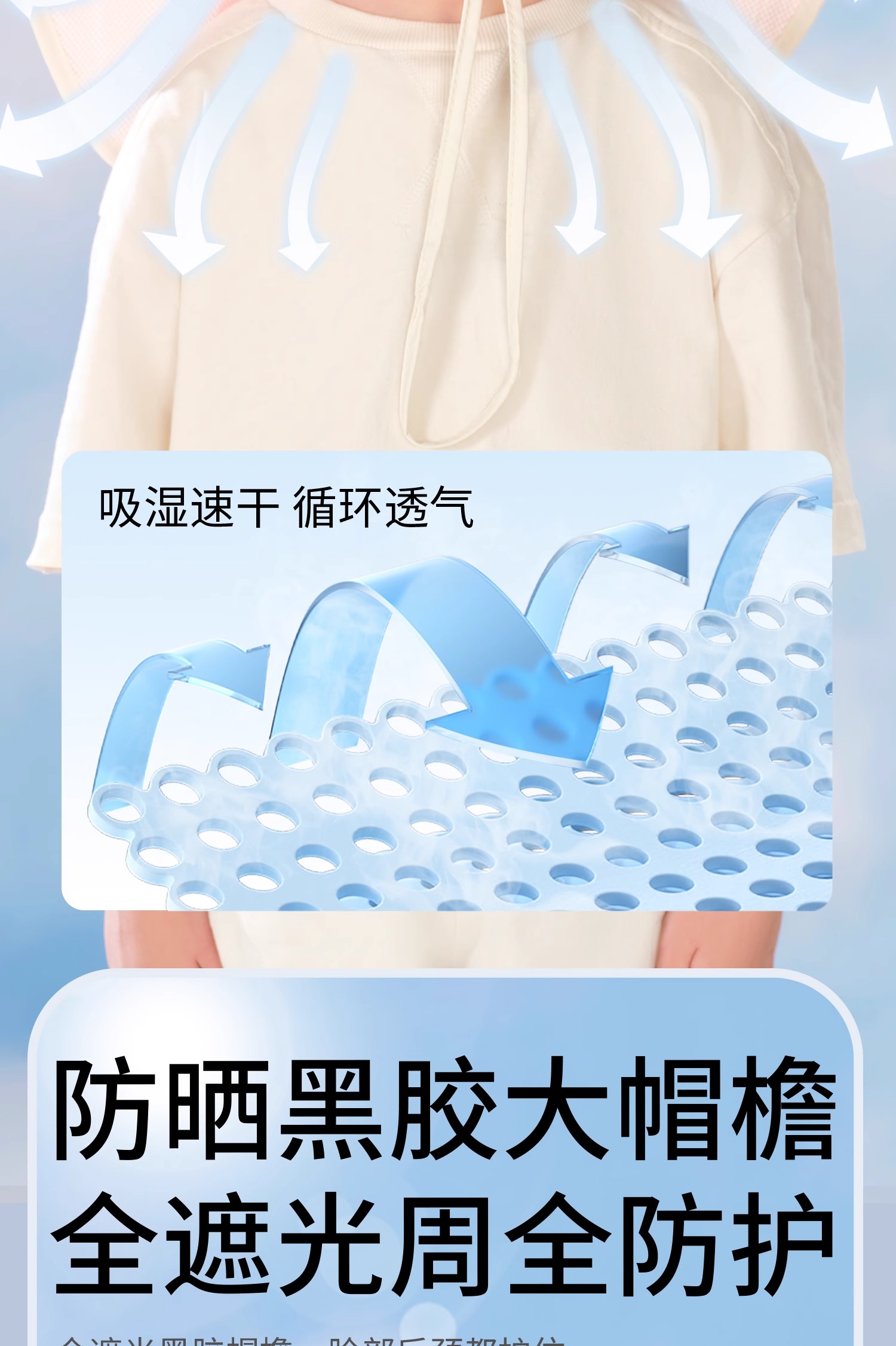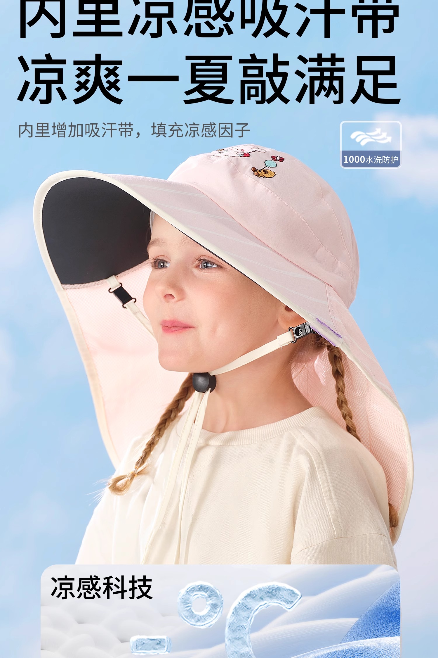 科巢儿童防晒帽黑胶宝宝遮阳帽防紫外线男孩女童太阳帽夏季空顶大帽檐