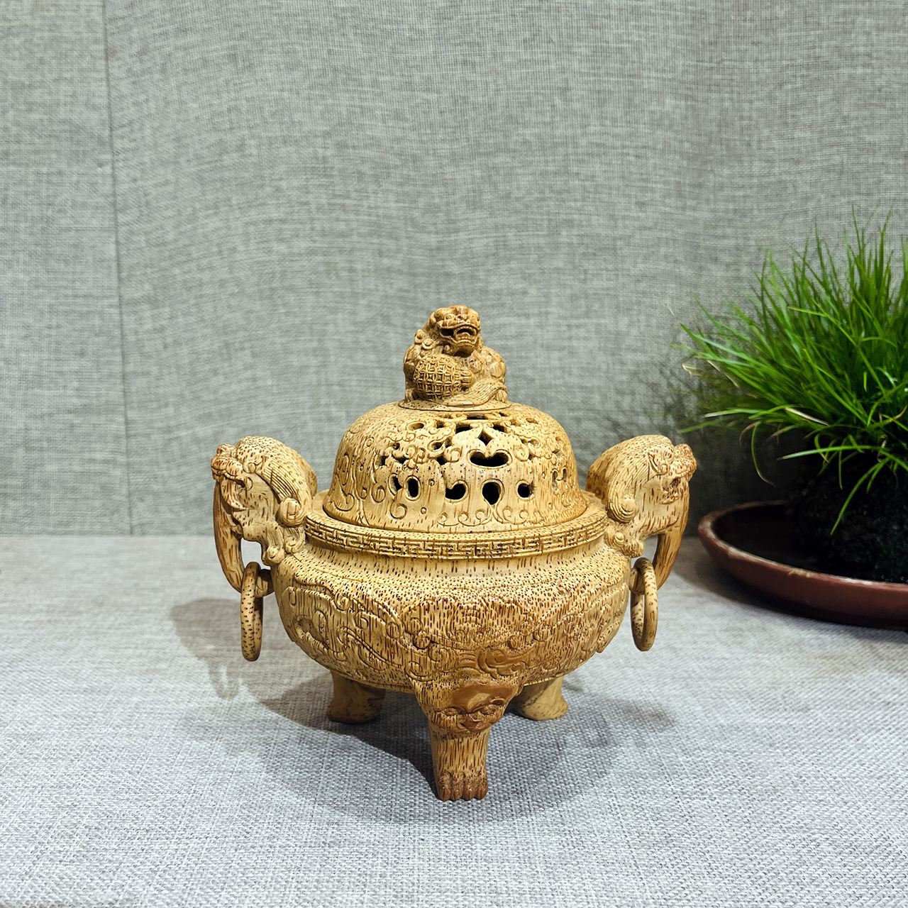 瑞兽貔貅°老竹雕三足熏香炉