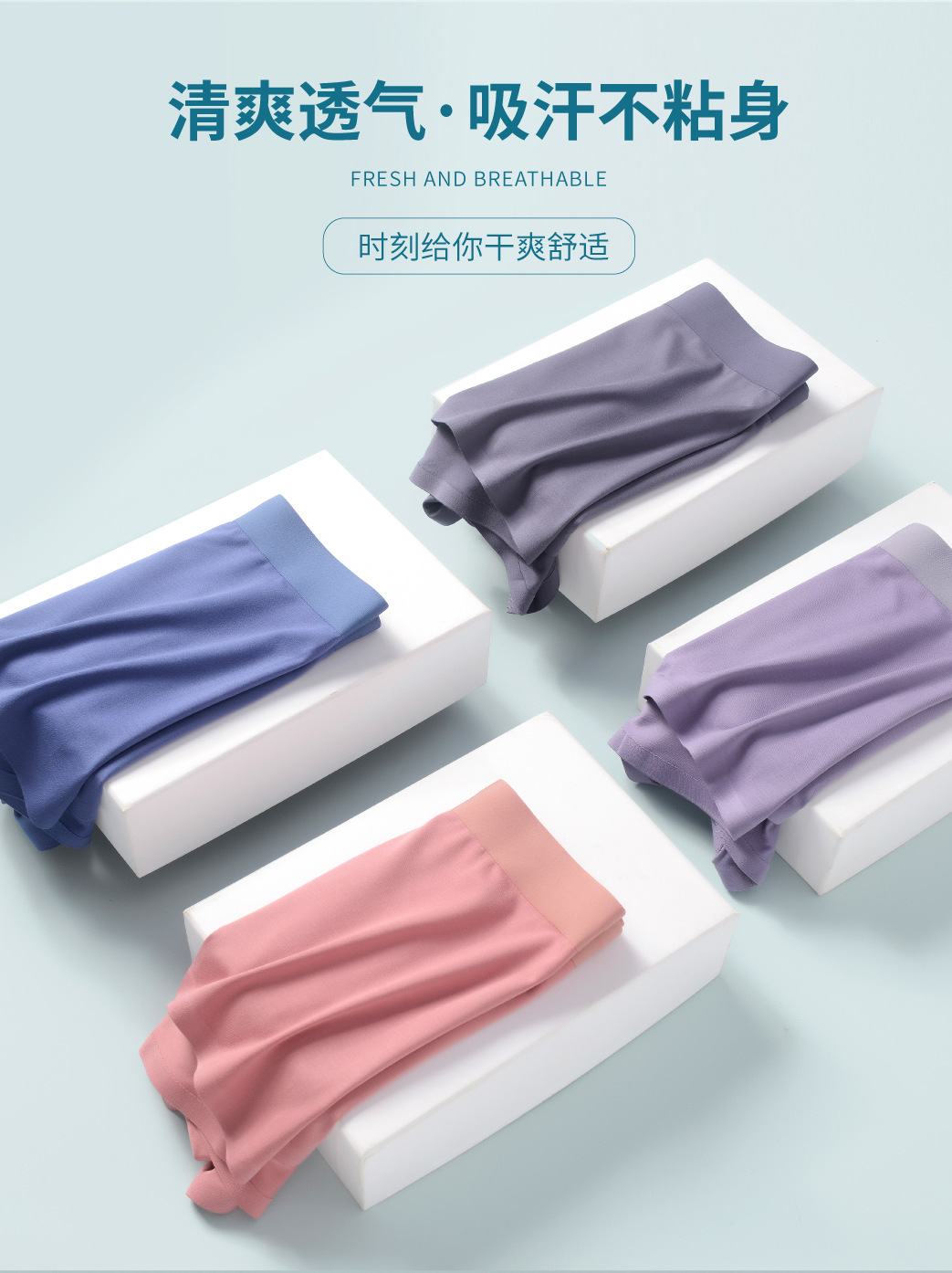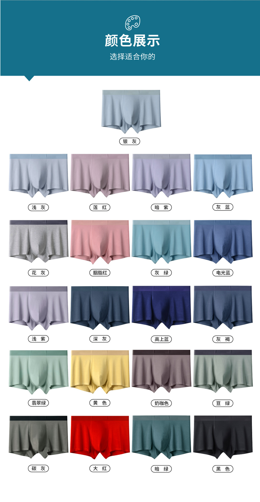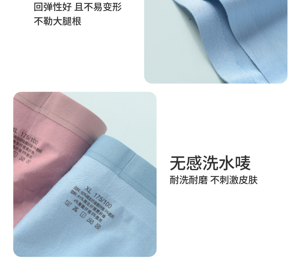 秋季新款 莫代尔无痕男士内裤 艾草抗菌里裆 纯色透气四角中腰 舒适平角裤学生青少年底裤