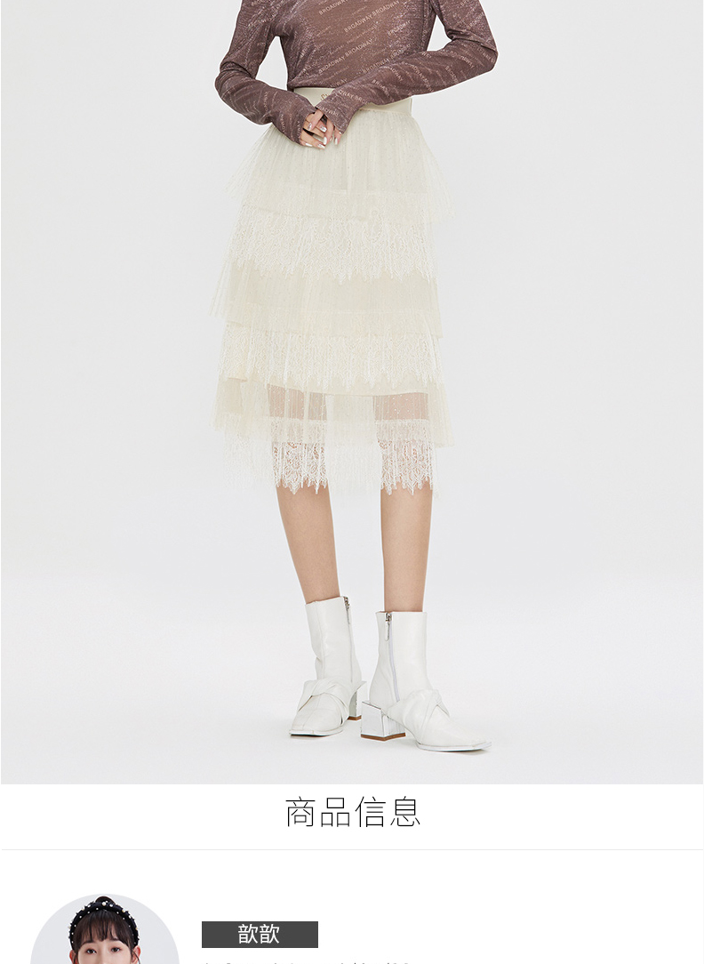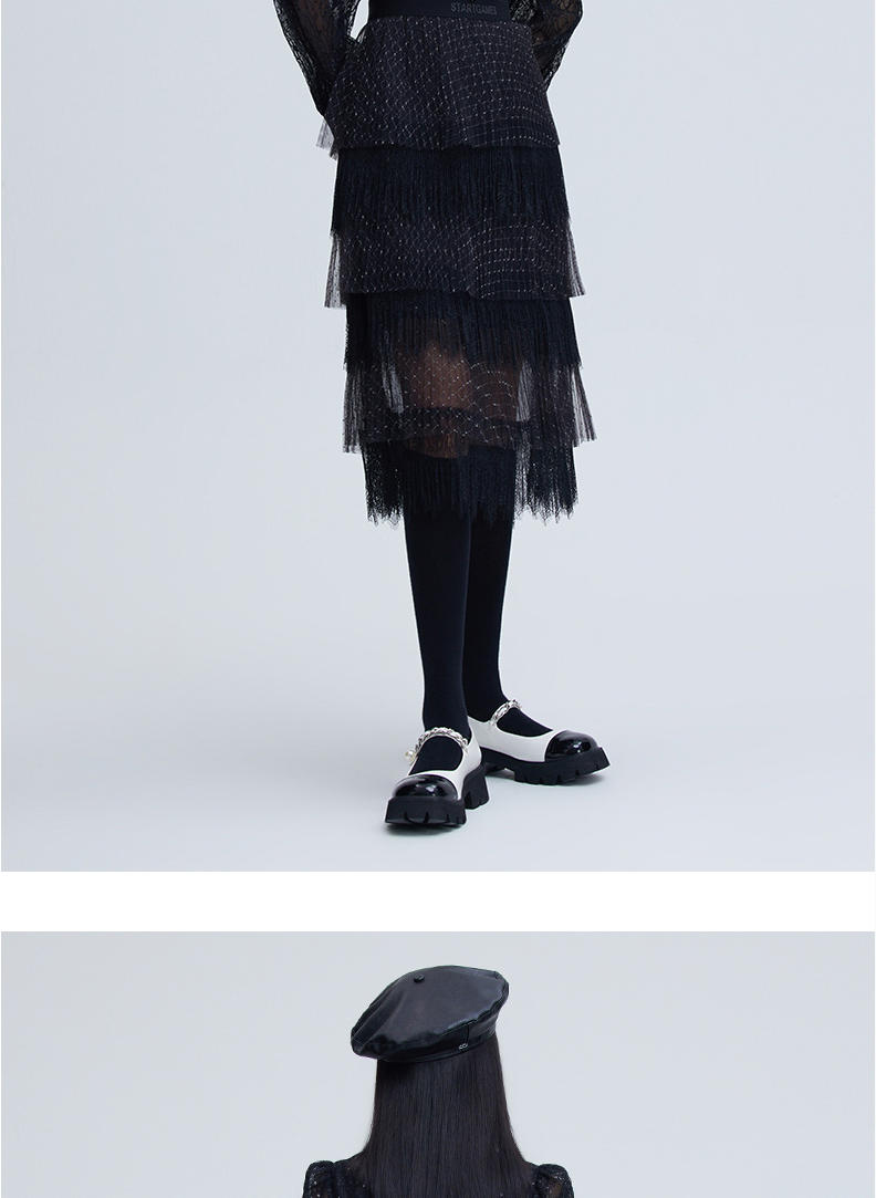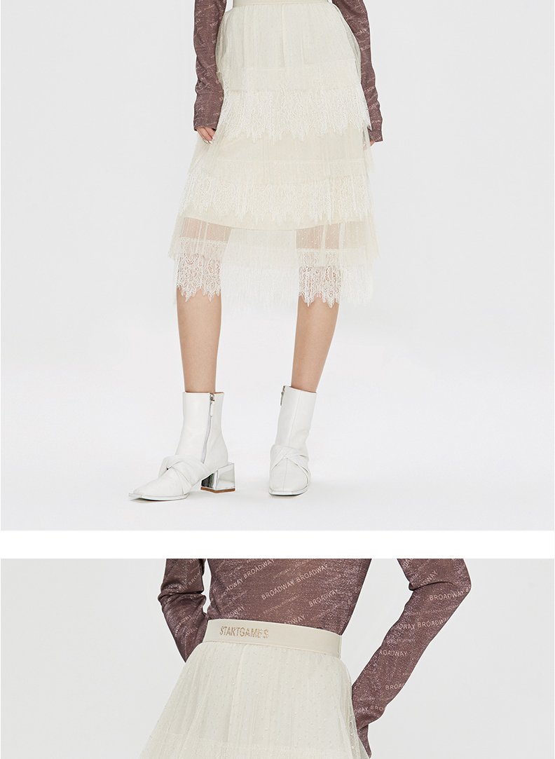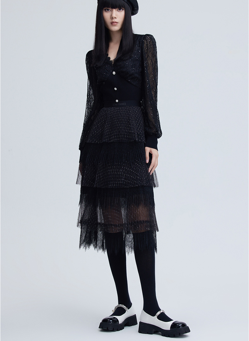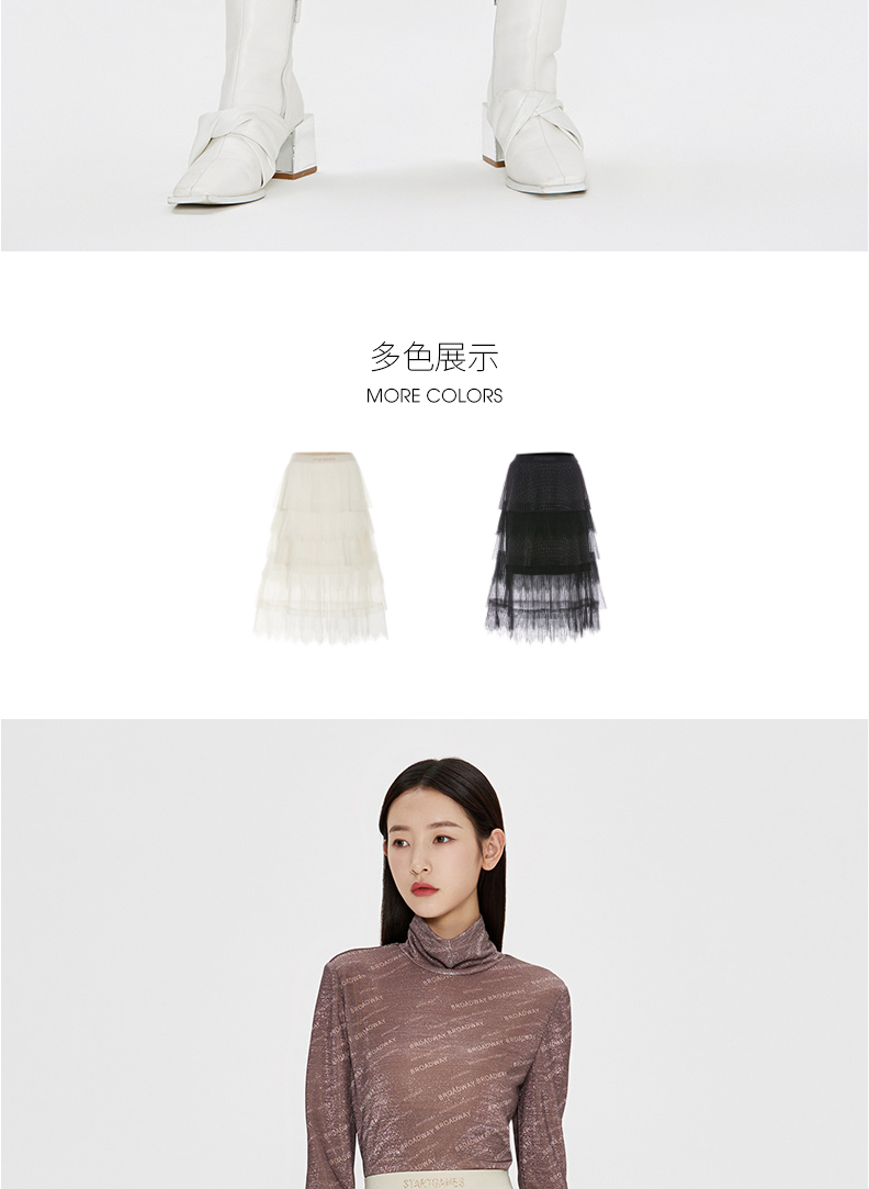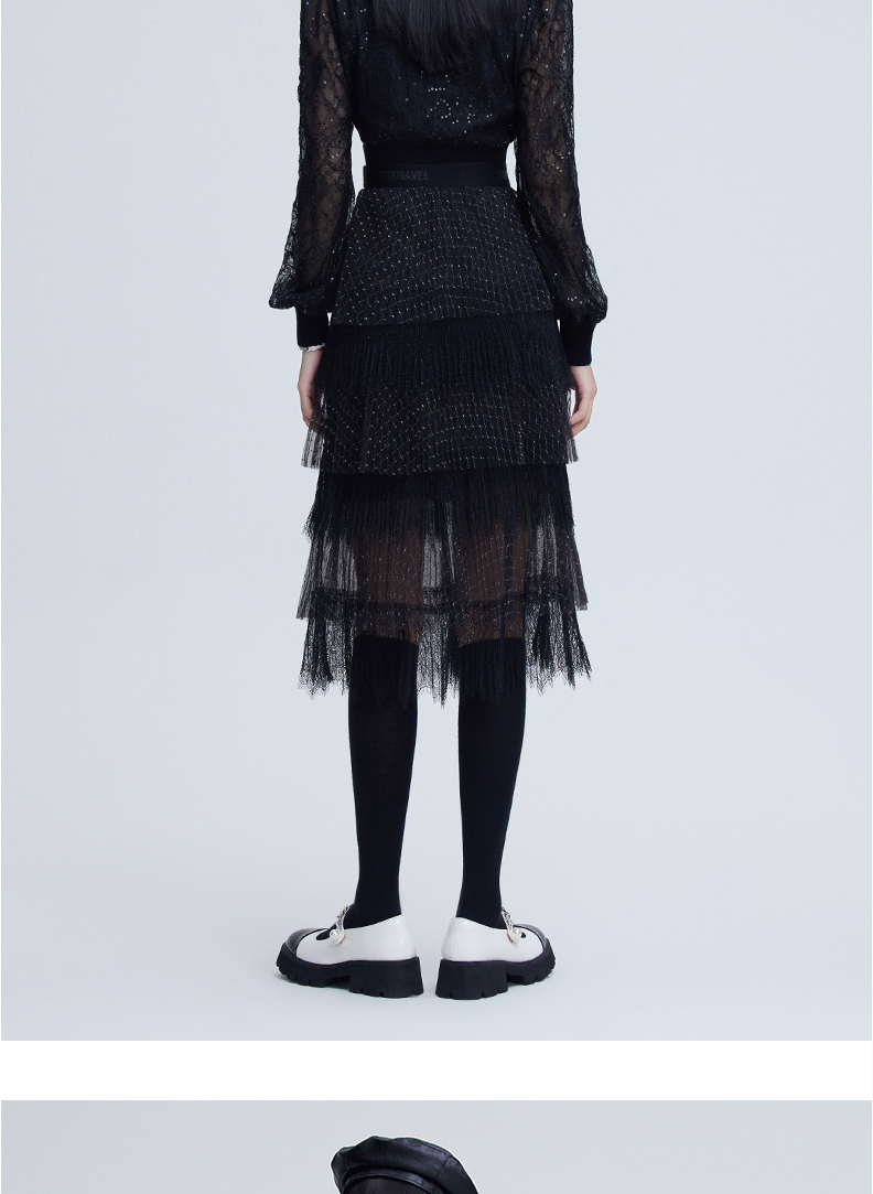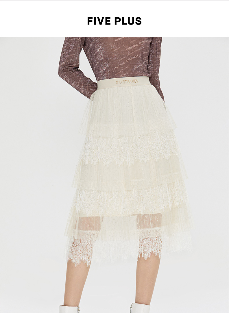 FIVE PLUS 女冬装菱格网纱半身裙女中长款蛋糕裙子仙女裙2NN4070900