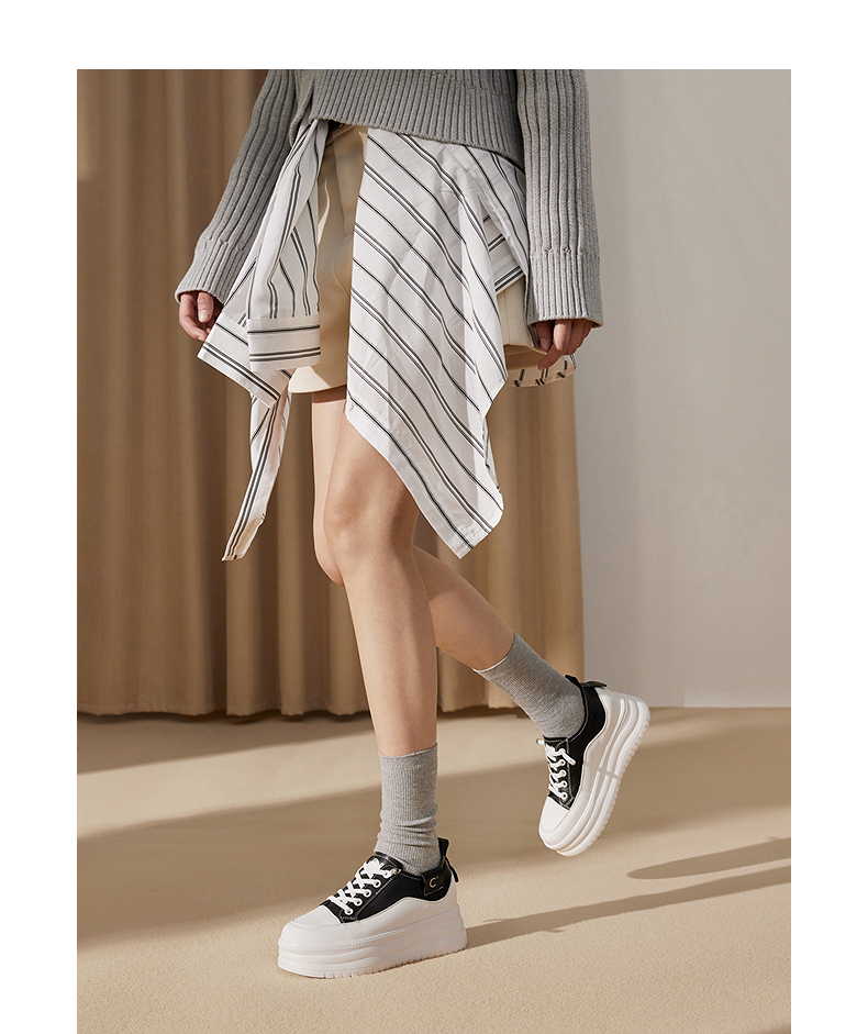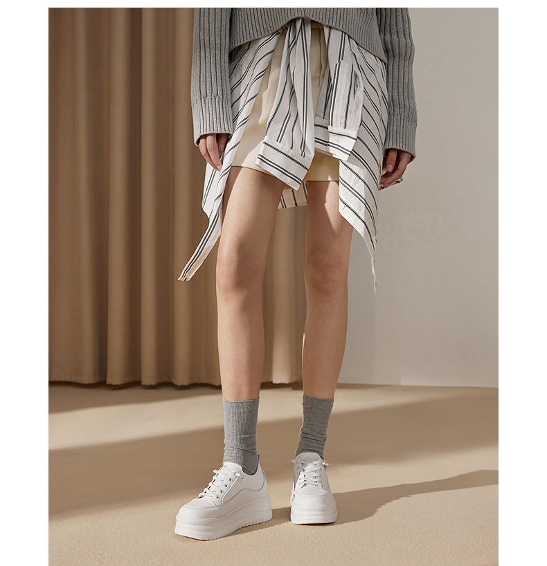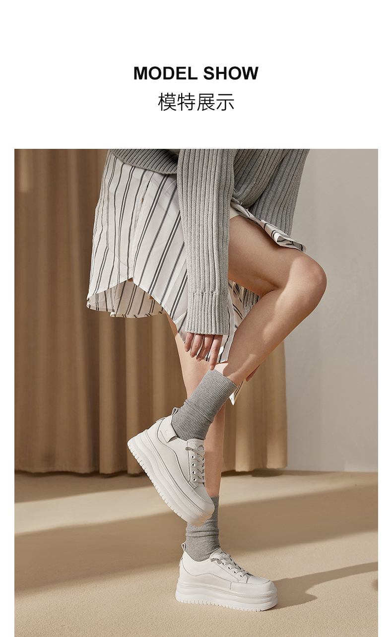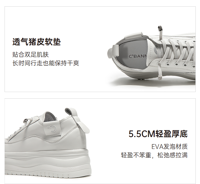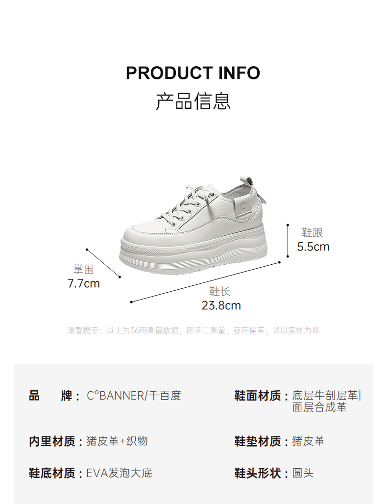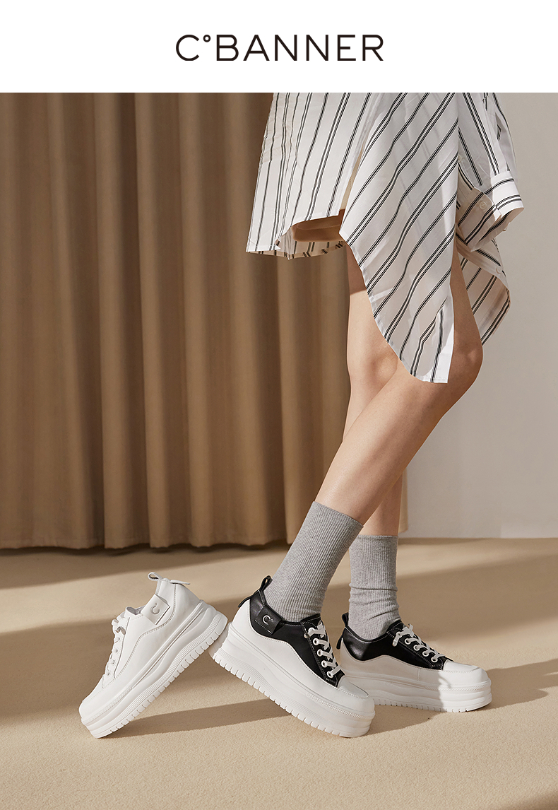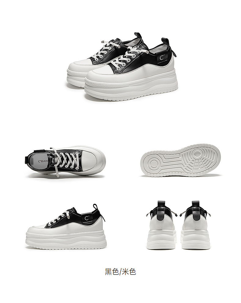 千百度厚底时尚休闲板鞋女款增高小白鞋舒适运动鞋A25199509