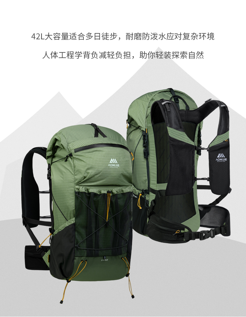 奥尼捷FastHiking系列户外徒步背包42L大容量专业登山包多功能越野包骑行徒步背包