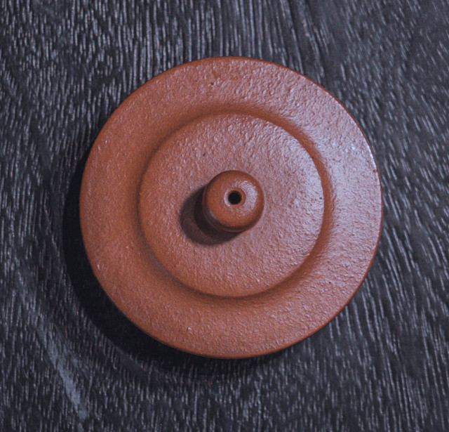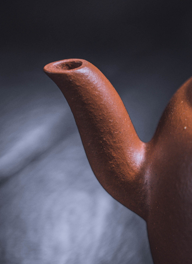 器型来源:平盖莲子壶,亦称宫灯壶式,圆圈足,高颈,双层平盖,高珠钮,三弯流,大圈把,气韵壮硕轩昂。清早期的茗壶,其造型气度浑厚,比例协调,不附加装饰,仅以器形身线的变化或开光加强装饰效果,泥质颗粒隐现,崇尚“不务妍媚而朴雅坚粟”。此壶原型于2017年匡时秋拍以RMB 1035000成交,成为史上最贵的清代朱泥工夫茶壶。