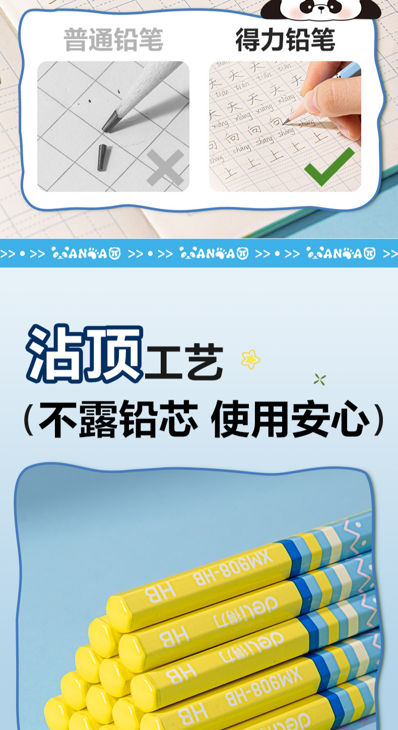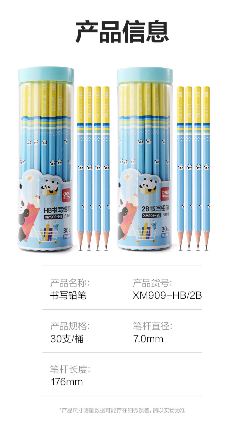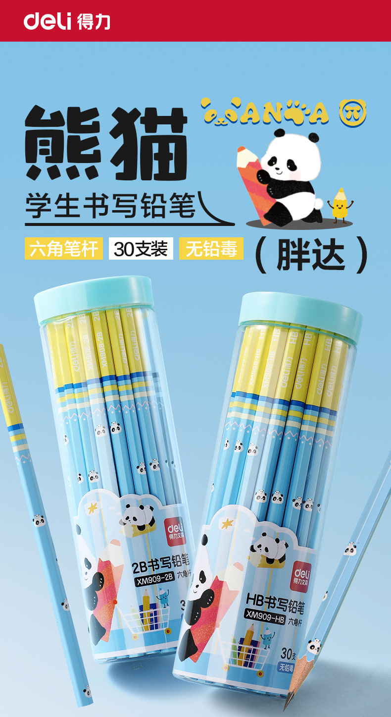 【萌趣熊猫陪你写作业🐼】得力六角铅笔30支筒装✨顺滑好写✏不易断芯,学习绘画全搞定! HB绘画2B铅笔30支筒装