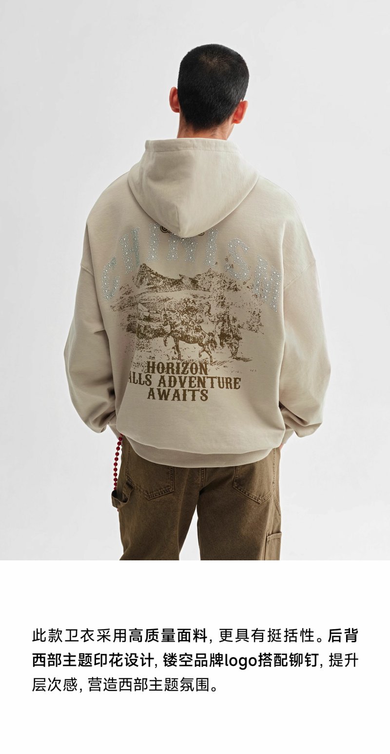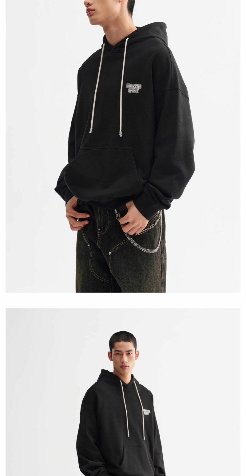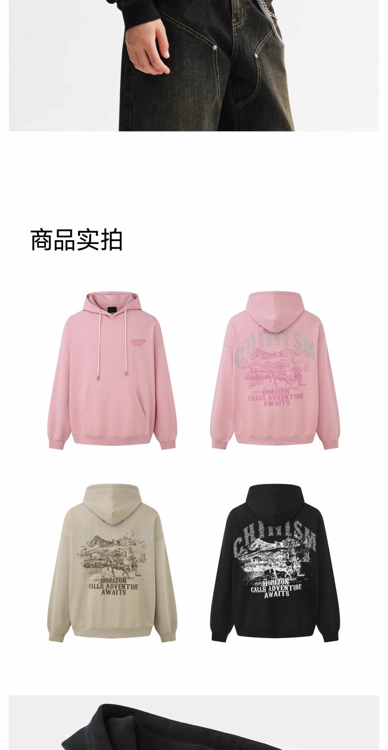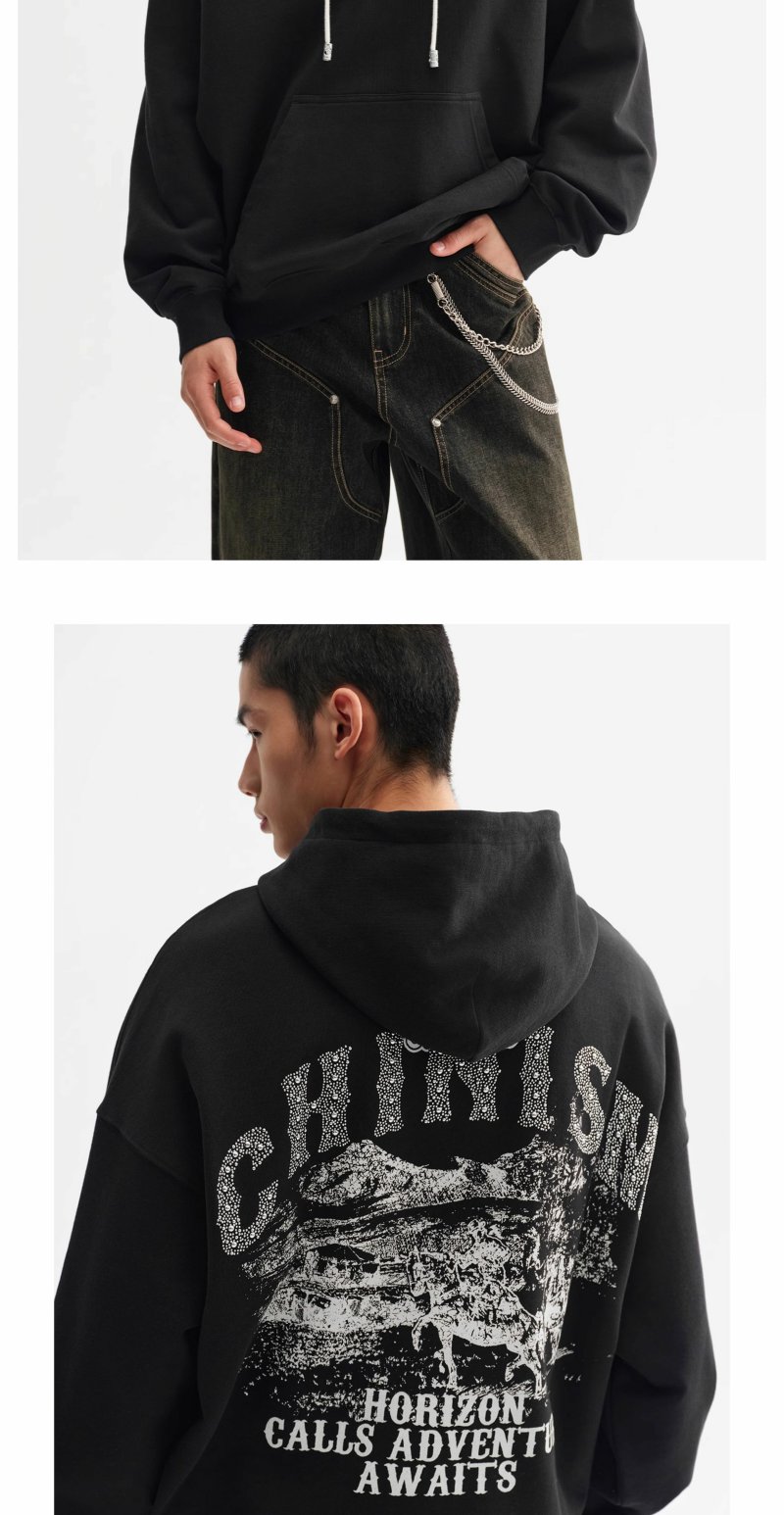 CHINISM赤尘 黑色重磅满天星印花连帽卫衣男秋季纯棉美式套头帽衫 商品图2