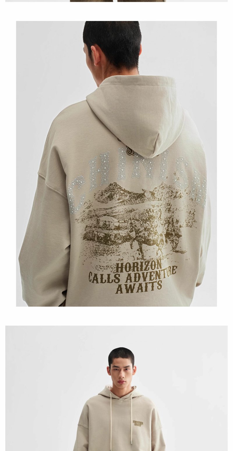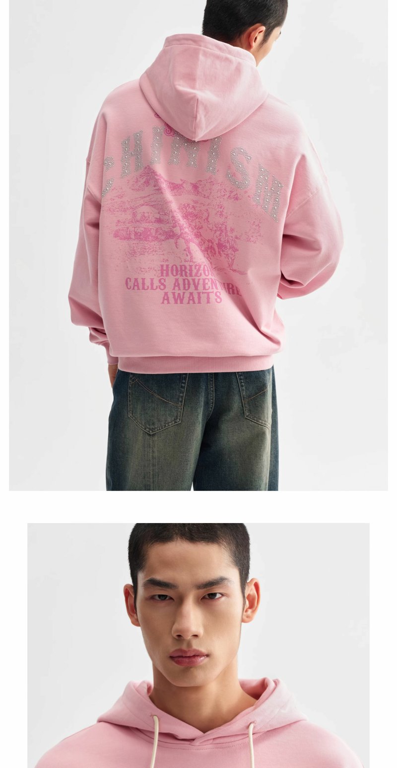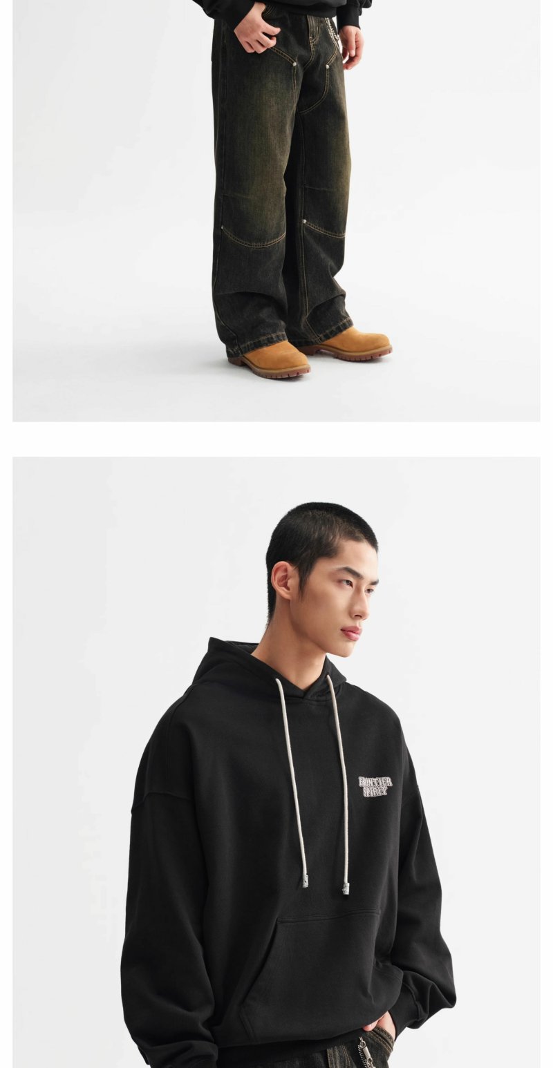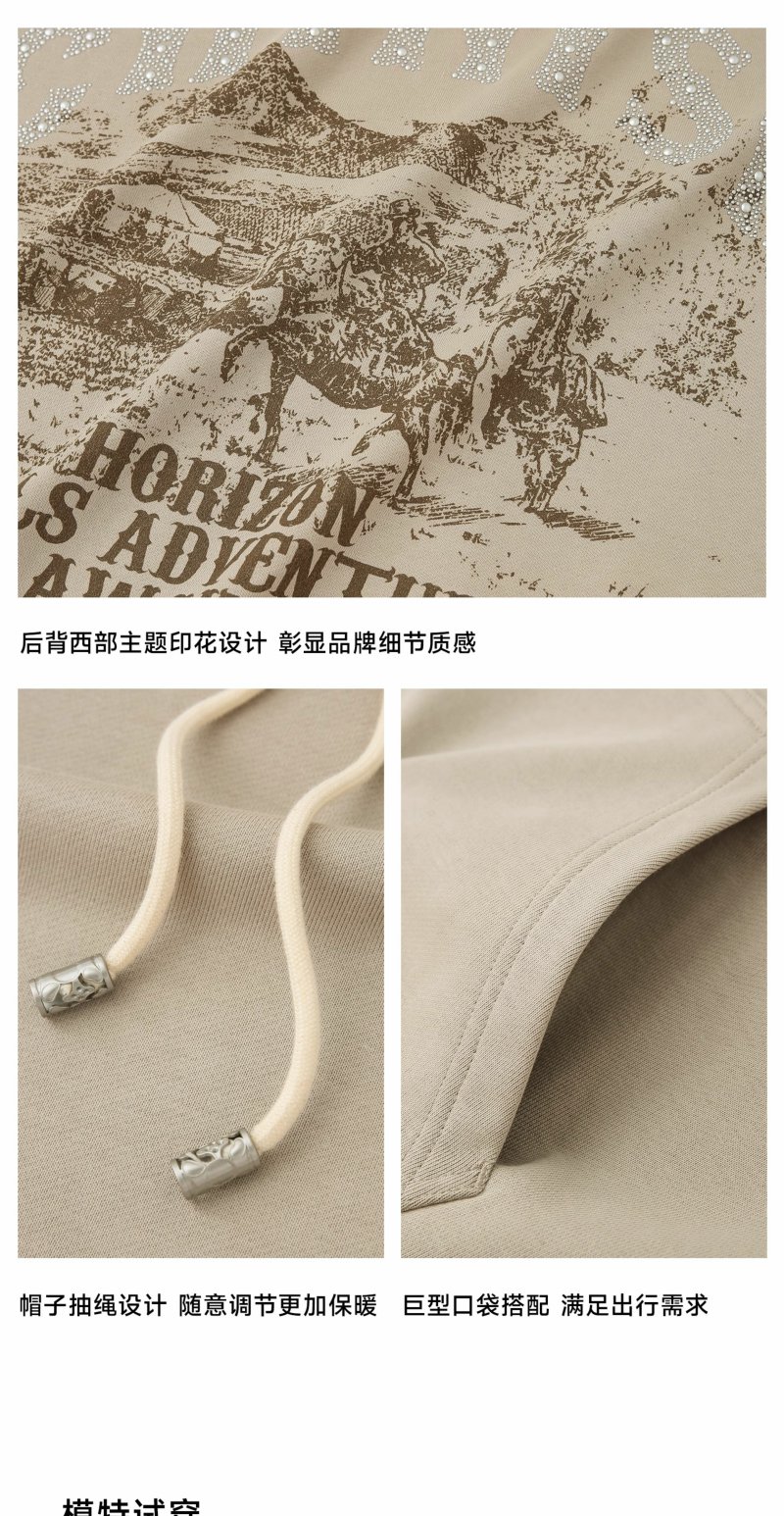 CHINISM赤尘 黑色重磅满天星印花连帽卫衣男秋季纯棉美式套头帽衫 商品图2