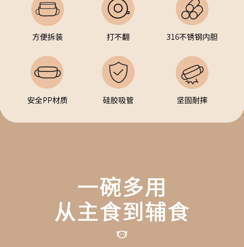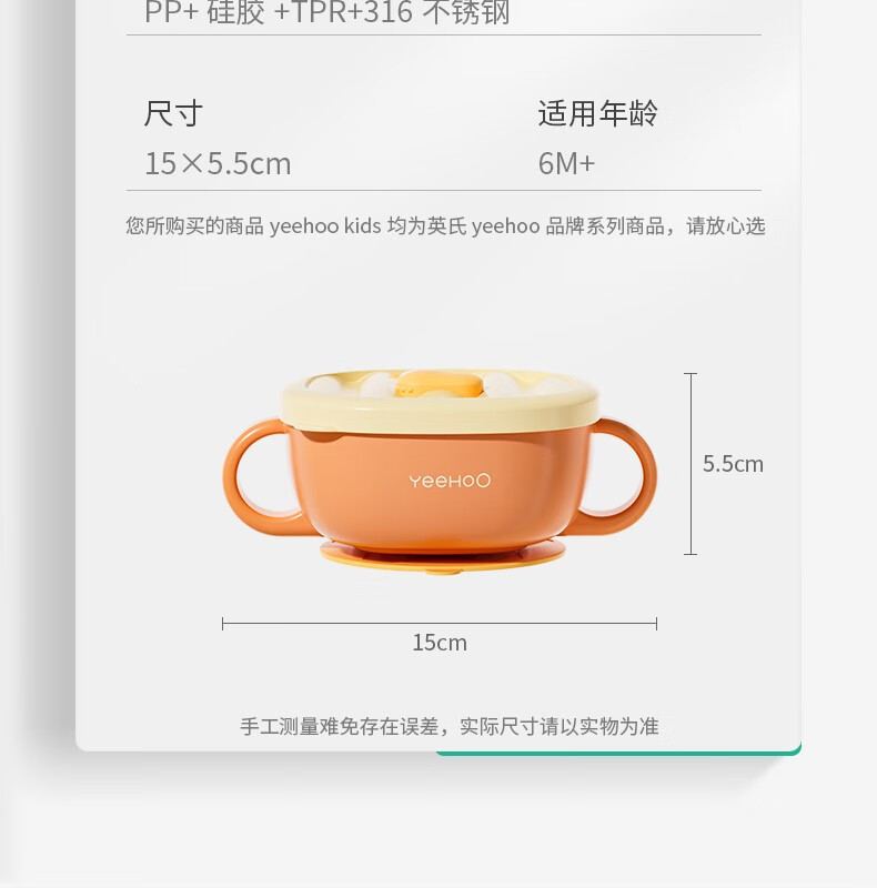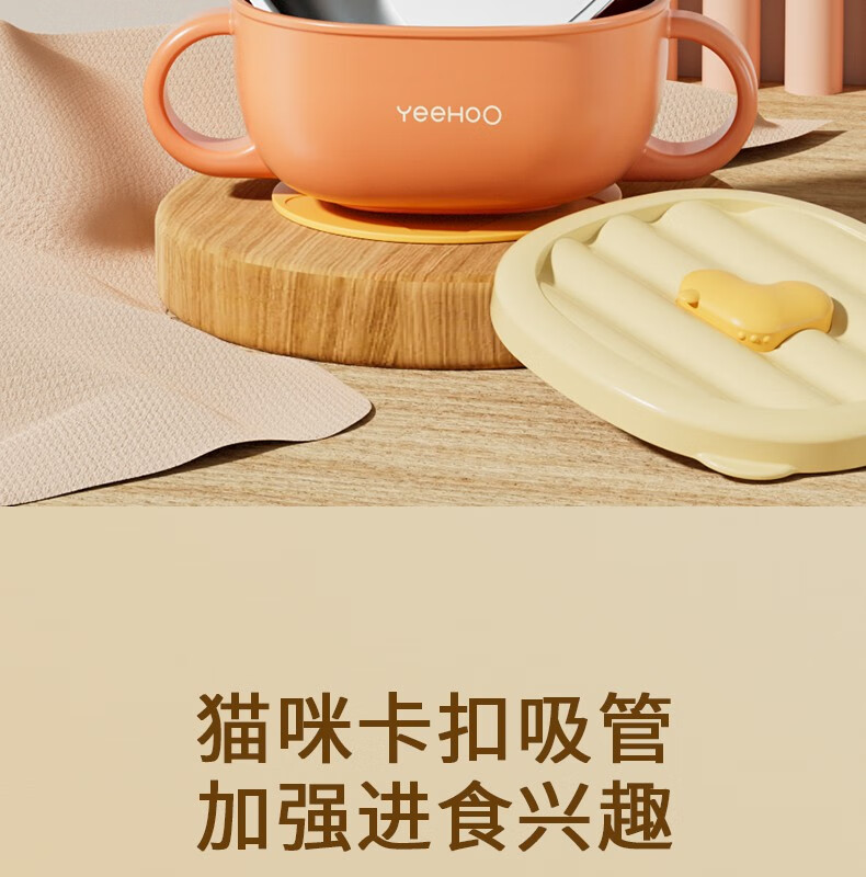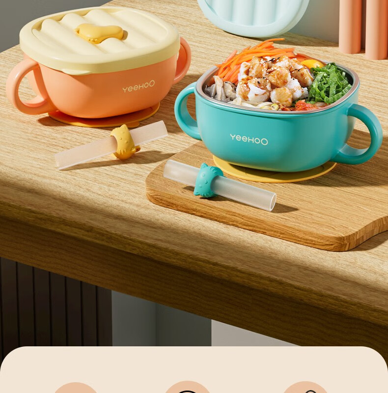英氏(YEEHOO)辅食碗婴幼儿宝宝专用碗不锈钢儿童餐具吸盘套装