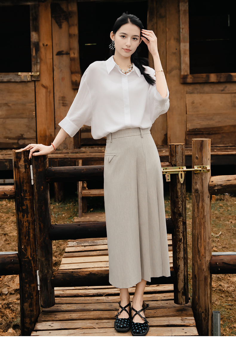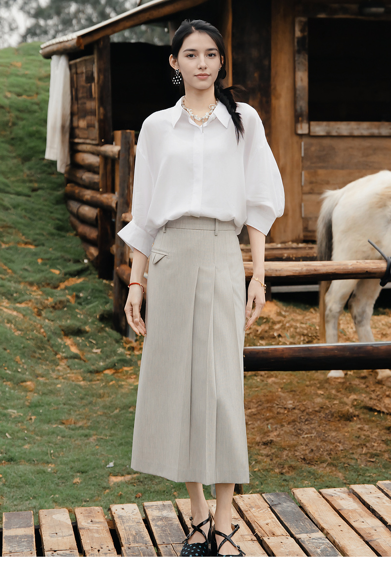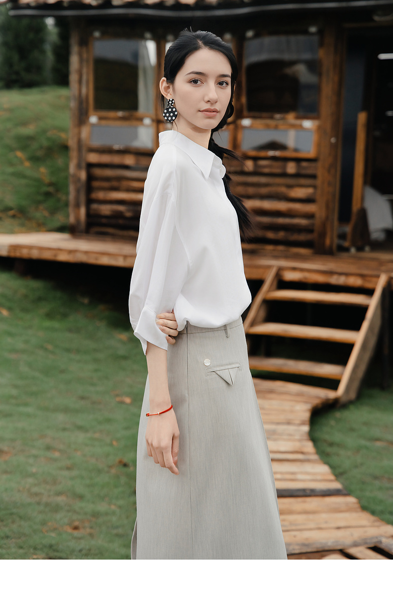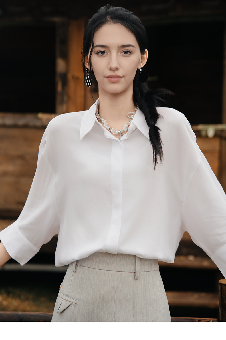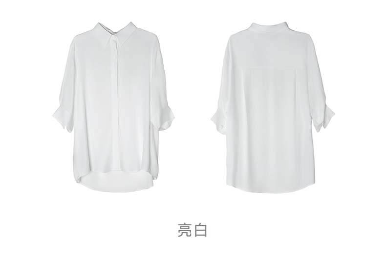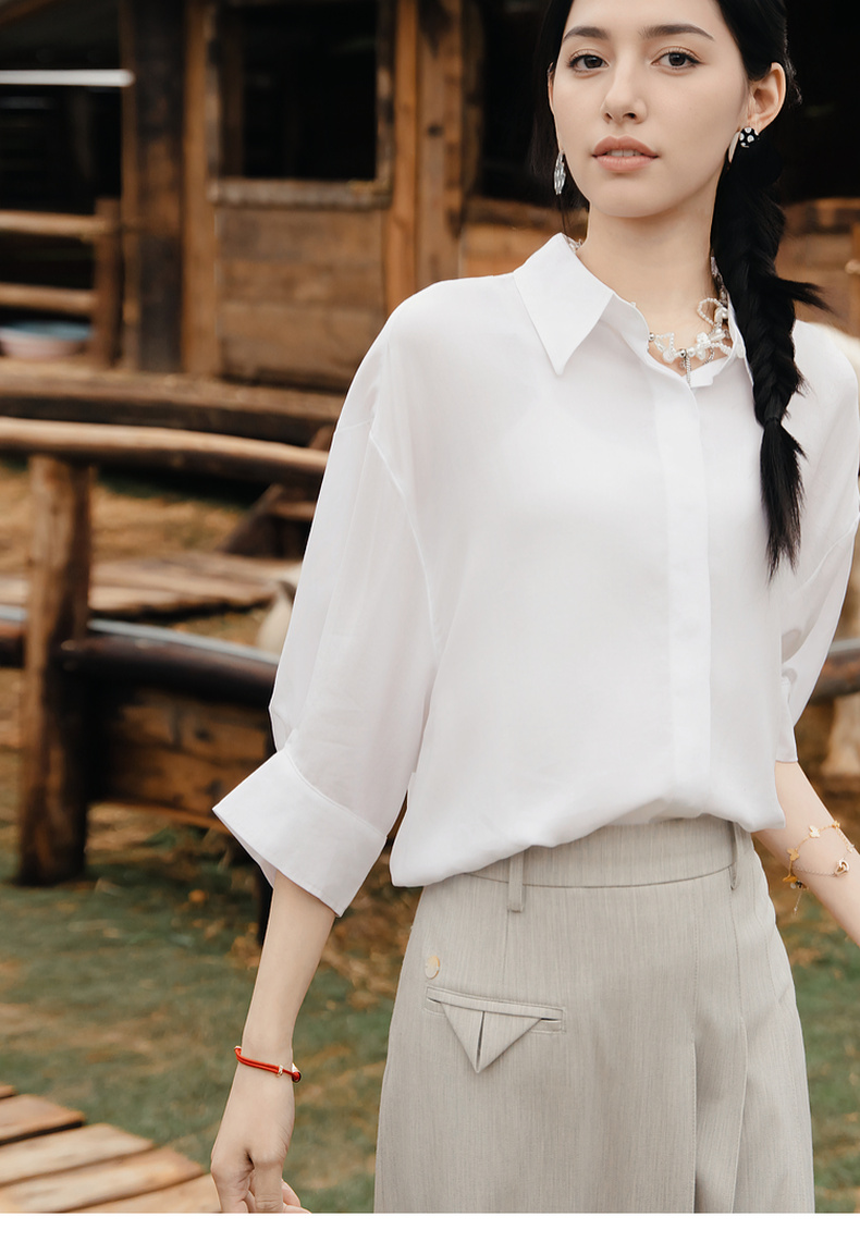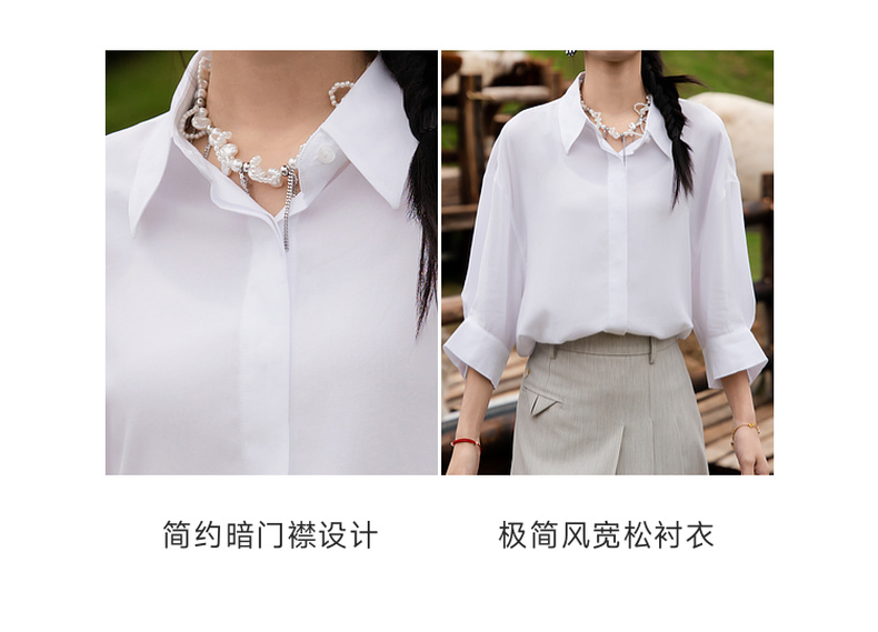 谜底大廓形衬衫七分袖女2025夏季新款通勤风简约白衬衣256MC6222