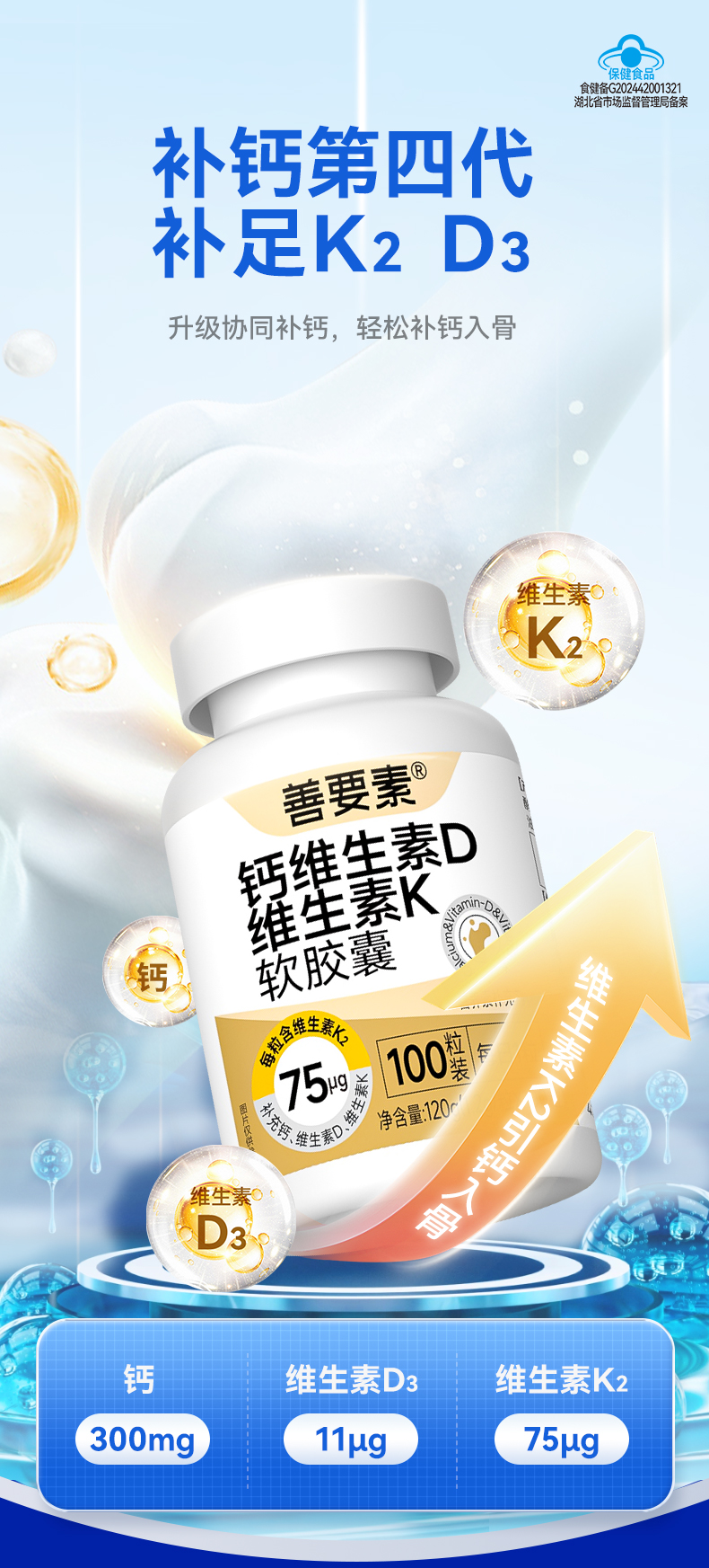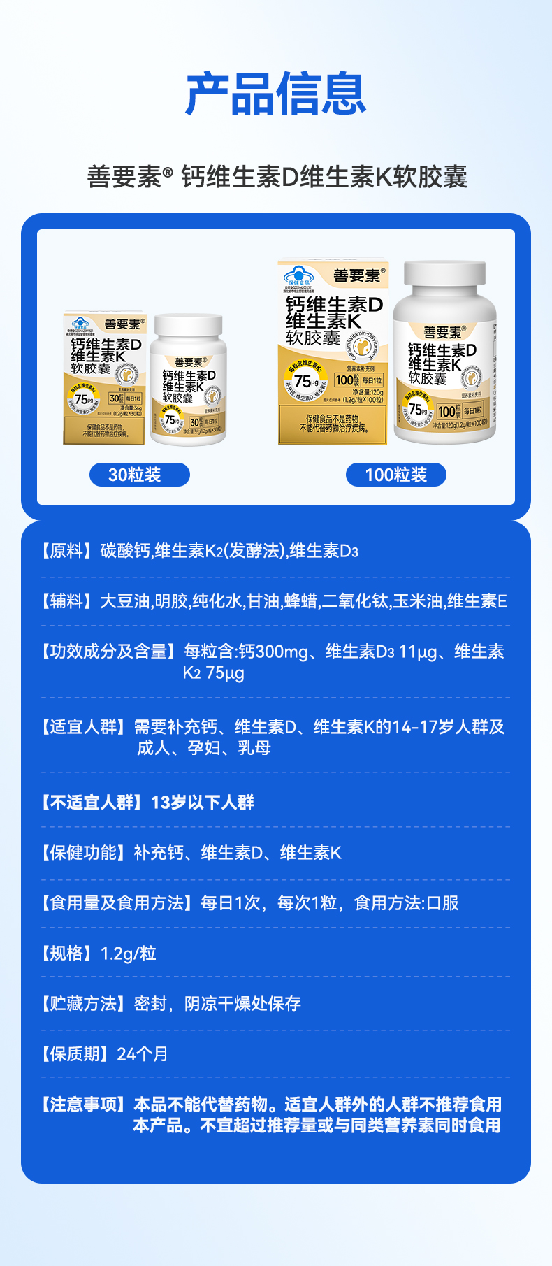【100粒3月装】善要素液体钙维生素DK胶囊女性中老年孕妇补钙