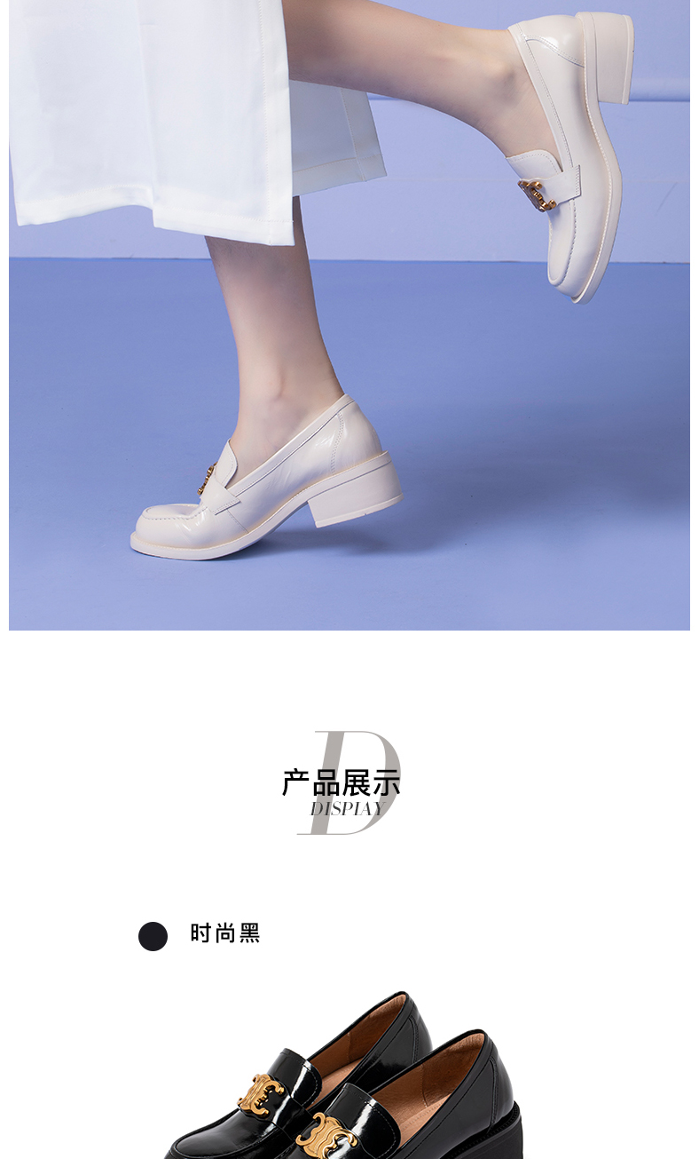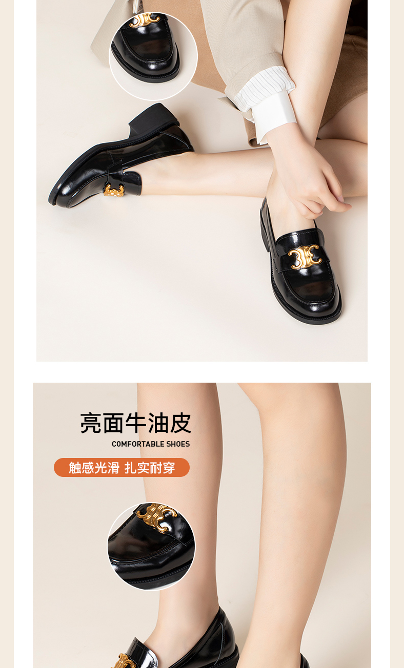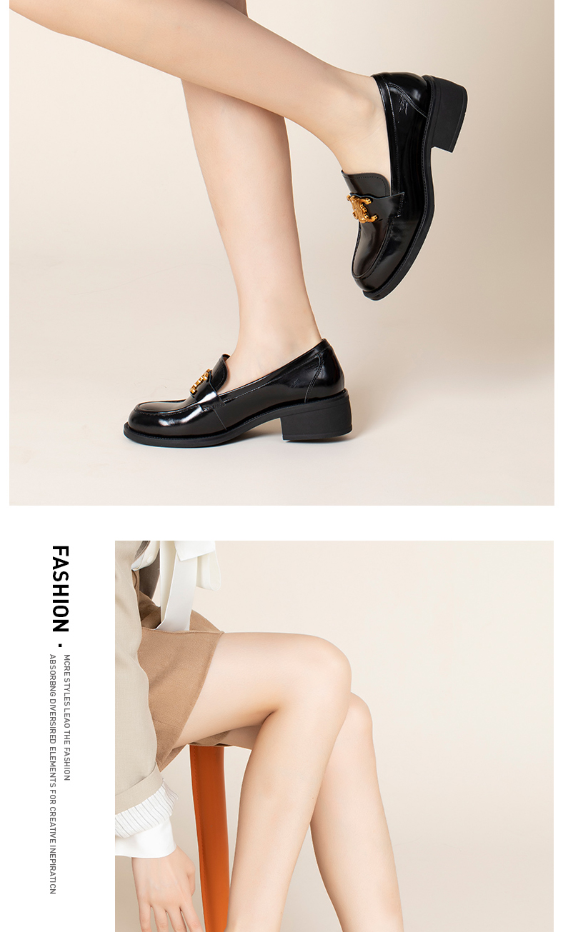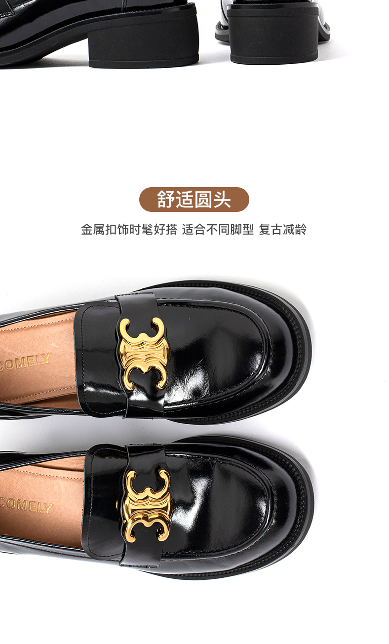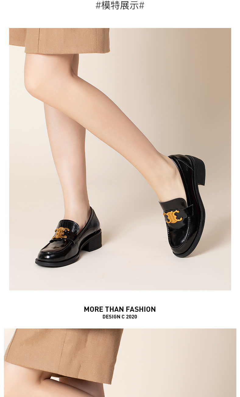 康莉2021年秋季新款乐福鞋女粗跟牛油皮金属扣英伦小皮鞋 XLS16619DU06CA1
