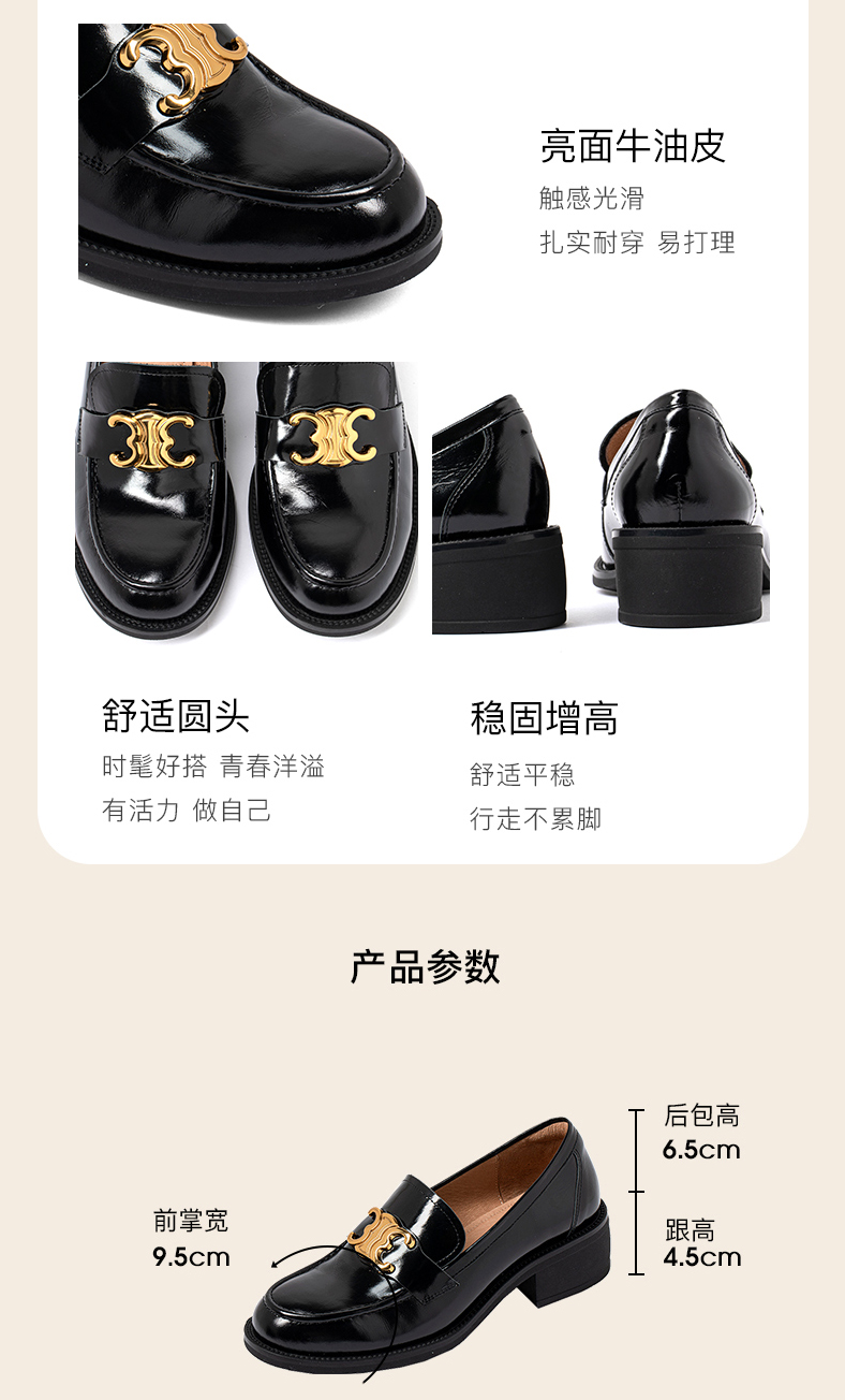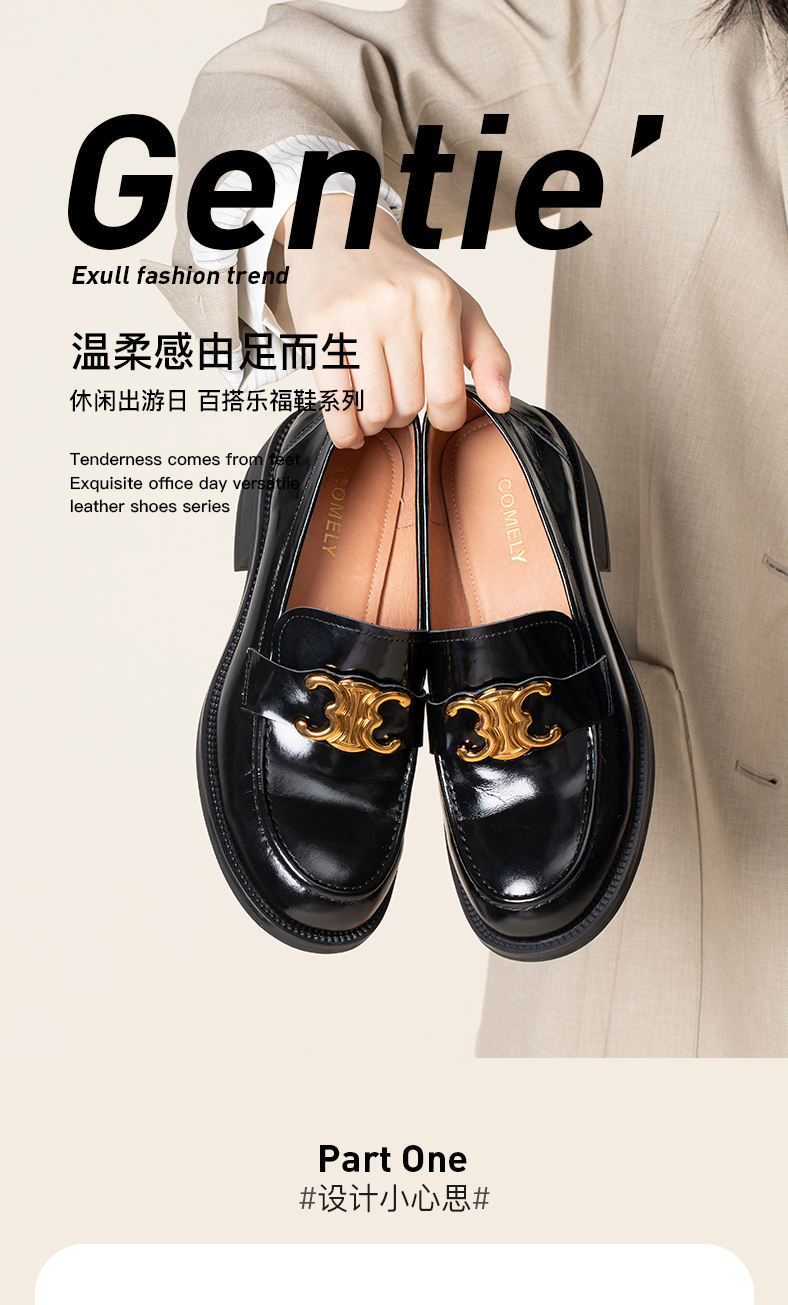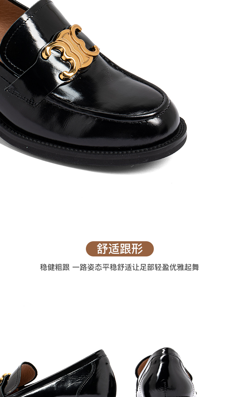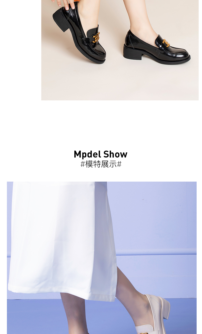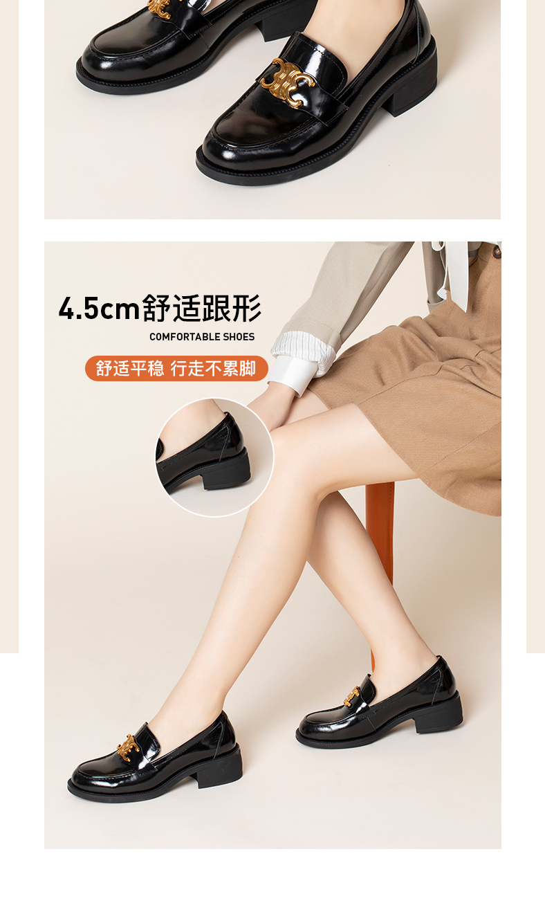 康莉2021年秋季新款乐福鞋女粗跟牛油皮金属扣英伦小皮鞋 XLS16619DU06CA1