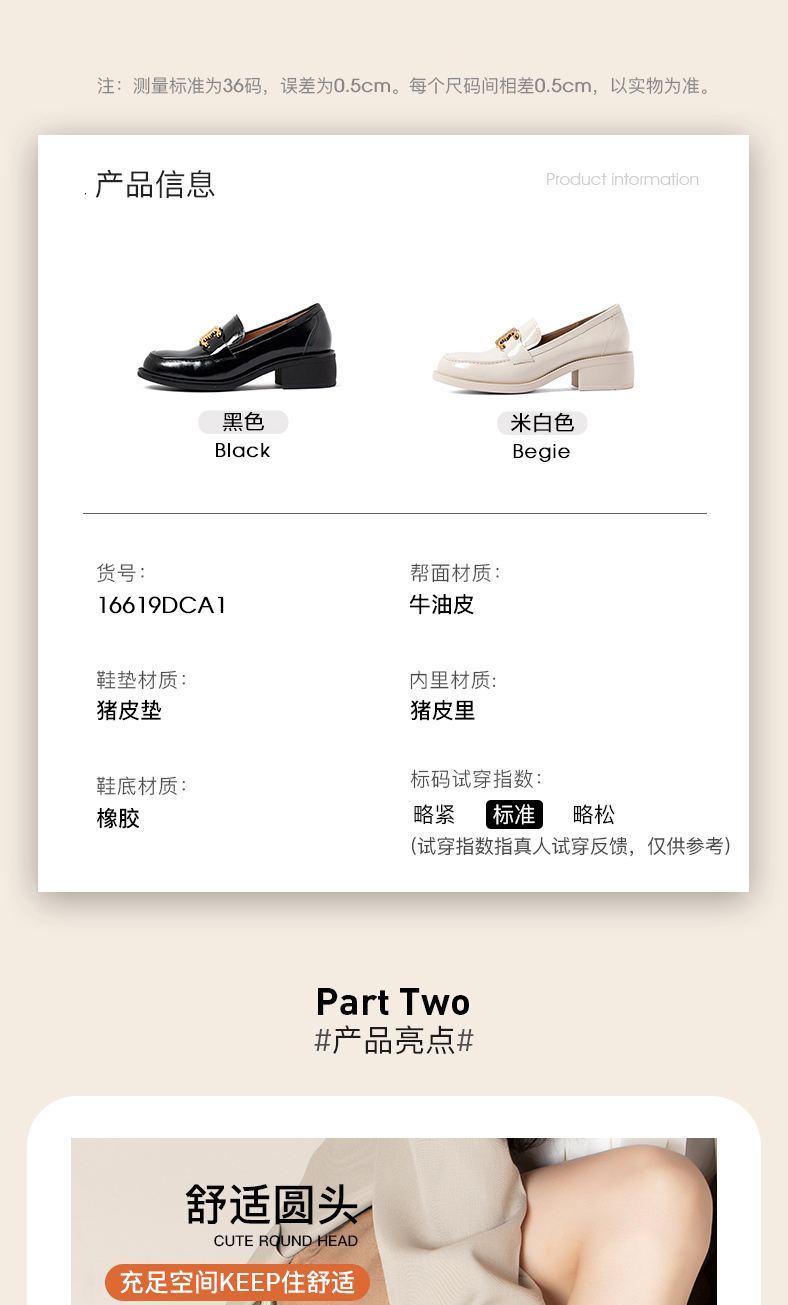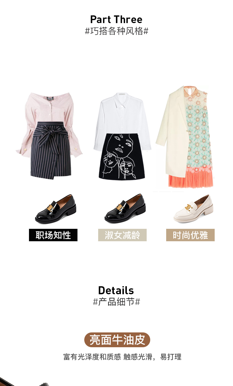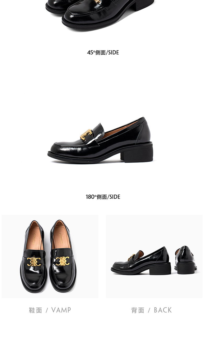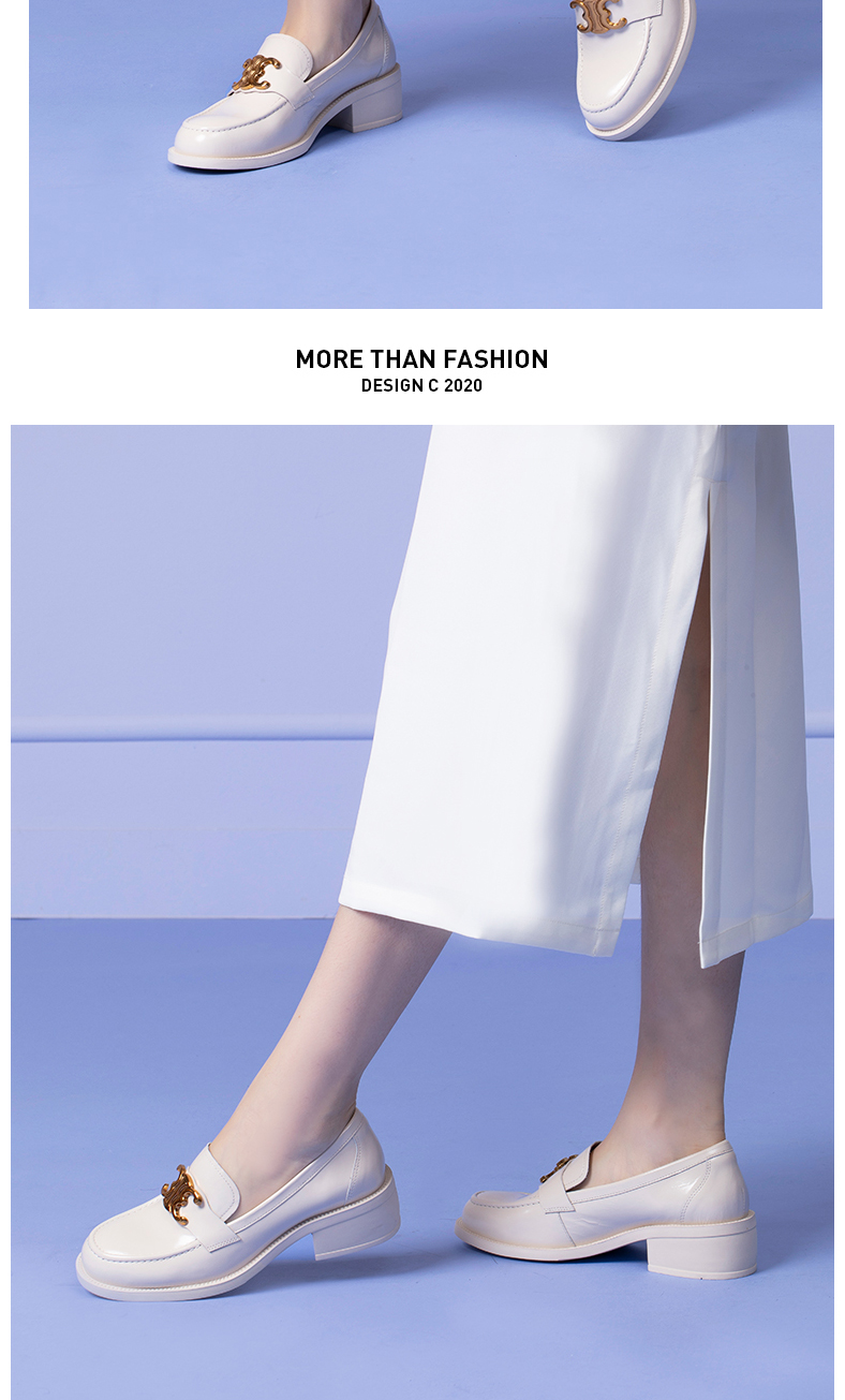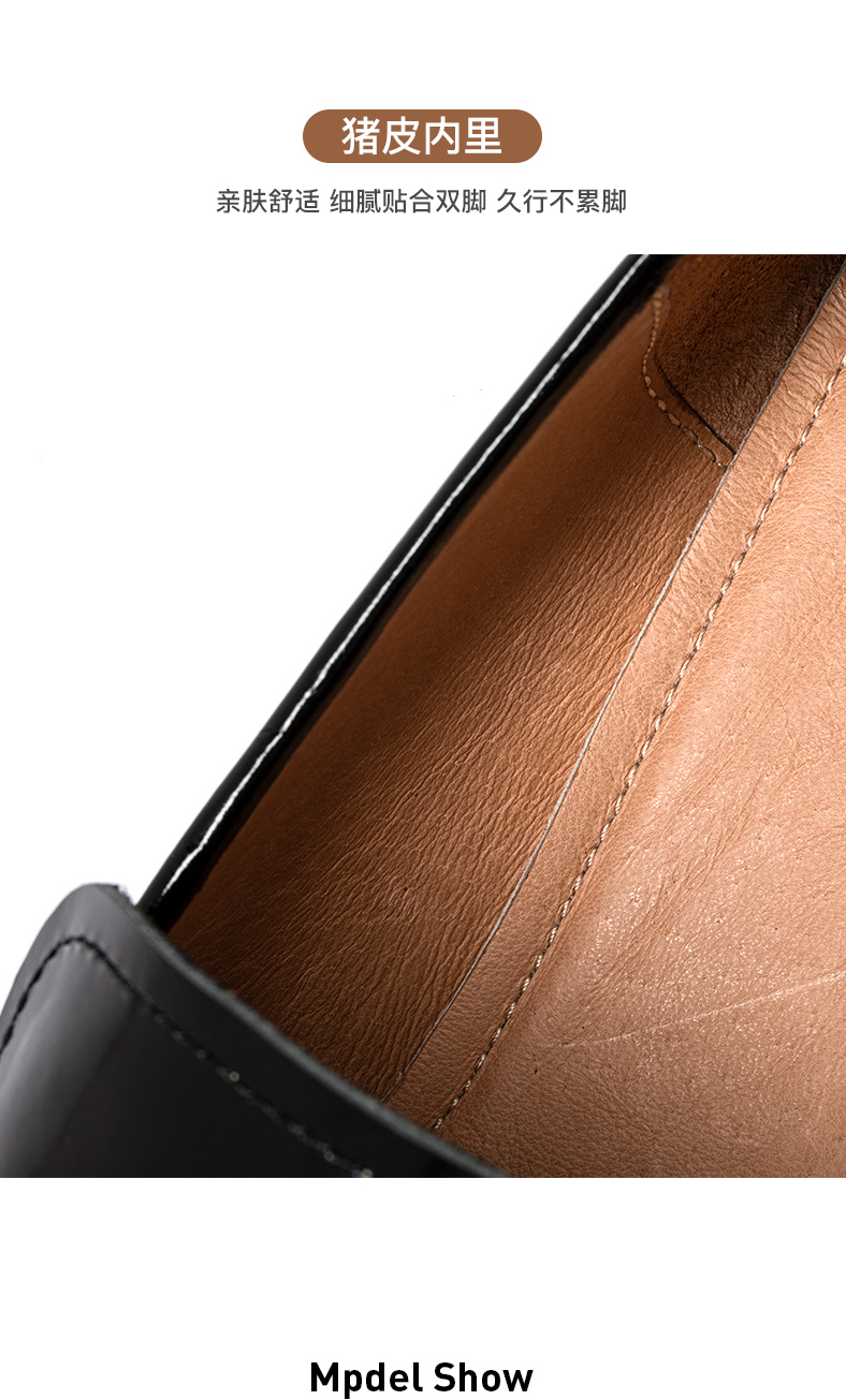 康莉2021年秋季新款乐福鞋女粗跟牛油皮金属扣英伦小皮鞋 XLS16619DU06CA1