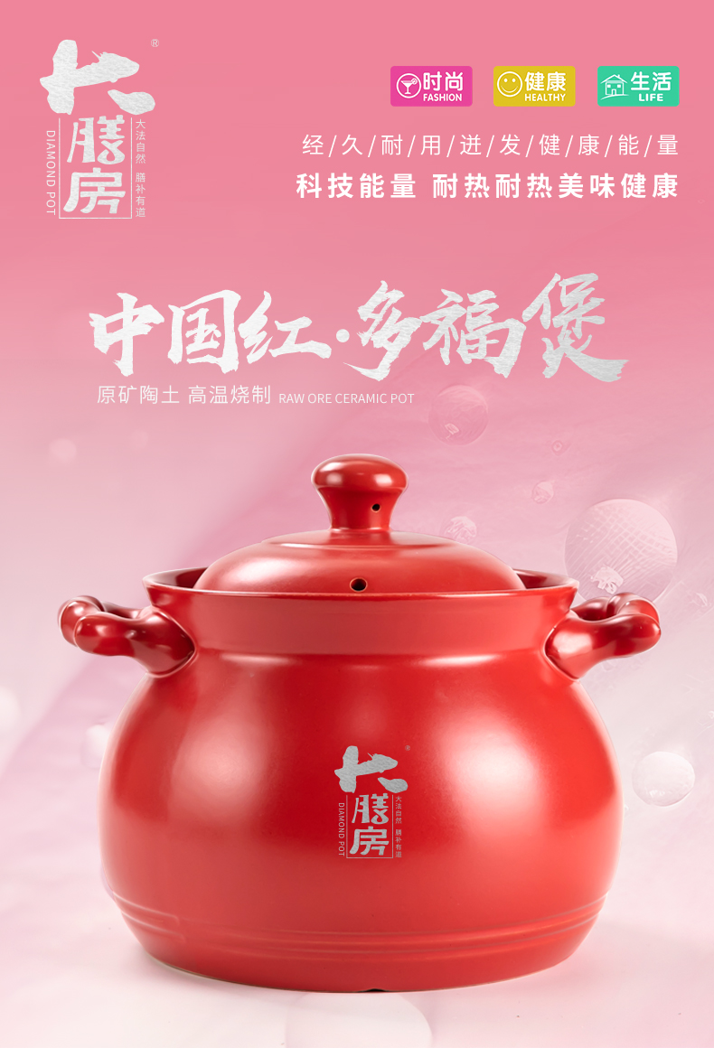 大膳房丨陶瓷汤煲 中国红·多福煲(4.5L)