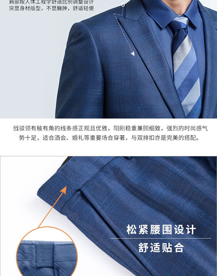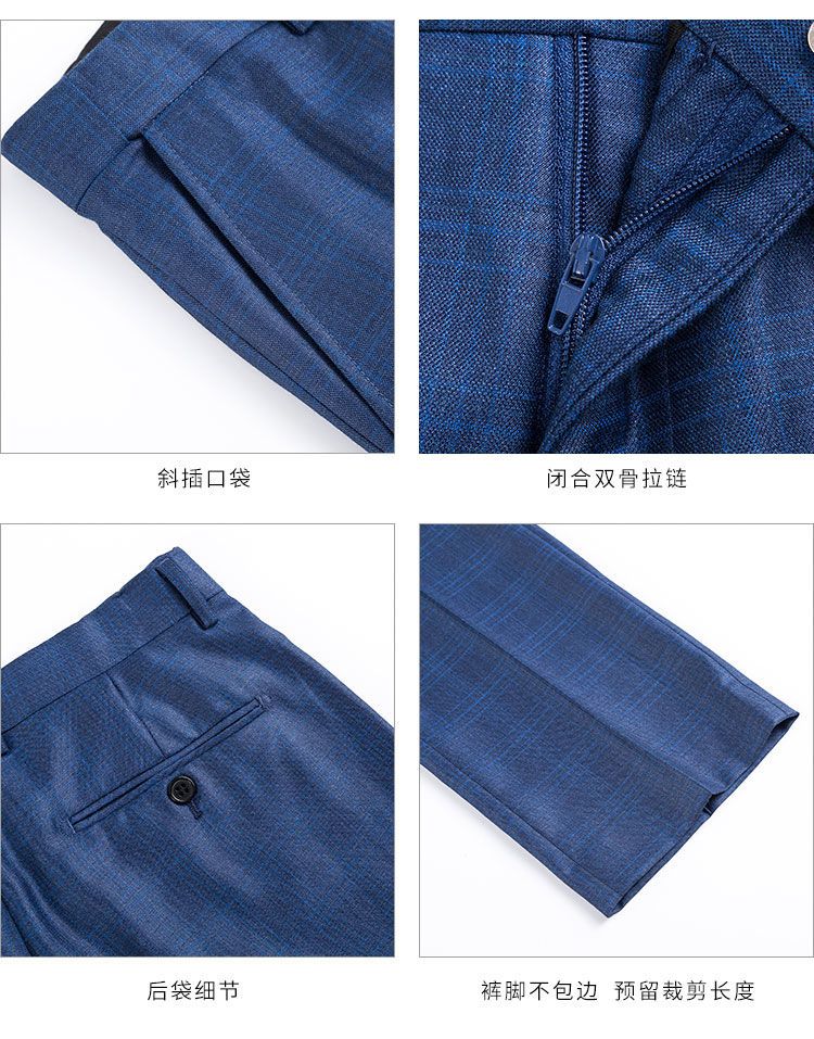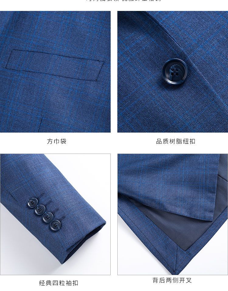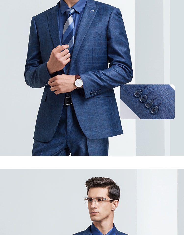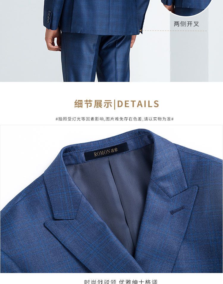 【上衣+裤子】罗蒙西装套装男士时尚修身款格纹西服新郎结婚礼服